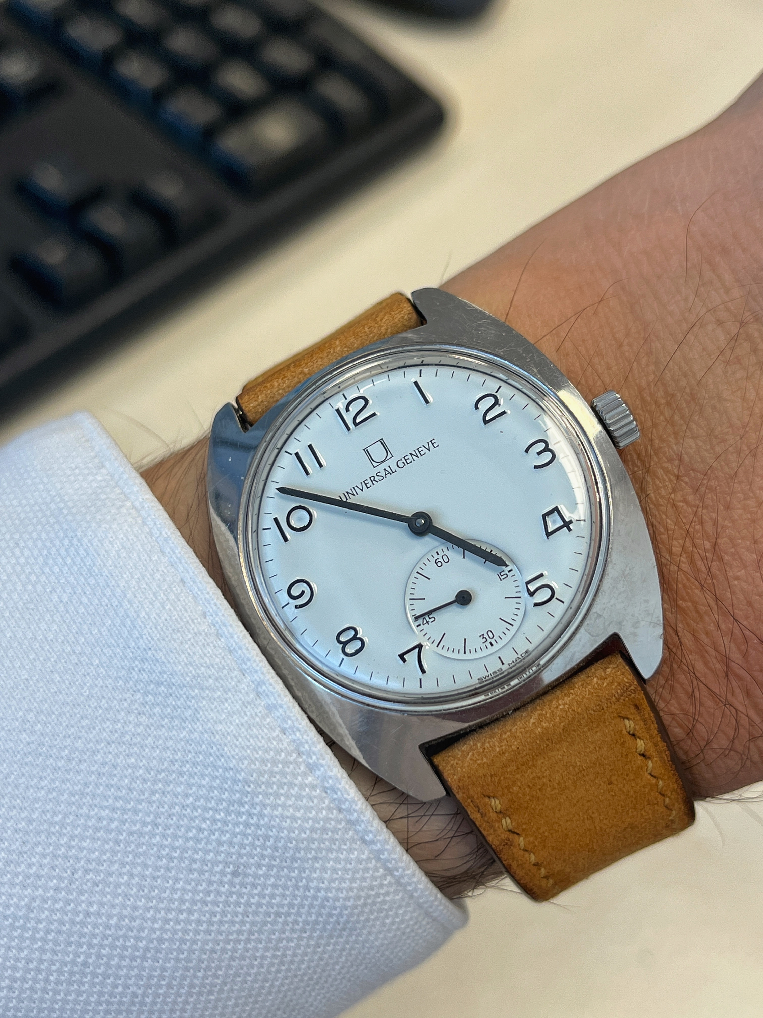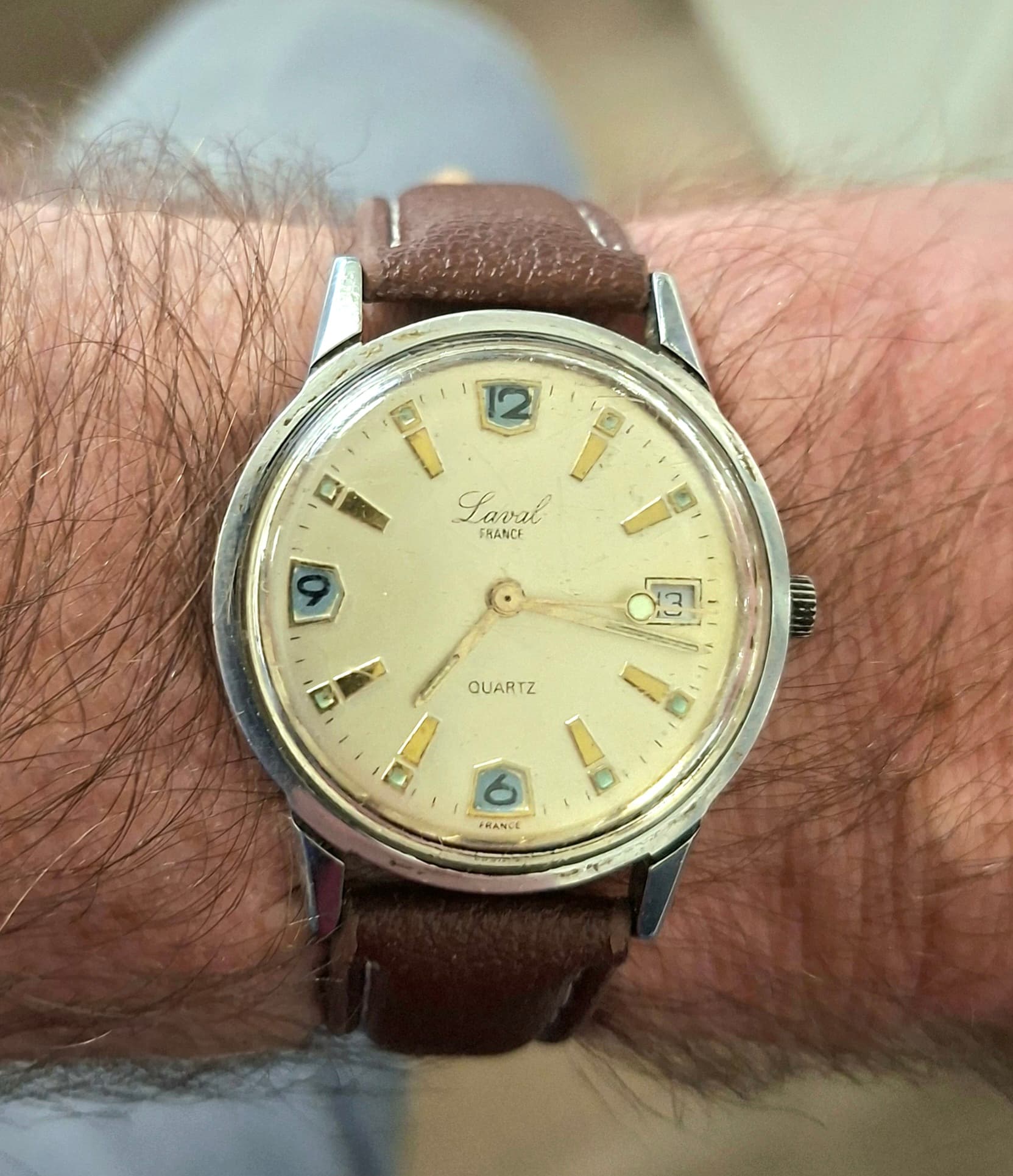 Het lijkt wel of de wijzerplaat niet lekker aansluit in de kast. Klopt dat of is het gezichtsbedrog?