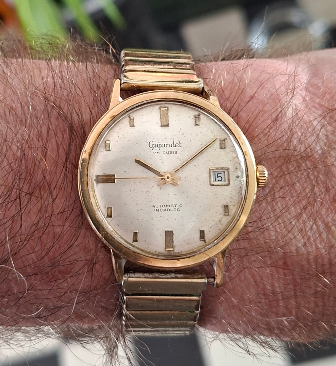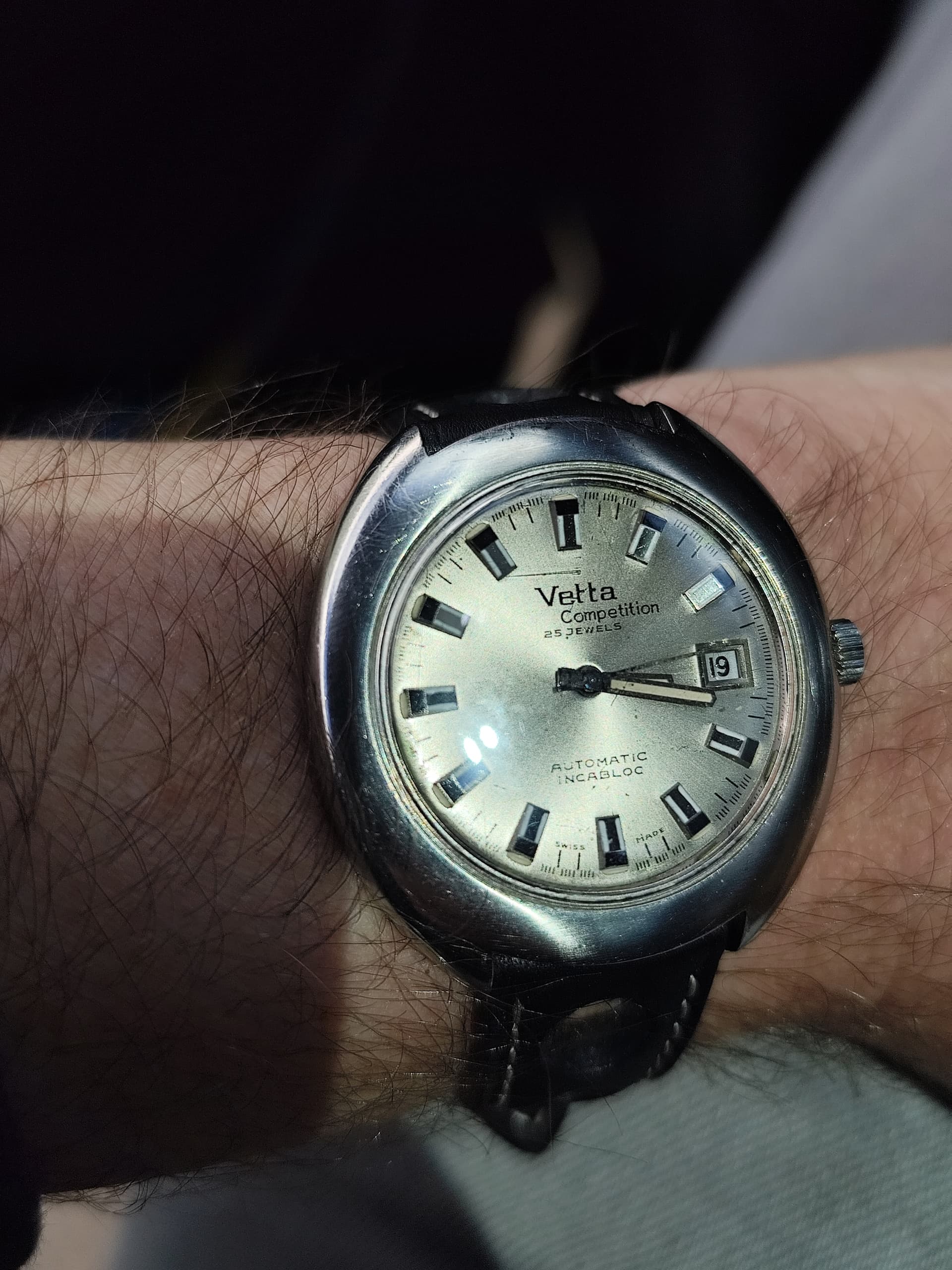 Zo’n dunne vintage bracelet draagt inderdaad meestal kleiner dan leer, zeker als het een beetje een dikke band is.
