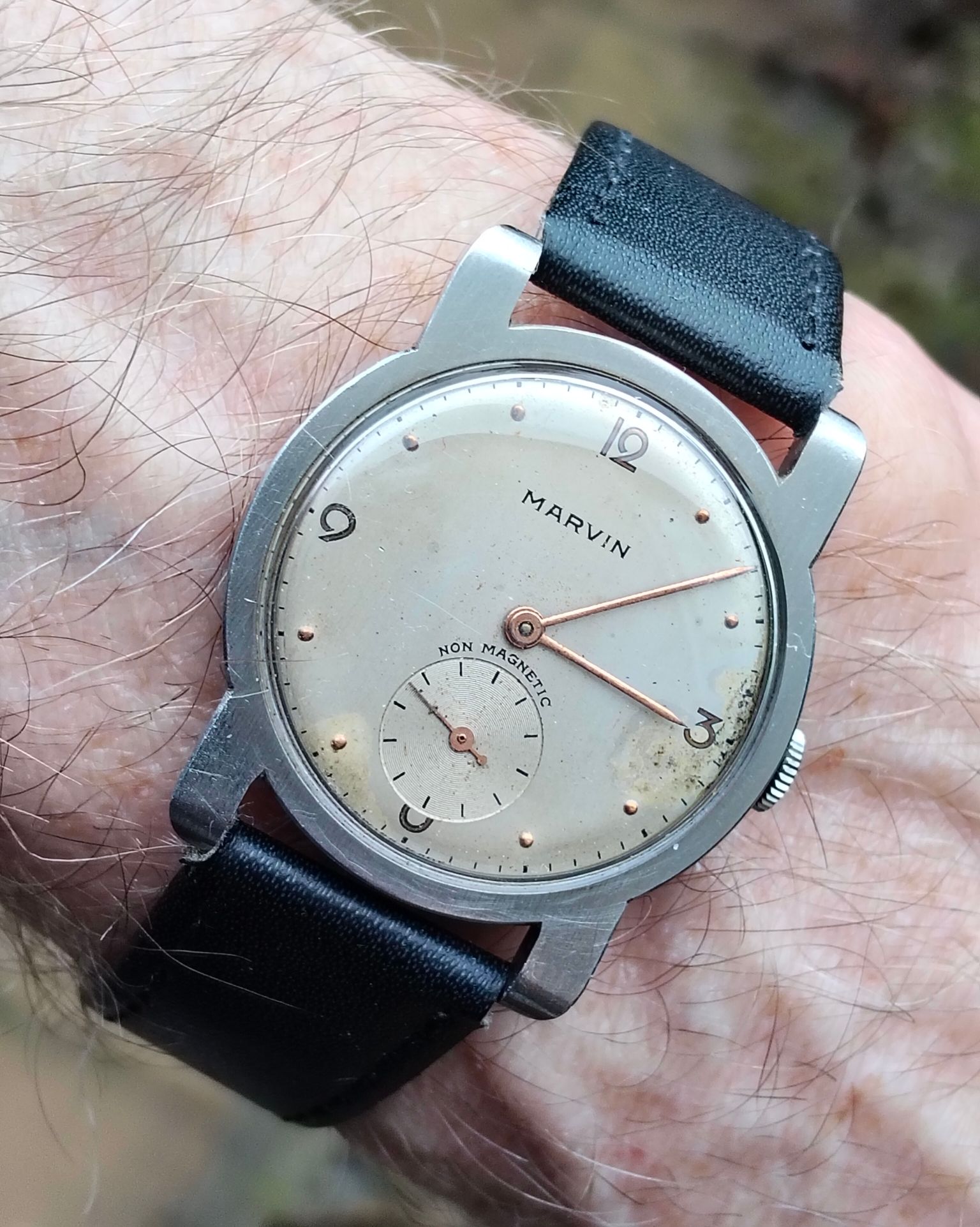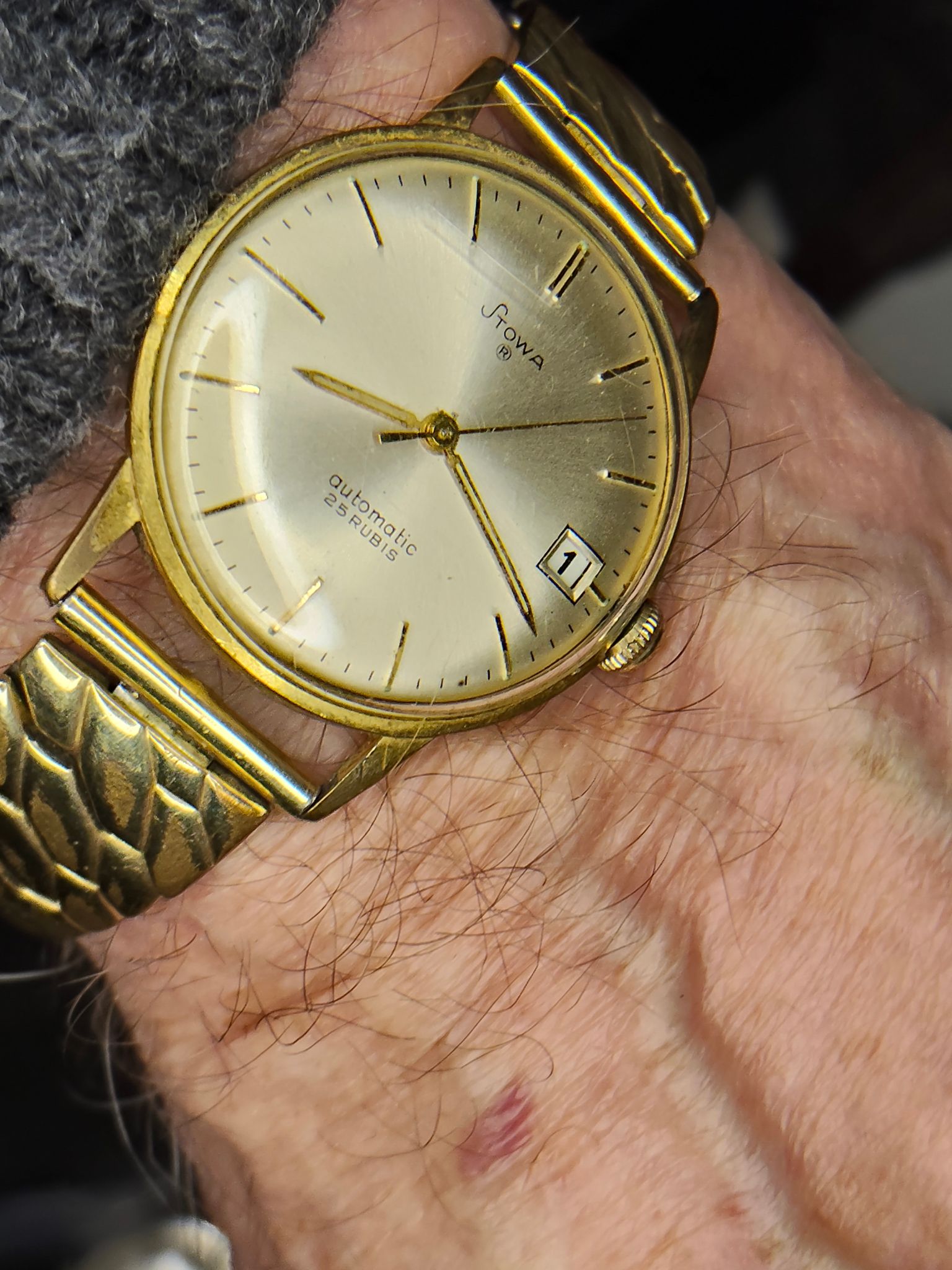 Ik sluit af met een paar van de obligate pols foto’s want daar gaat het in dit topic uiteindelijk om. 30 mm groot, klein maar fijn en voor mijn smaak nog zeer draagbaar. Ook niet geheel onbelangrijk: na 65 jaar, respectievelijk ruim 80 jaar voor de oudste van de twee, nog steeds functionerend en ze lopen beiden strikt op tijd!