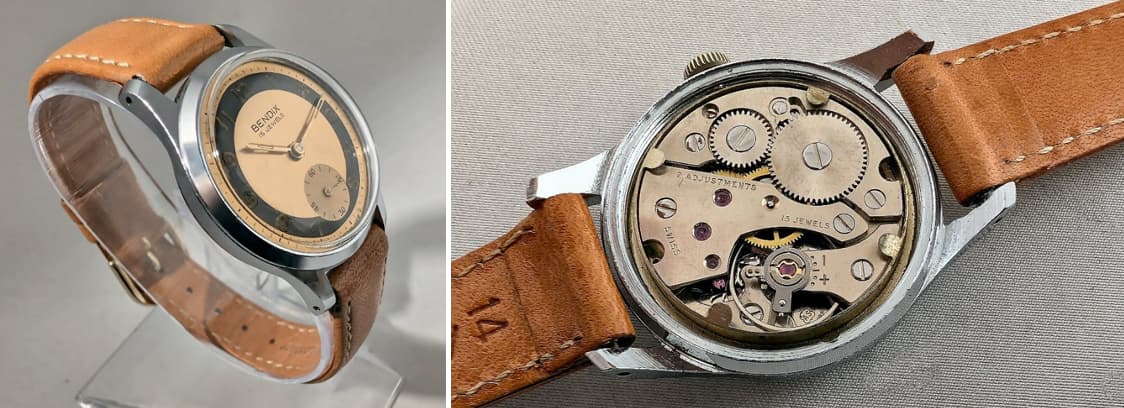 Grappig is wel dat de ‘broertjes’, hoewel zeer overeenkomstig in uiterlijk, allebei een verschillend uurwerk hebben. De andere Bendix is iets ouder en wordt aangedreven door een AS 984, een zeer veel gebruikt uurwerk, dat vanaf begin jaren 40 is geproduceerd.