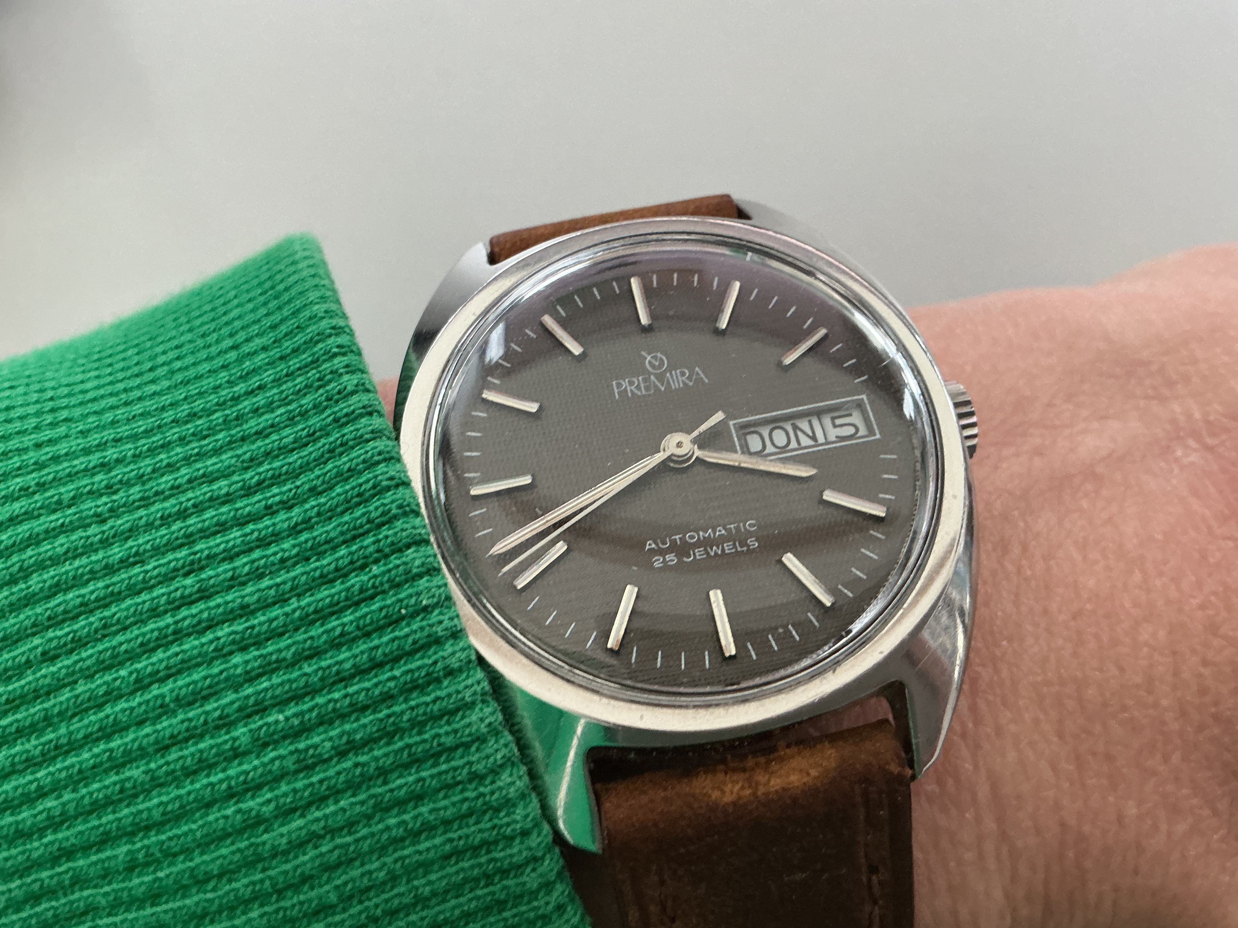 Dank je Don, ik ga hem zeker ook op leer zetten, dus soms op bracelet en soms op leer. Ik heb hem nog steeds om; de bracelet past precies, maar leer zou ook goed staan.