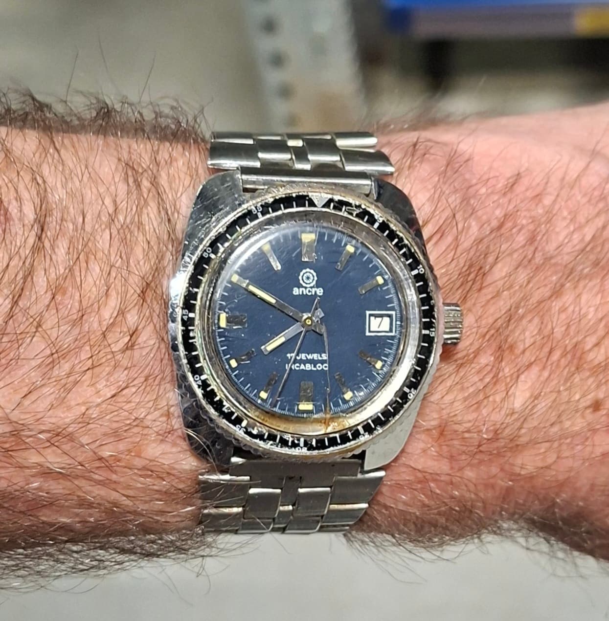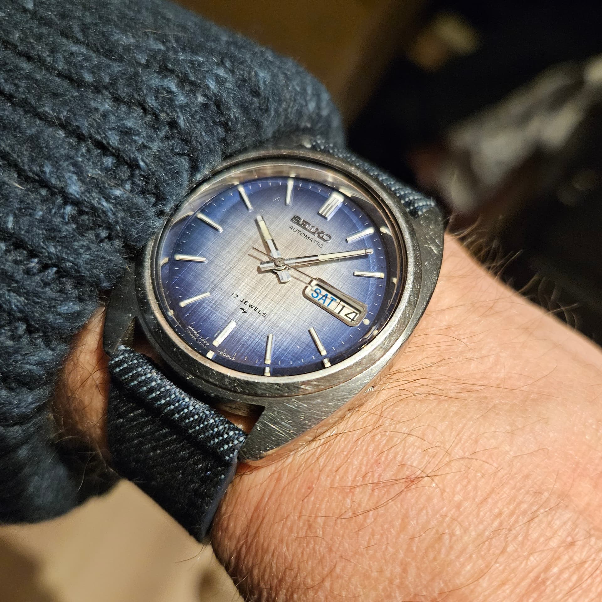 Deze 7009 moet nog een service, want als je de dag probeert te verzetten lukt dat 2x (door de kroon in te drukken), daarna schuift hij niet meer door. Werk aan de winkel dus!