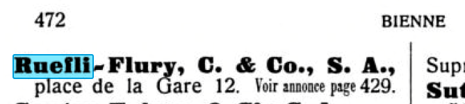 Ruefli-Flury was een grootgrutter in (handels)merken en labels. Als je “Ruefli” invoert in Mikrolisk krijg je twee HTML pagina’s vol met merken. Ruefly-Fluri bracht waarschijnlijk / mogelijk onder de eigen naam geen horloges op de markt, ik ben er althans nog nooit een tegengekomen.