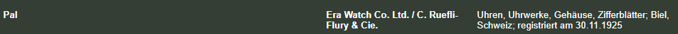 Ik zie PAL als merk een paar keer hernieuwd terugkomen in oa 1925/1945/1951. Onder ERA (bekendste van Edox). Zou me niet verbazen als het in die hoek zit, maar zeker weten doe ik het niet;-)