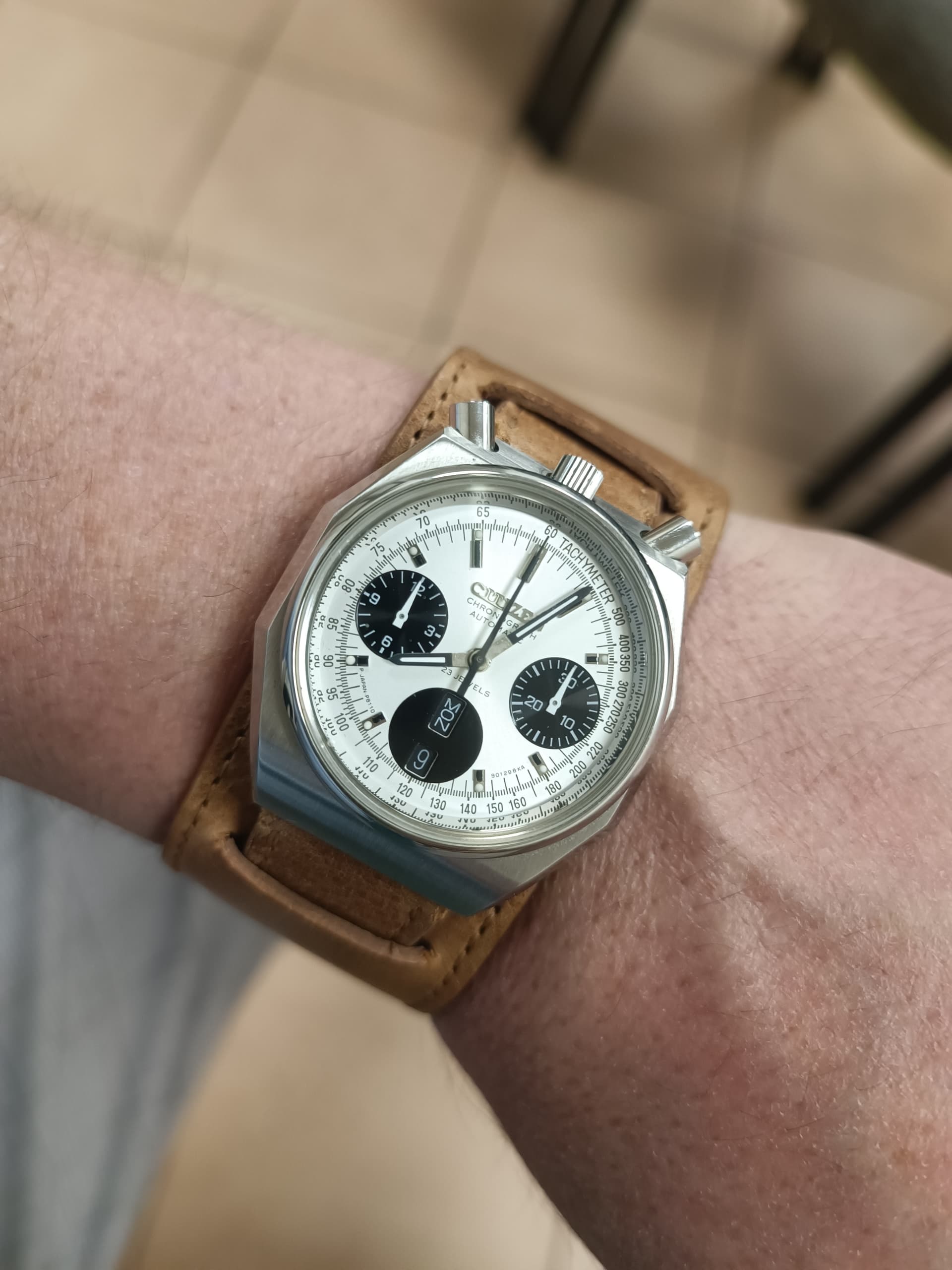 Edit: het is trouwens een 5106, van Daini-Seiko, met een bijzonderheid: dag en datum springen tegelijkertijd precies om middernacht in 1 klik naar de volgende.