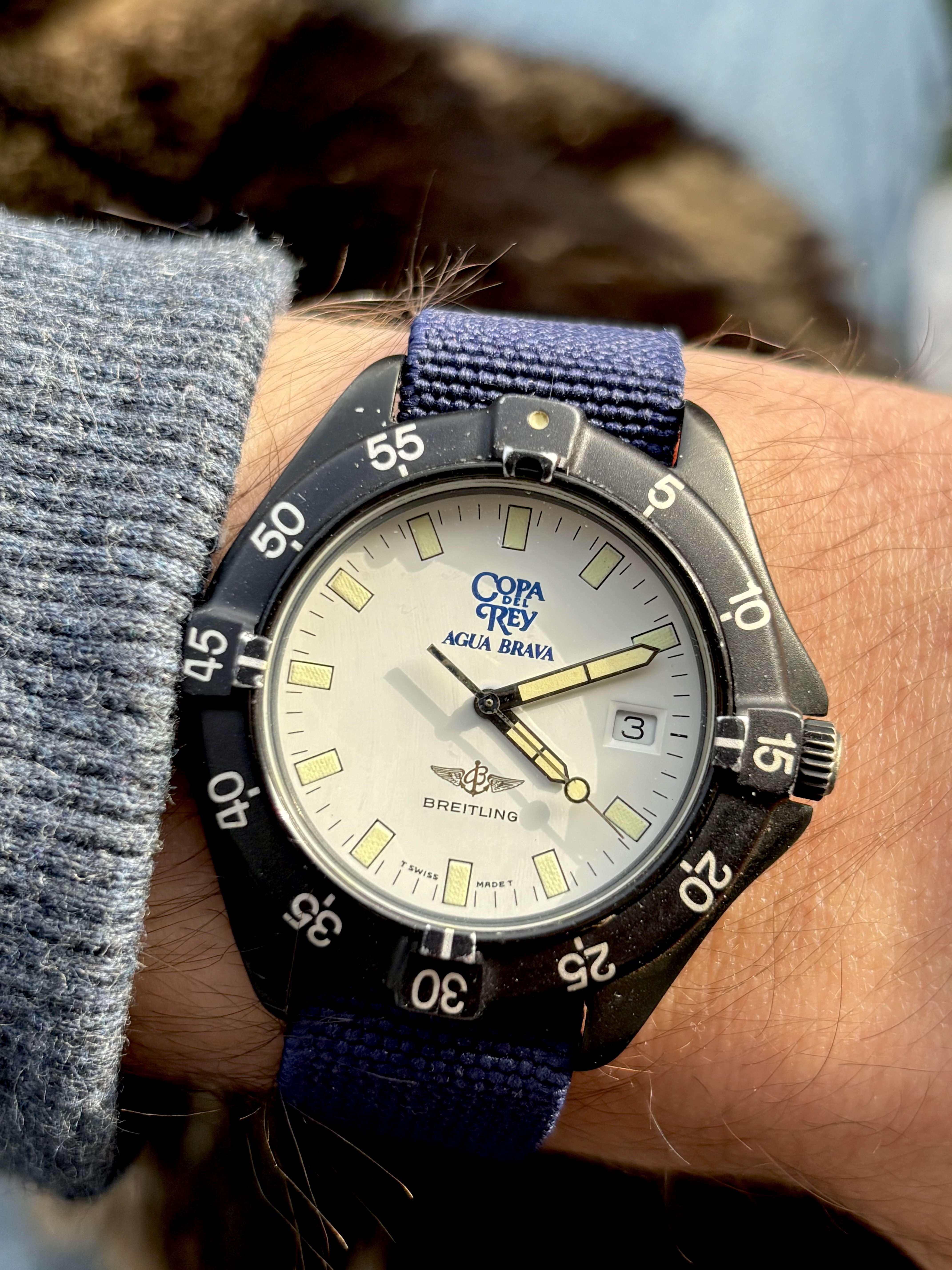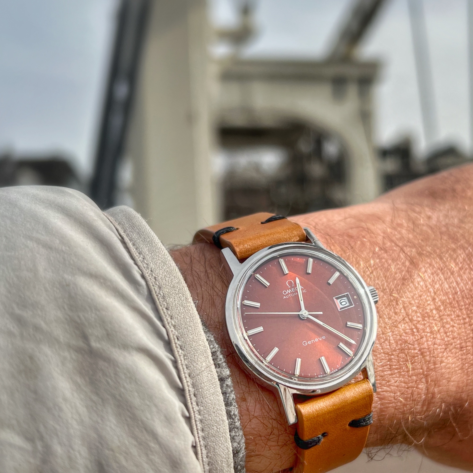 De omega letters springen echt van de wijzerplaat af, een sprankelend horloge tijdens deze zonnige dag.