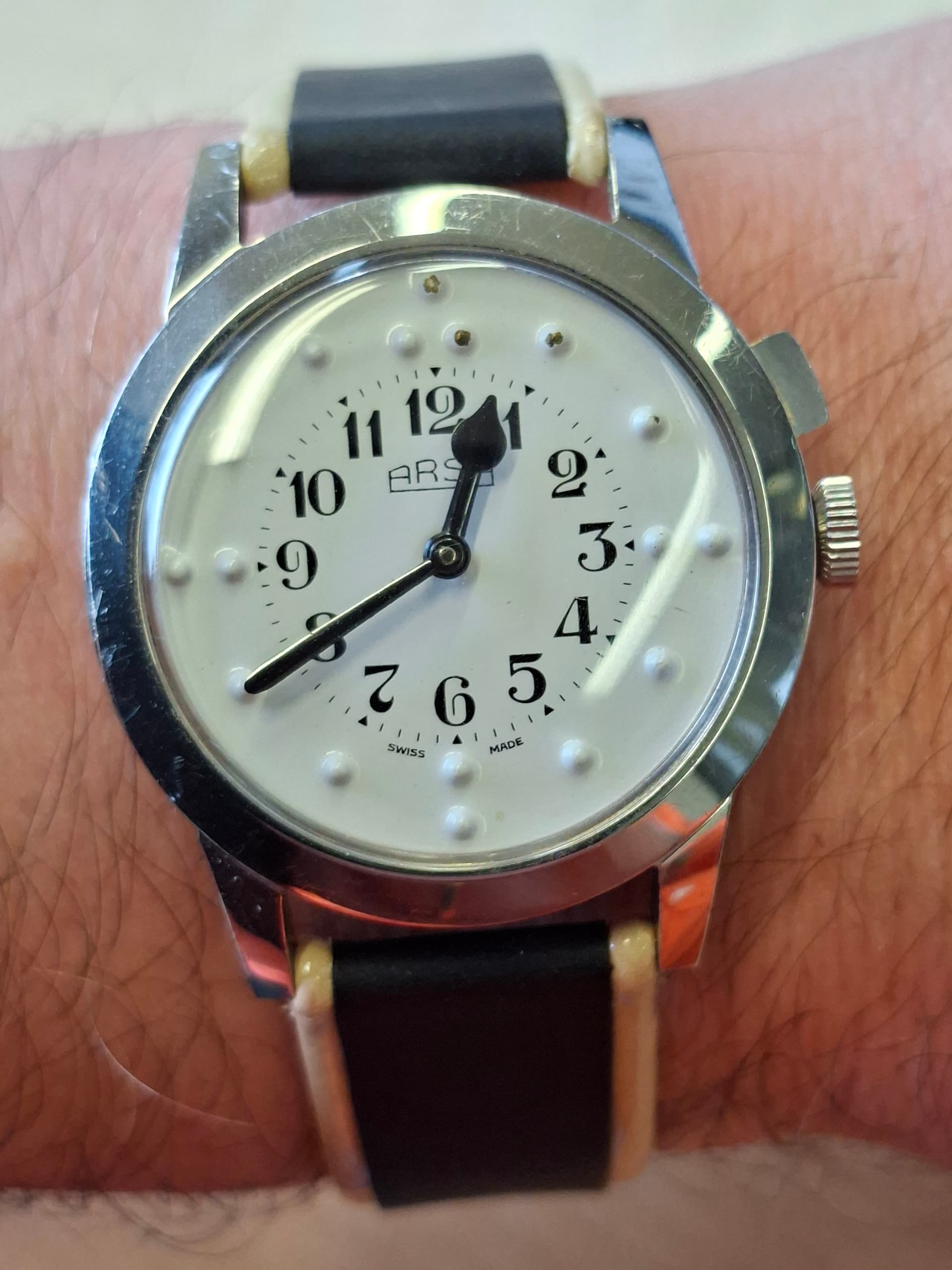 Het is een lekker eigenzinnig model. Eigenlijk moet ik nog een keer de originele bracelet zien te vinden. Maar op leer kan ook prima ![]()