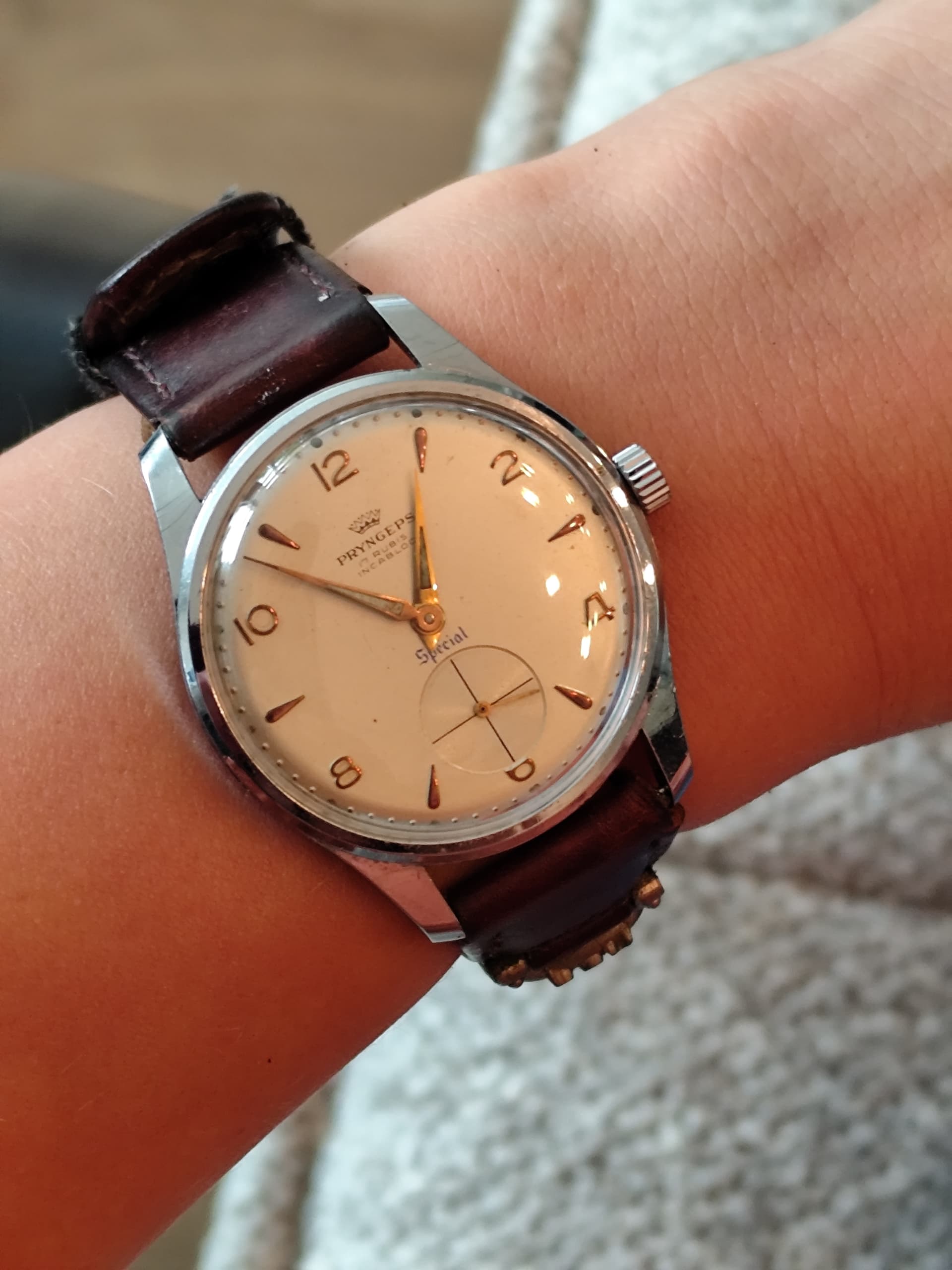 Zoonlief moet voor een schoolopdracht een portret(foto) nabootsen van een beroemd / historisch persoon. Hij koos voor Ferruccio Lamborghini, en dus moest er een Italiaans horloge om zijn pols. De Pryngeps band was veels te lang, dus heb ik mijn ruim 30-jaar oude Boy London bandje gemonteerd. Die was net klaar van een herstelbeurt adhv @Lexaf’s tips & tricks.