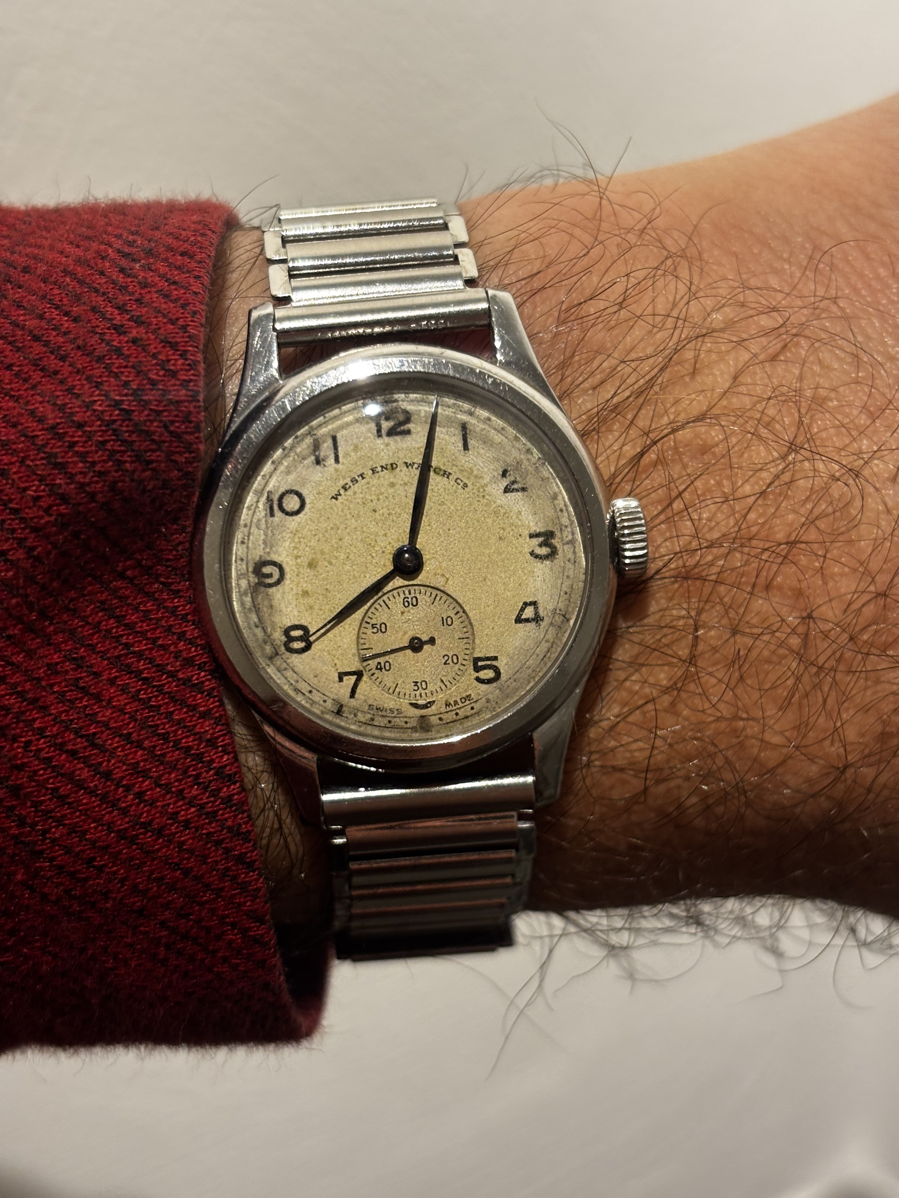 West End Watch van de Civil Services India met Longines 10.68z uurwerk in de avondwissel: