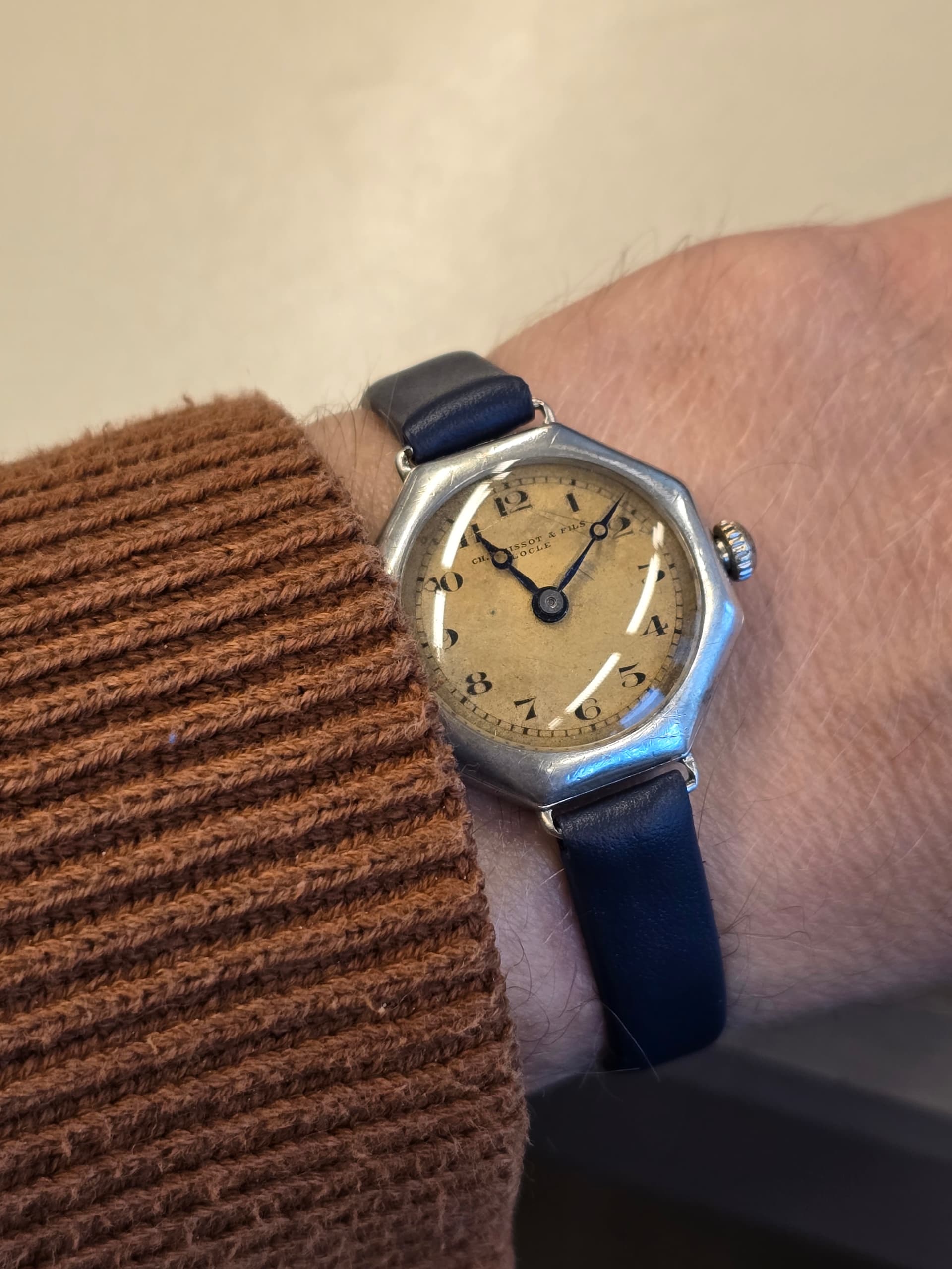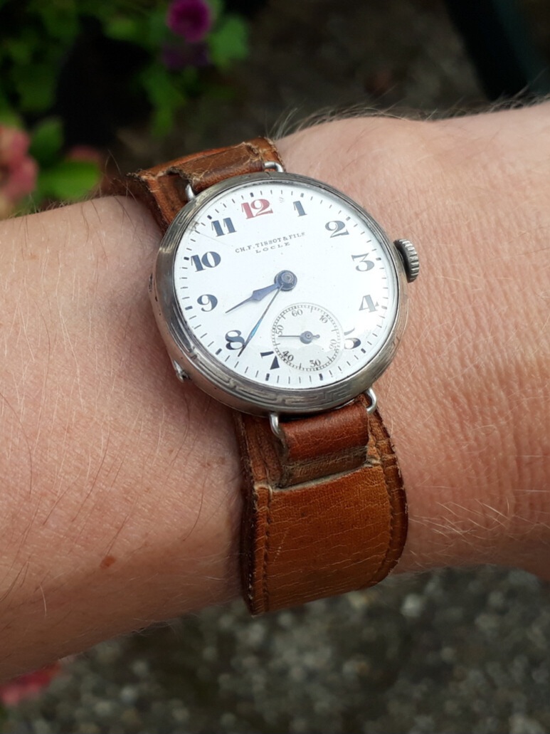 Wat aan het proberen met bandjes op m’n achthoekige Tissotje uit 1920. 8 mm is toch wel echt heel smal