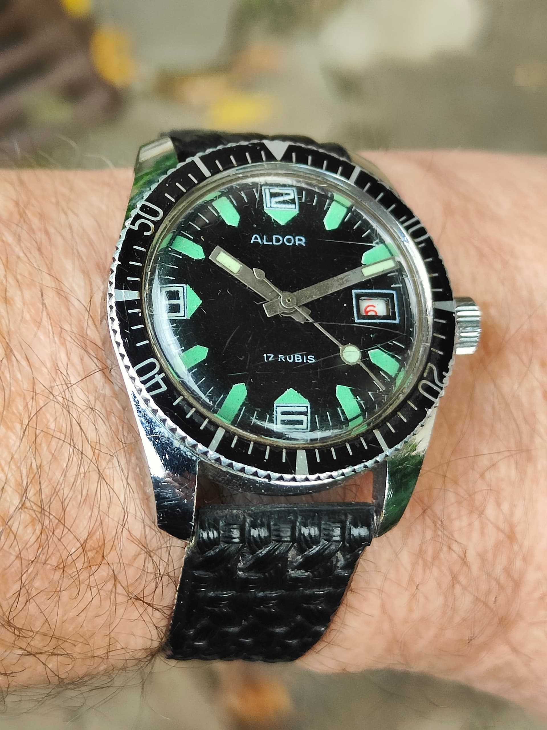 Ik heb er een paar van @Cricket33 gekocht, waarvan er twee opvielen, omdat daar de achterband niet breder was dan de kastbreedte. Ze zijn beige-achtig. Dat laat een horloge mooi uitkomen, in tegenstelling tot sommige donkerbruine of zwarte brede bund straps. Het draagt heel prettig. Even wennen, qua looks.