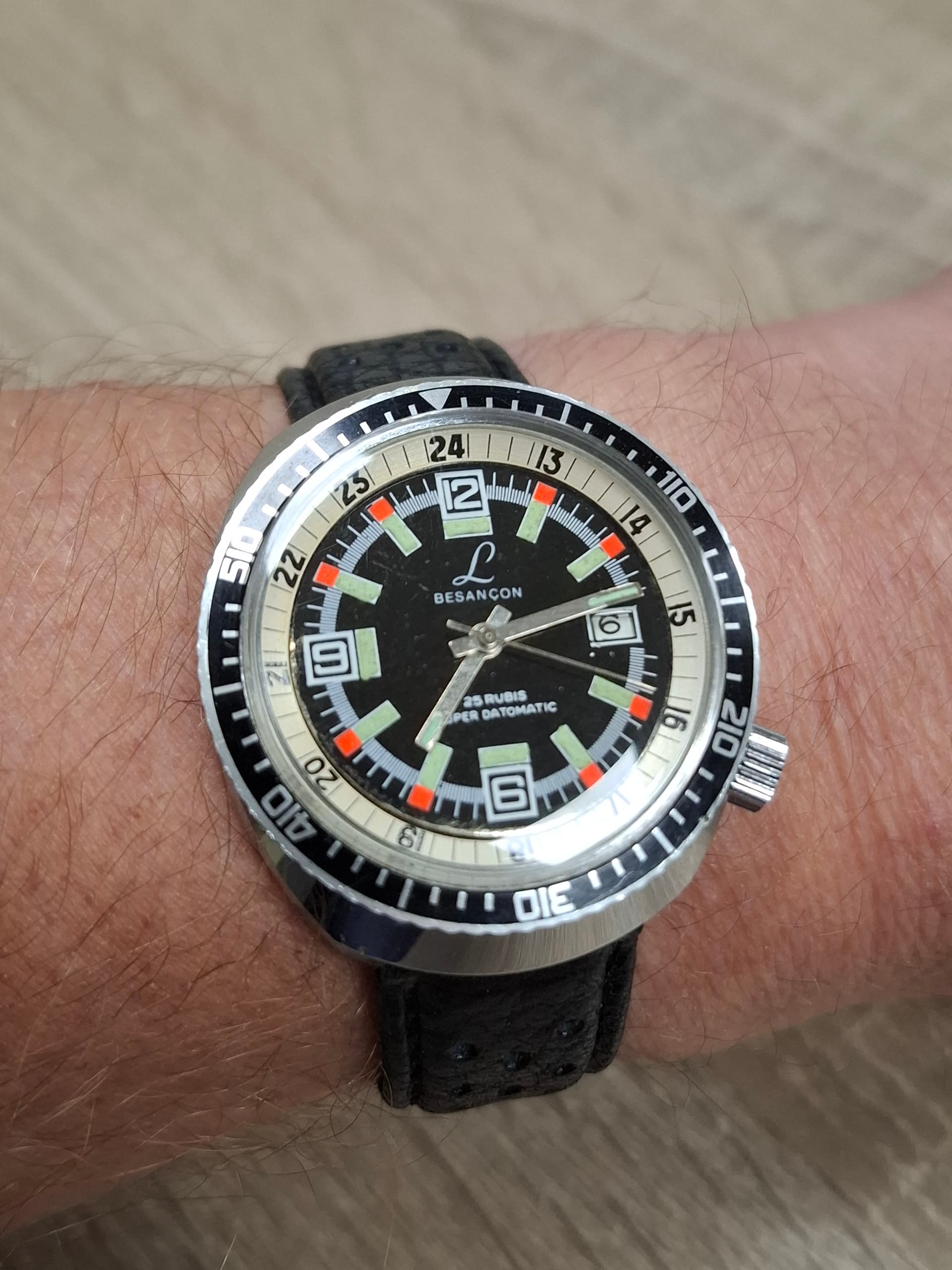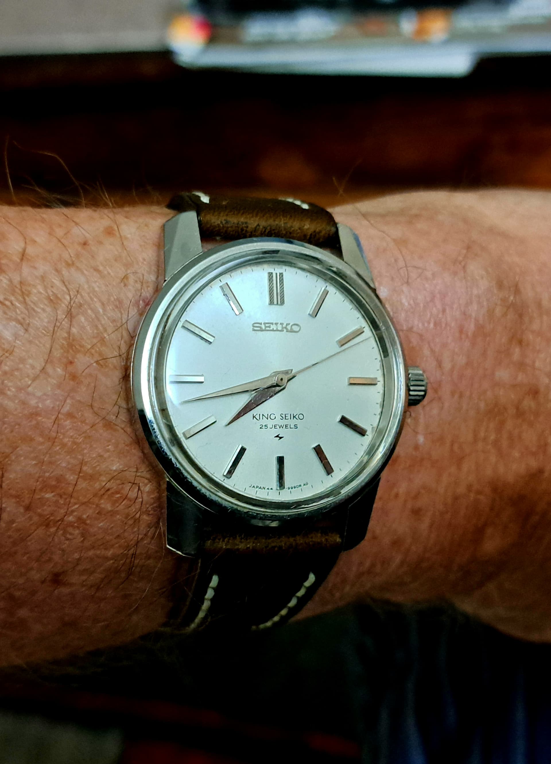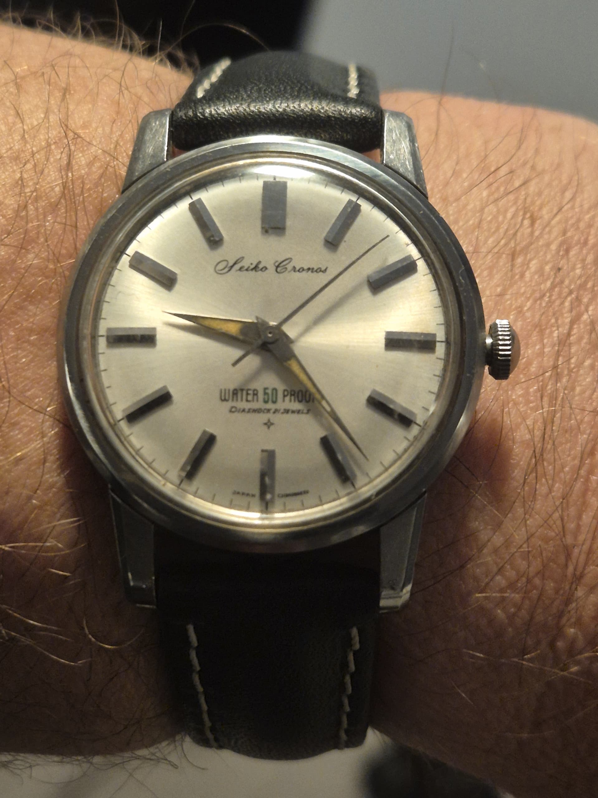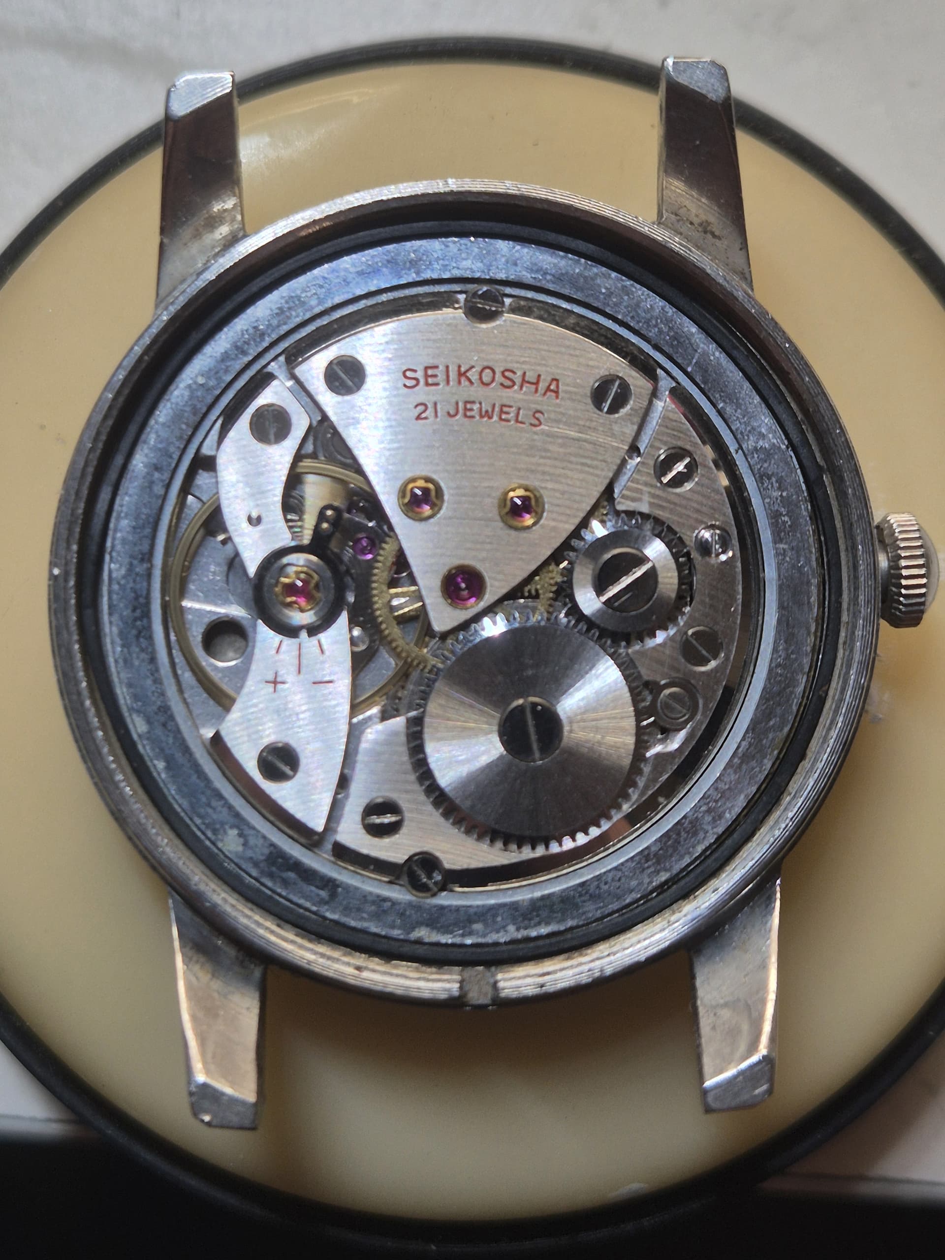 Deze Seiko Cronos Waterproof is vandaag aangekomen uit Japan. Het uurwerkje liep duidelijk droog, hoewel het er heel zuiver uitzag. Dus toch voor de zekerheid een beurtje gegeven, zodat ik het zonder problemen kan dragen. Van een amplitude van 220° naar 270° is dan toch wel de moeite.
