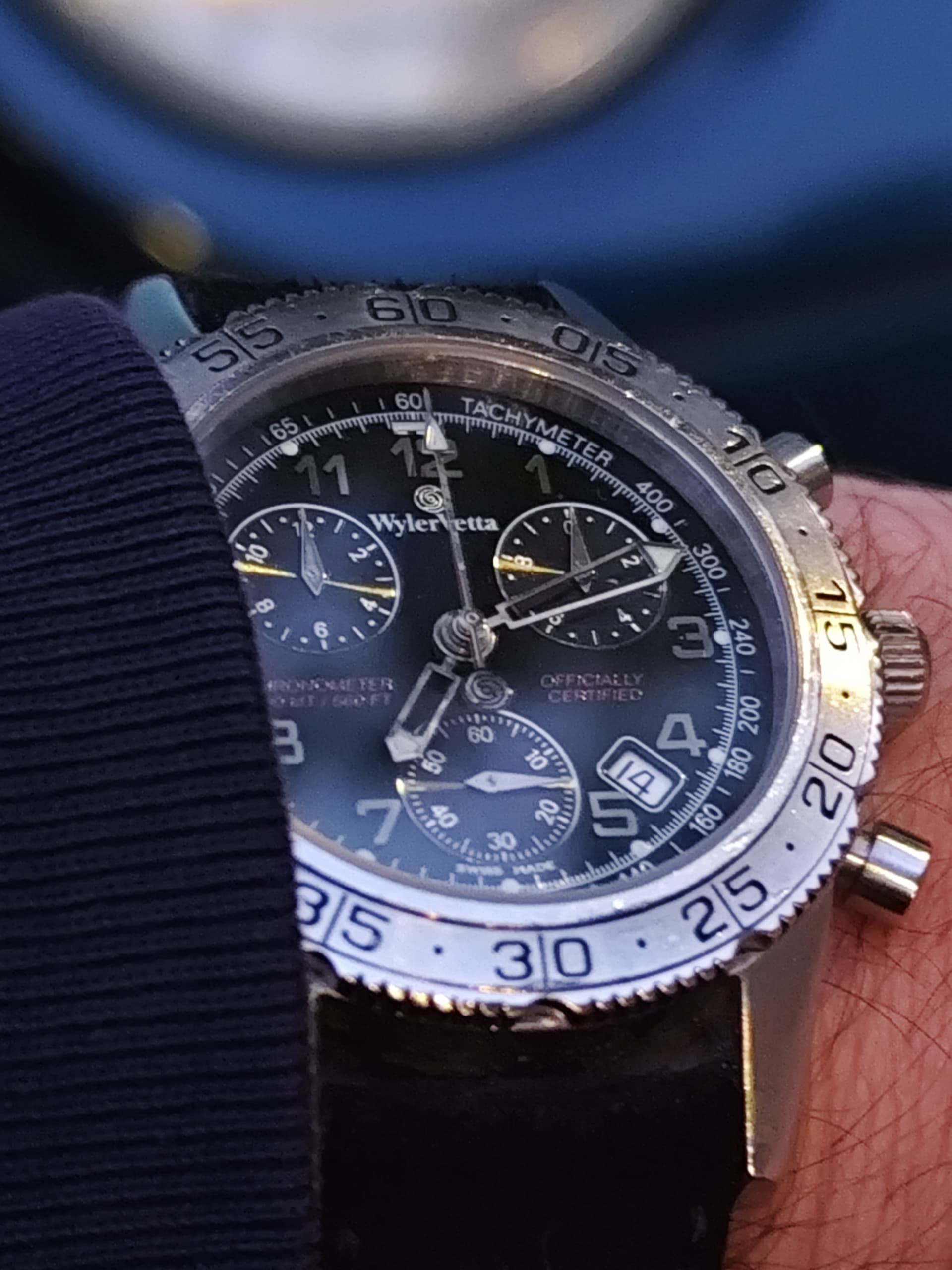 Volgens de vorige eigenaar zou het horloge jarenlang gedragen zijn door een piloot uit Portugal, en dat geeft het net dat beetje extra geschiedenis en karakter.