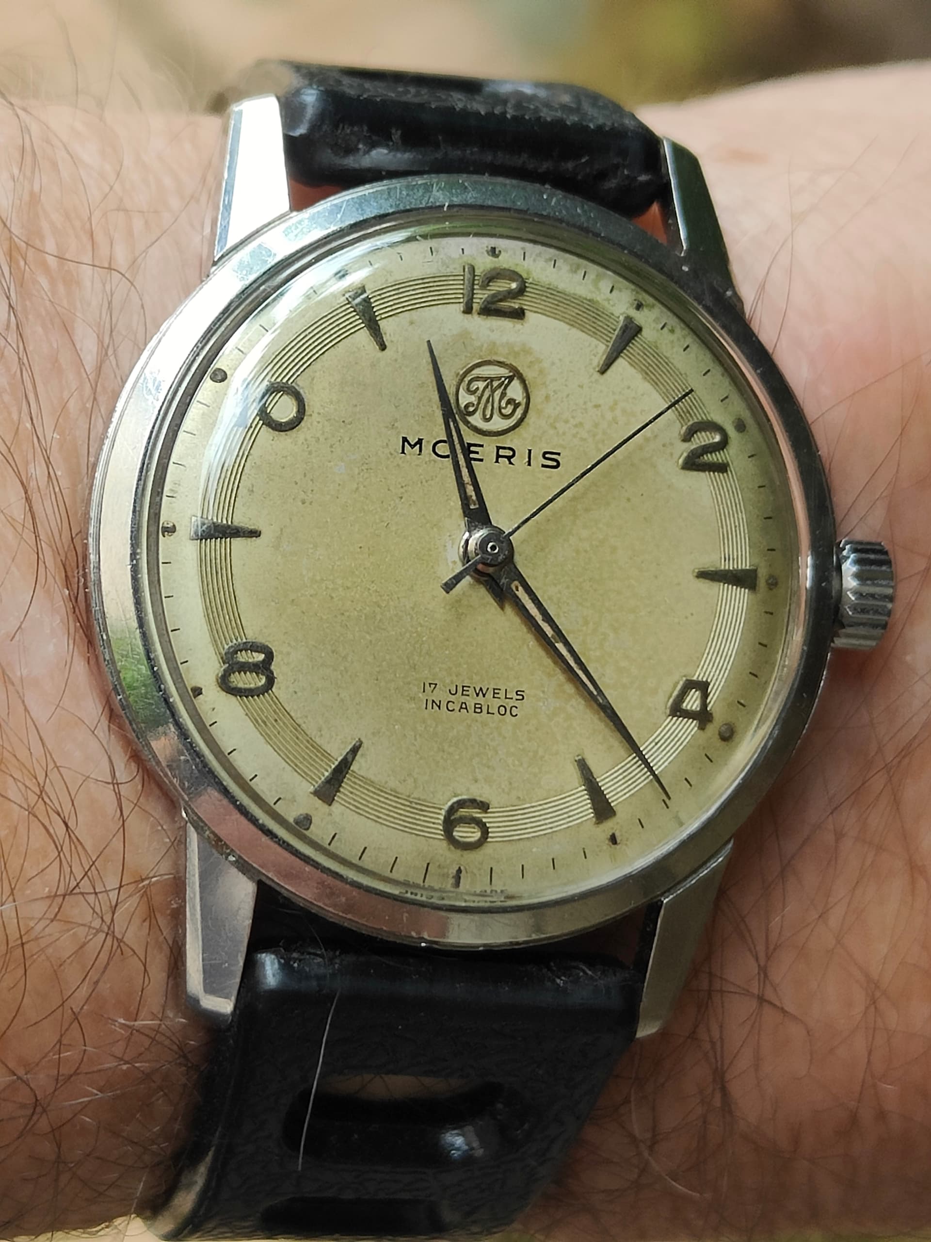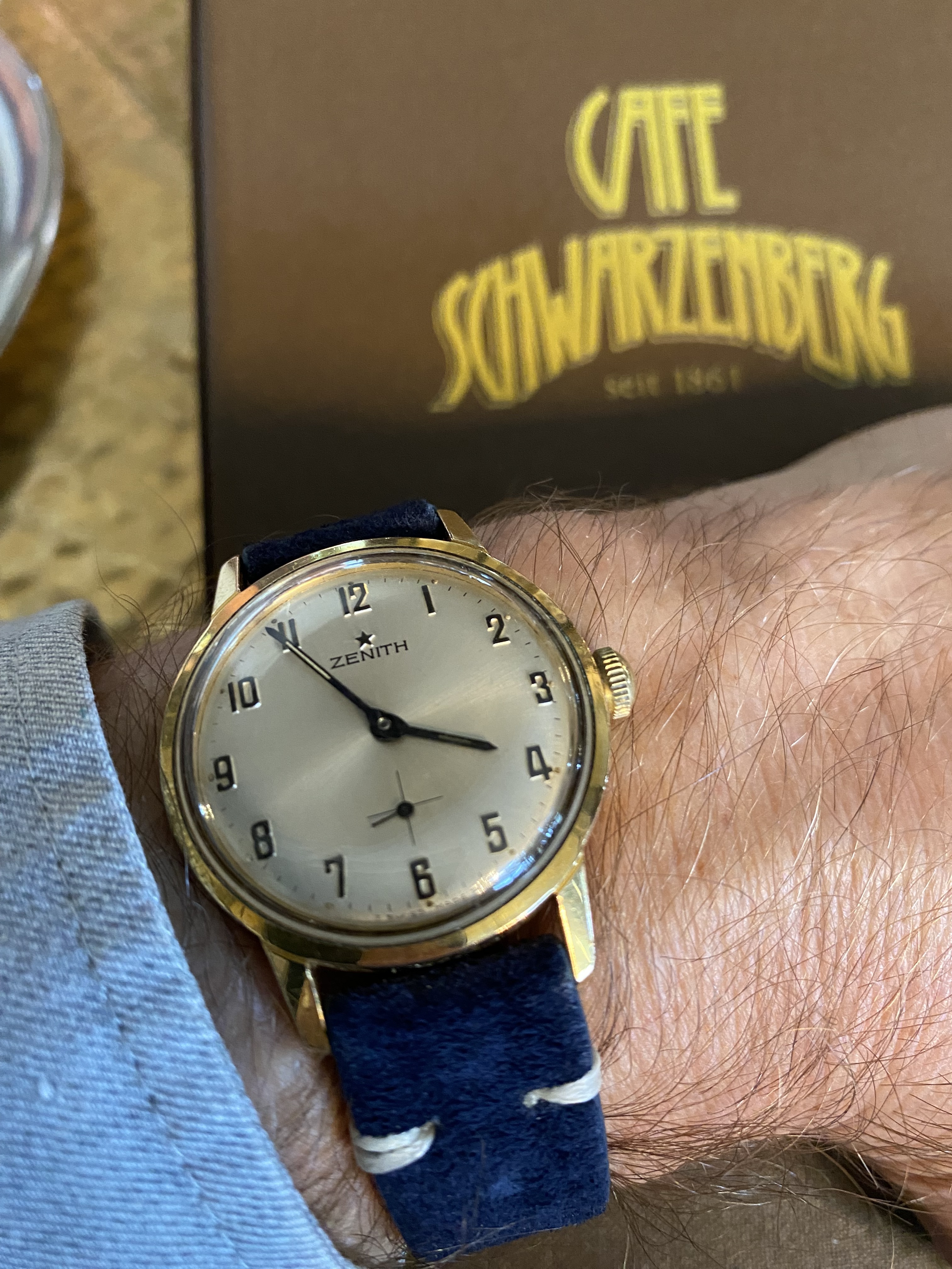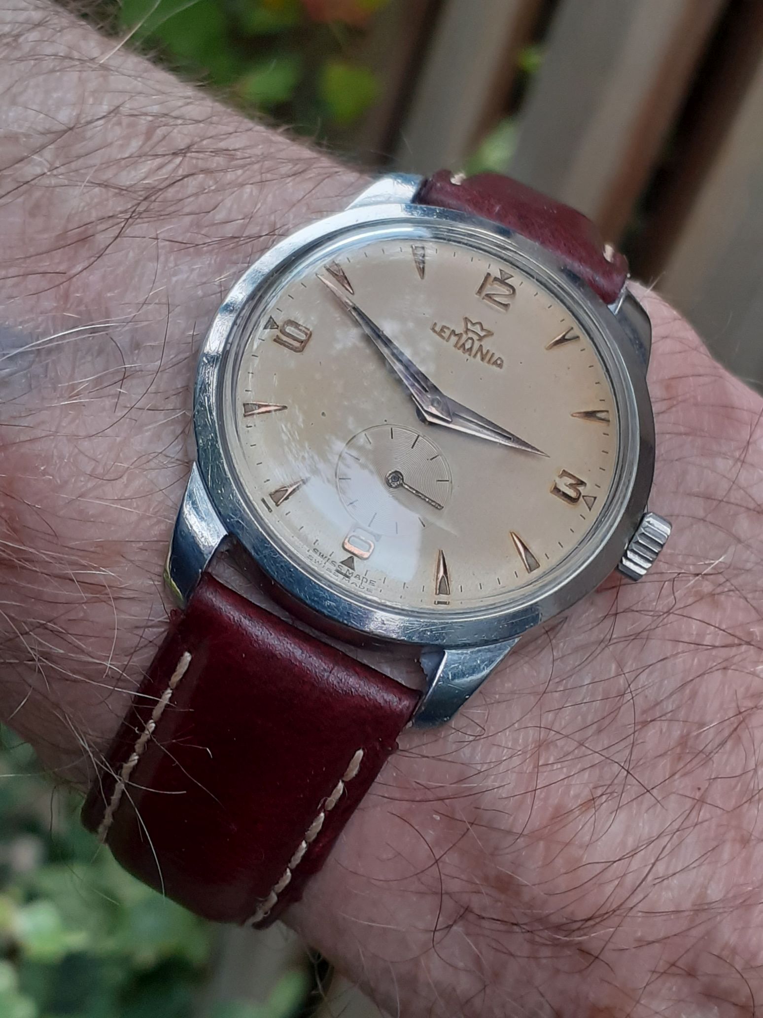Vandaag draag ik deze Lemania uit de jaren vijftig, voorzien van het Lemania kaliber 3060 — een eigen ontwerp van de fabriek.