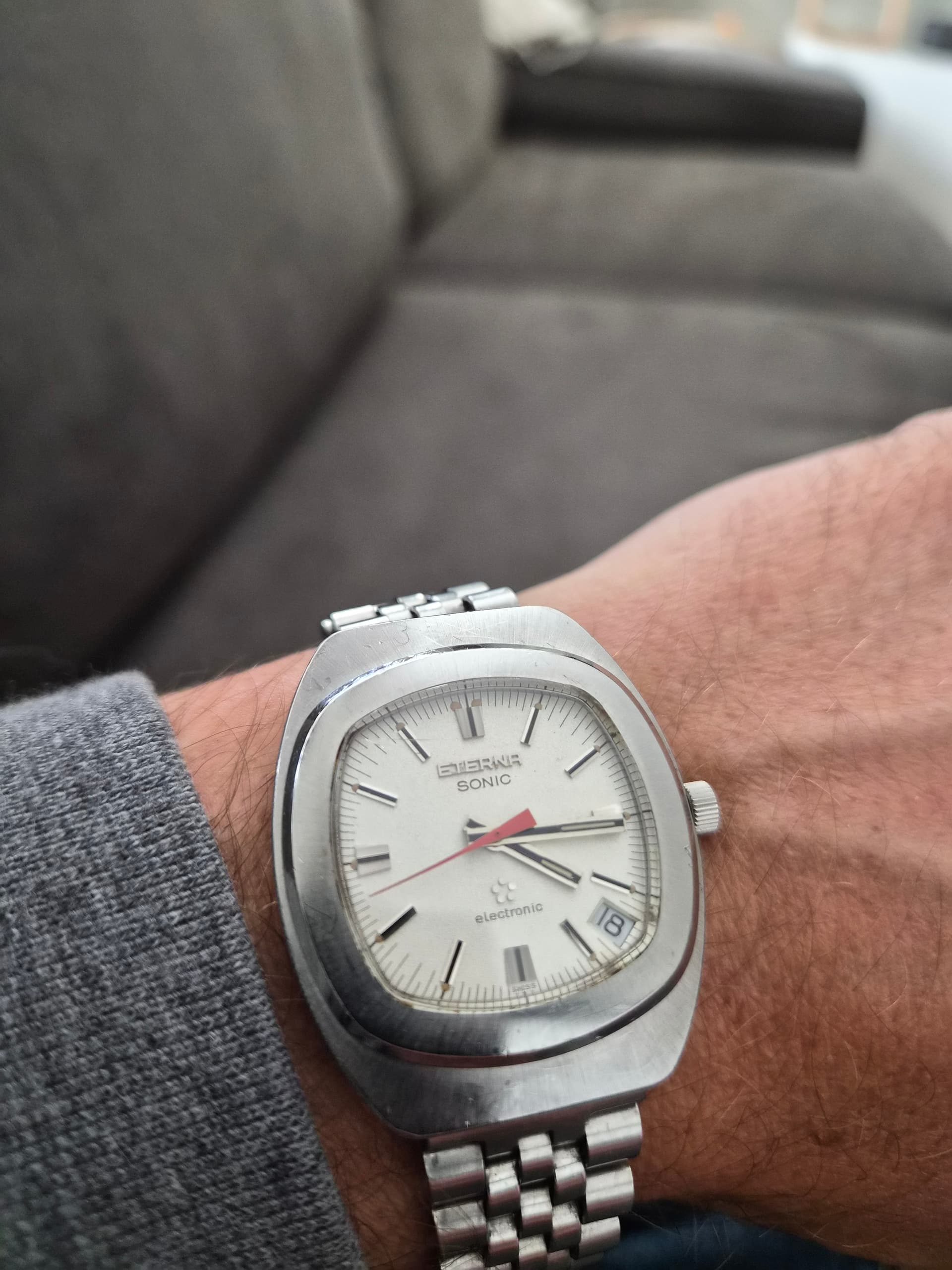 Het loopt weer. Ik heb het niet in de Elma gehad, maar het begon zomaar weer te lopen. En met een nieuw glas is het goed opgeknapt.Kast is in de ultrasoon geweest, niet over de polijstborstels, was niet nodig. Het glas heb ik verlaagd naar de hoogte van het originele glas.