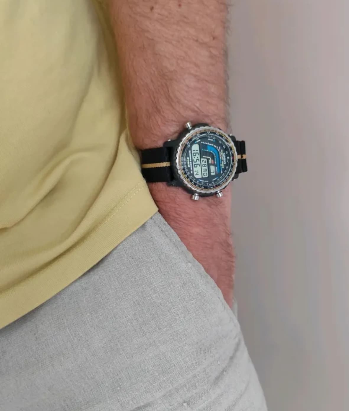 Ik heb trouwens even gekeken: het lijkt een Timex model 23373 uit de jaren ’70, met een typisch M24- of M25-kaliber — eenvoudige maar betrouwbare mechanische uurwerken die “niet-serviceable” werden ontworpen.