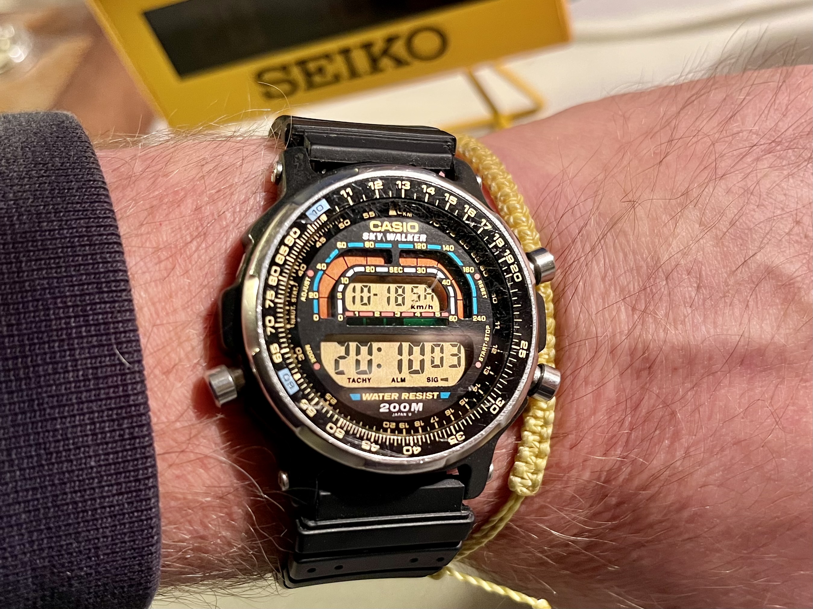 Mijn Seiko Presage is weg voor een onderhoudsbeurt, dus ik doe het nu met een Seiko kwartshorloge 7545-7030 dat ik in 1979 nieuw gekocht heb. Ik heb onlangs de ergste krassen met wat moeite van het glaasje weten te verwijderen.
