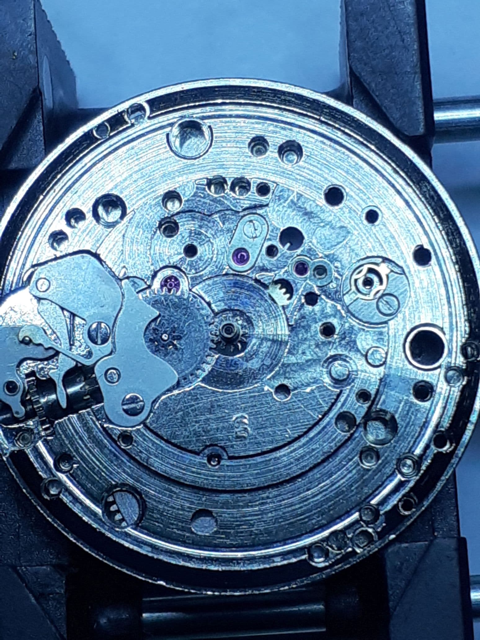 Ik ben nu met een AS 1702 bezig, ik heb een hobby waarbij ik nog nooit zoveel heb gevloekt, ik was dit uurwerk aan het monteren, en ik was bezig met een afdekplaatje valt dat minuscule kleine schroefje uit mijn pincet, en ik vloeken want ik kon het nergens meer vinden, maar na een paar minuten zag ik het, lag nog op platine, je mag raden waar het lag.