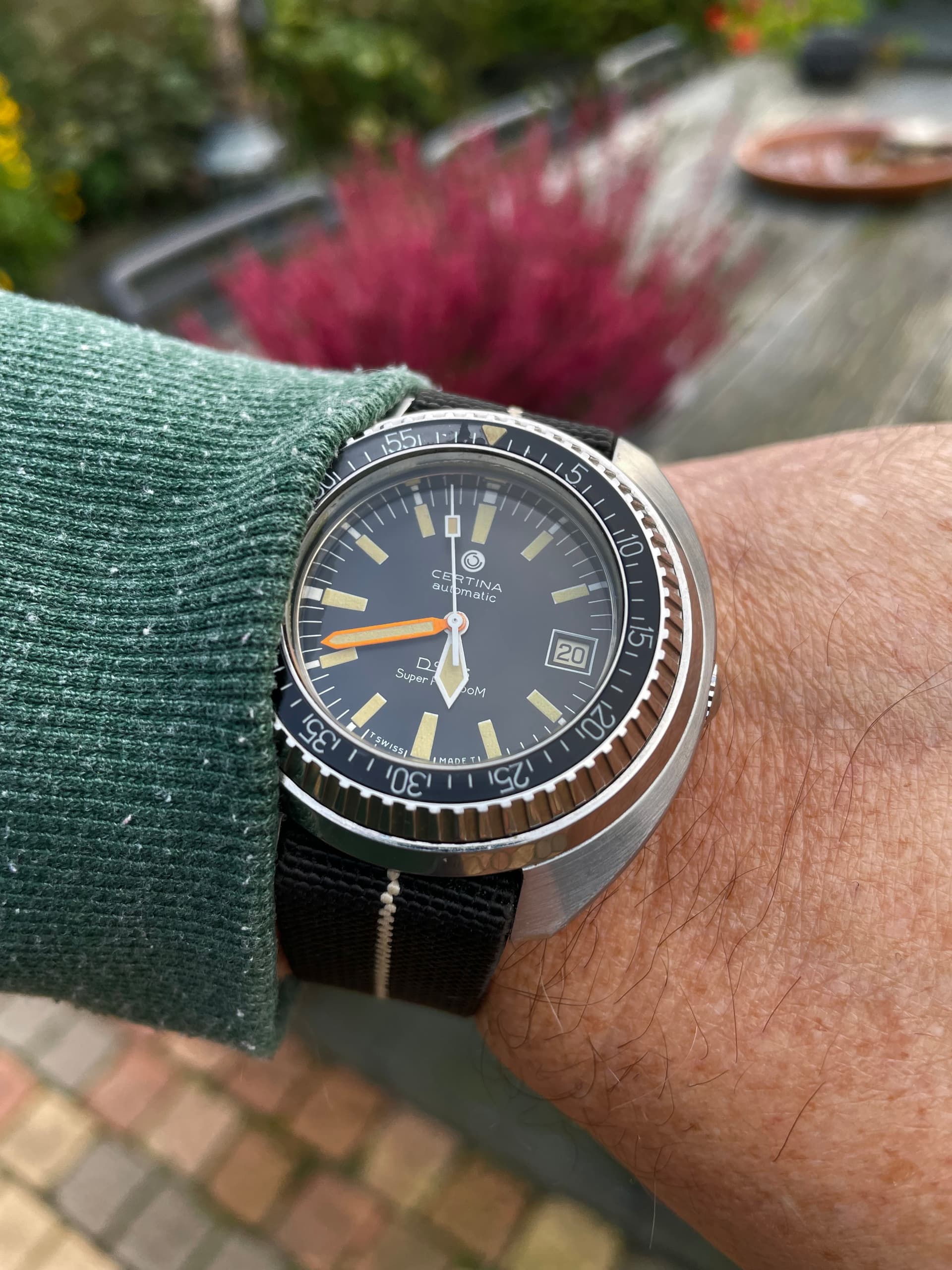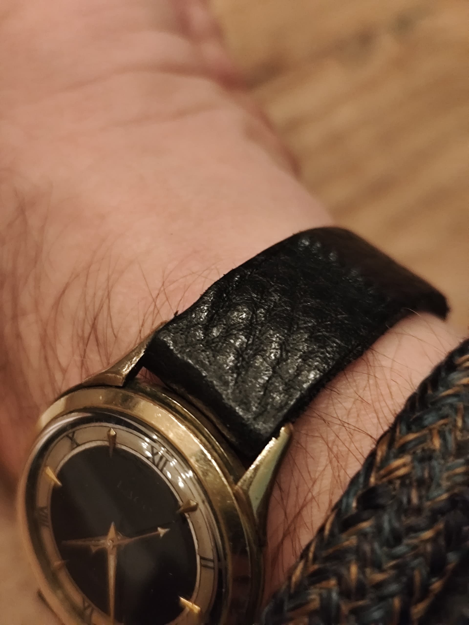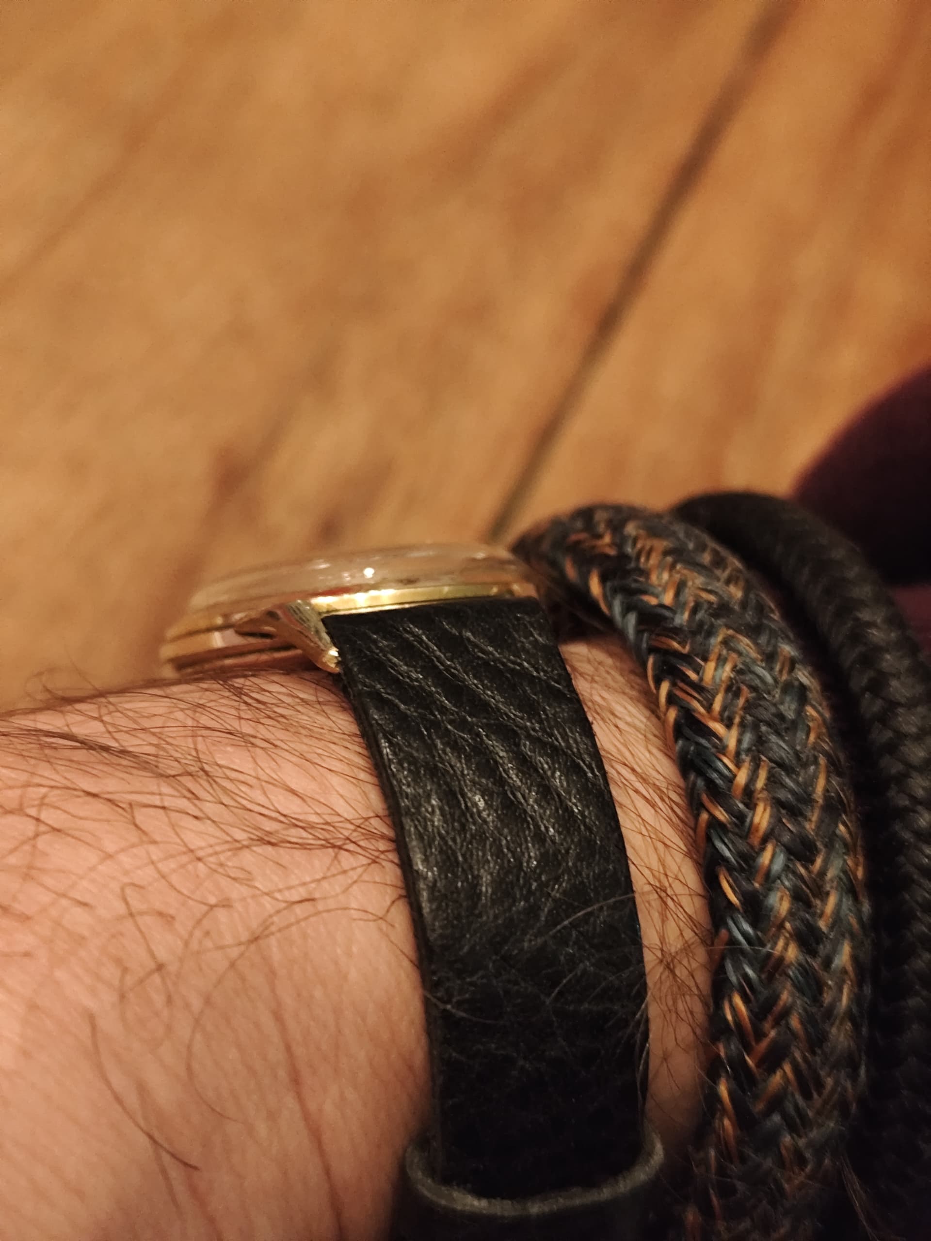 Lex vroeg mij wat ik in gedachten had en ik zei dat ik graag soepel, zwart leer wilde met een ruige look door een bepaalde structuur. Verder niet teveel poespas. Het horloge oogt militair, dus wilde ik het bandje niet te gladjes. Nou, wat ik mij had ingebeeld, dat maakte Lex. Maar dan beter. Toen ik gisteren het bandje voelde, terwijl ik kennismaakte met onze alleraardigste Forumvriend, wist ik meteen dat dit het zachtste bandje is in mijn collectie. Wow, wat fijn, mooi in al zijn eenvoud én stoer! Perfectie.