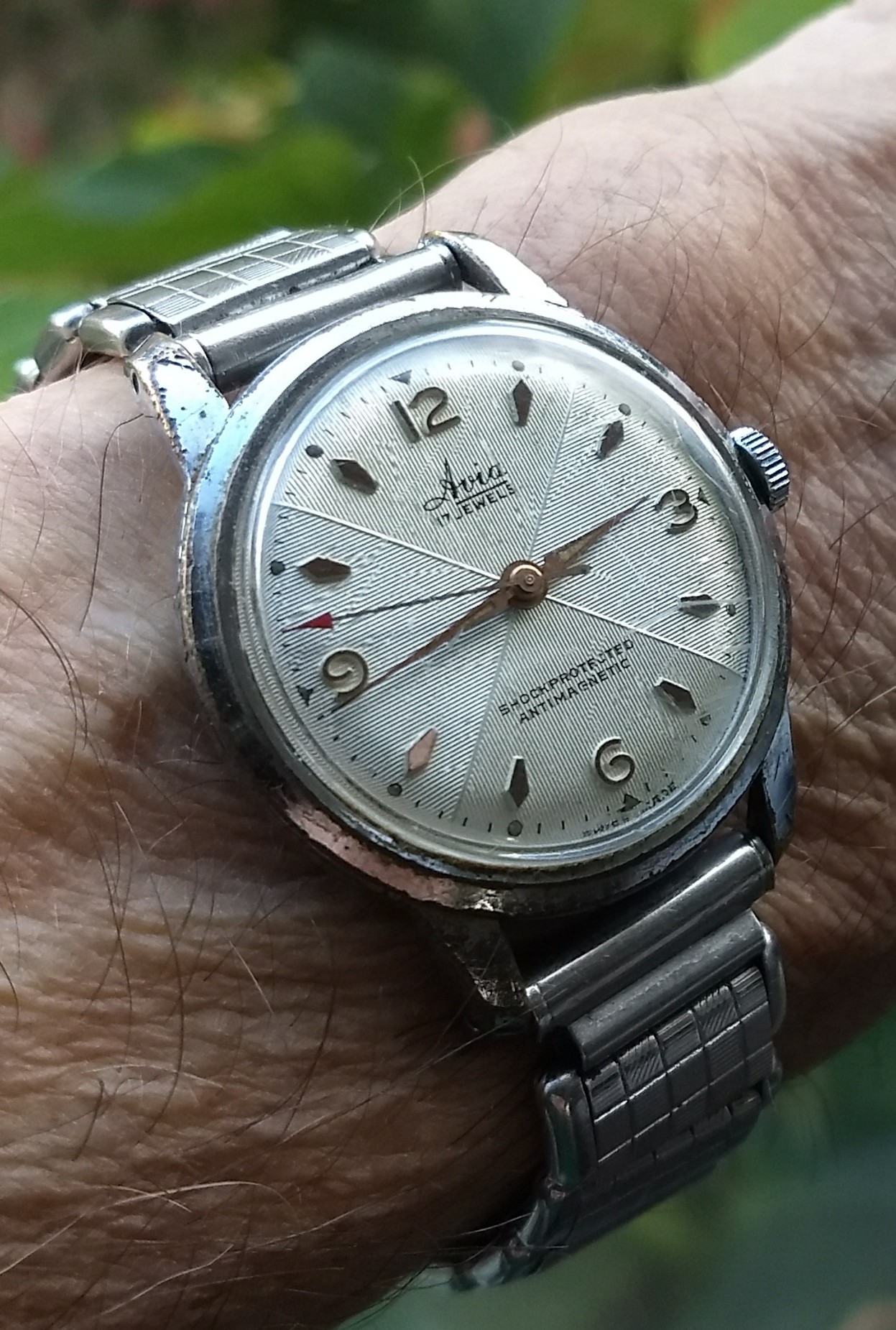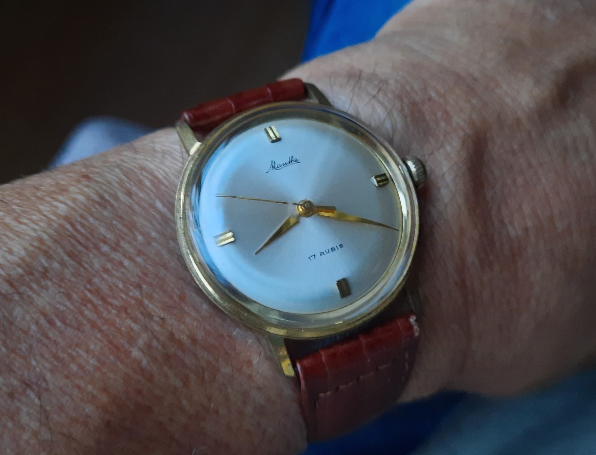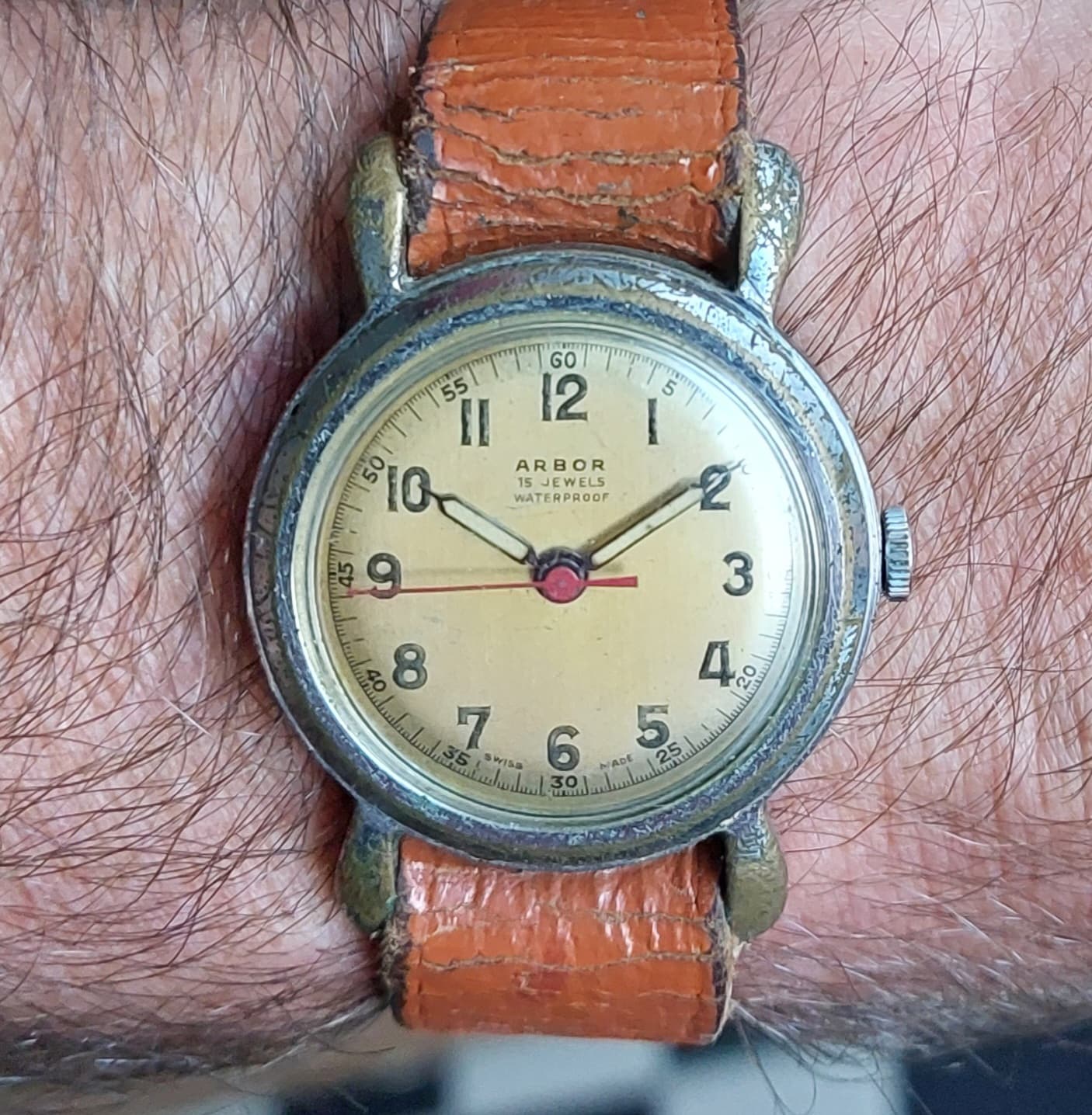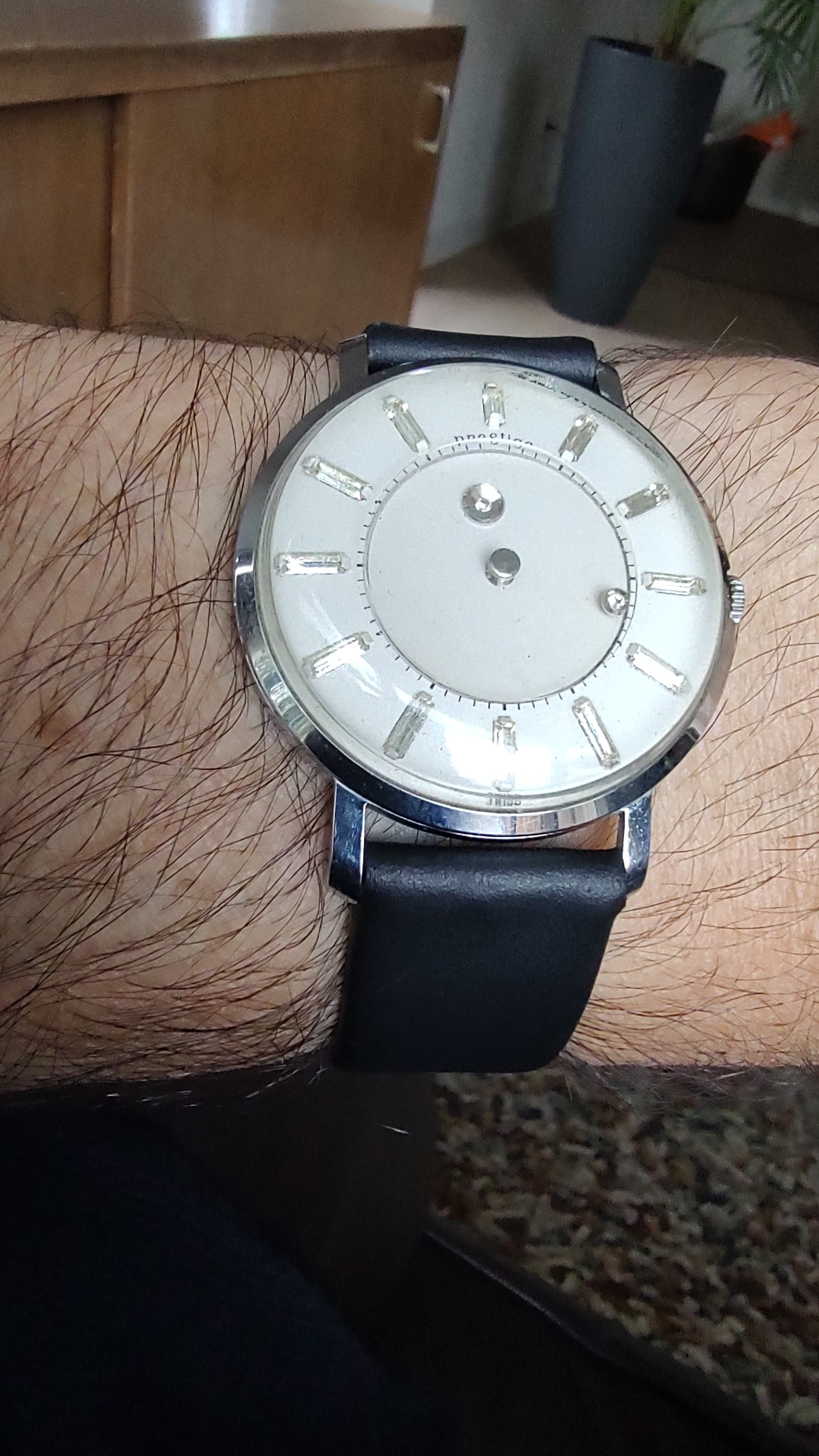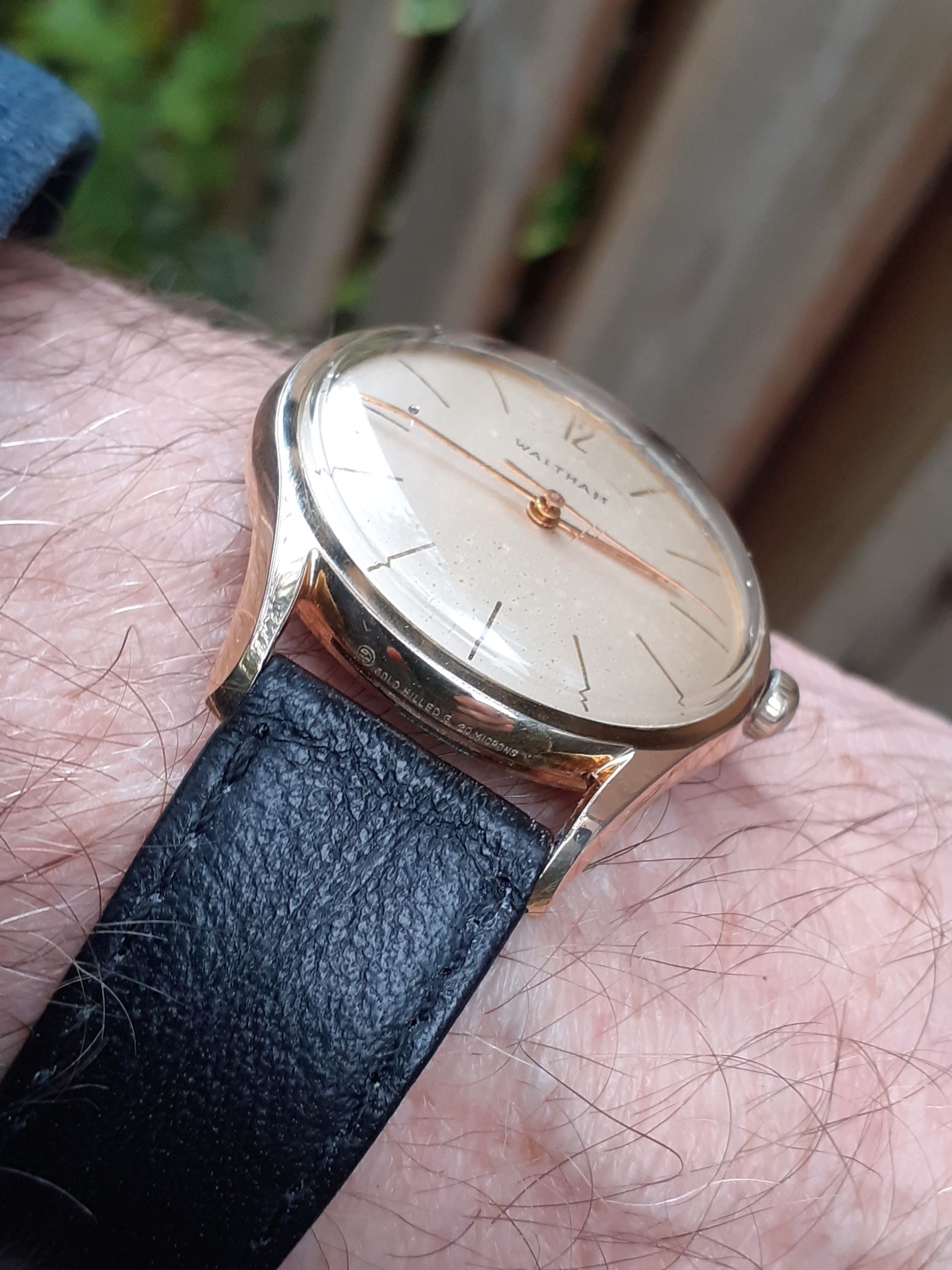Vandaag draag ik deze Waltham, waarschijnlijk uit de jaren ’50. Binnenin tikt het betrouwbare FHF 72-kaliber. De kast is verguld en de minimalistische wijzerplaat heeft nog die mooie vintage uitstraling. Loopt weer keurig na wat kleine aandachtspunten — een rustig en verfijnd stukje horlogegeschiedenis.