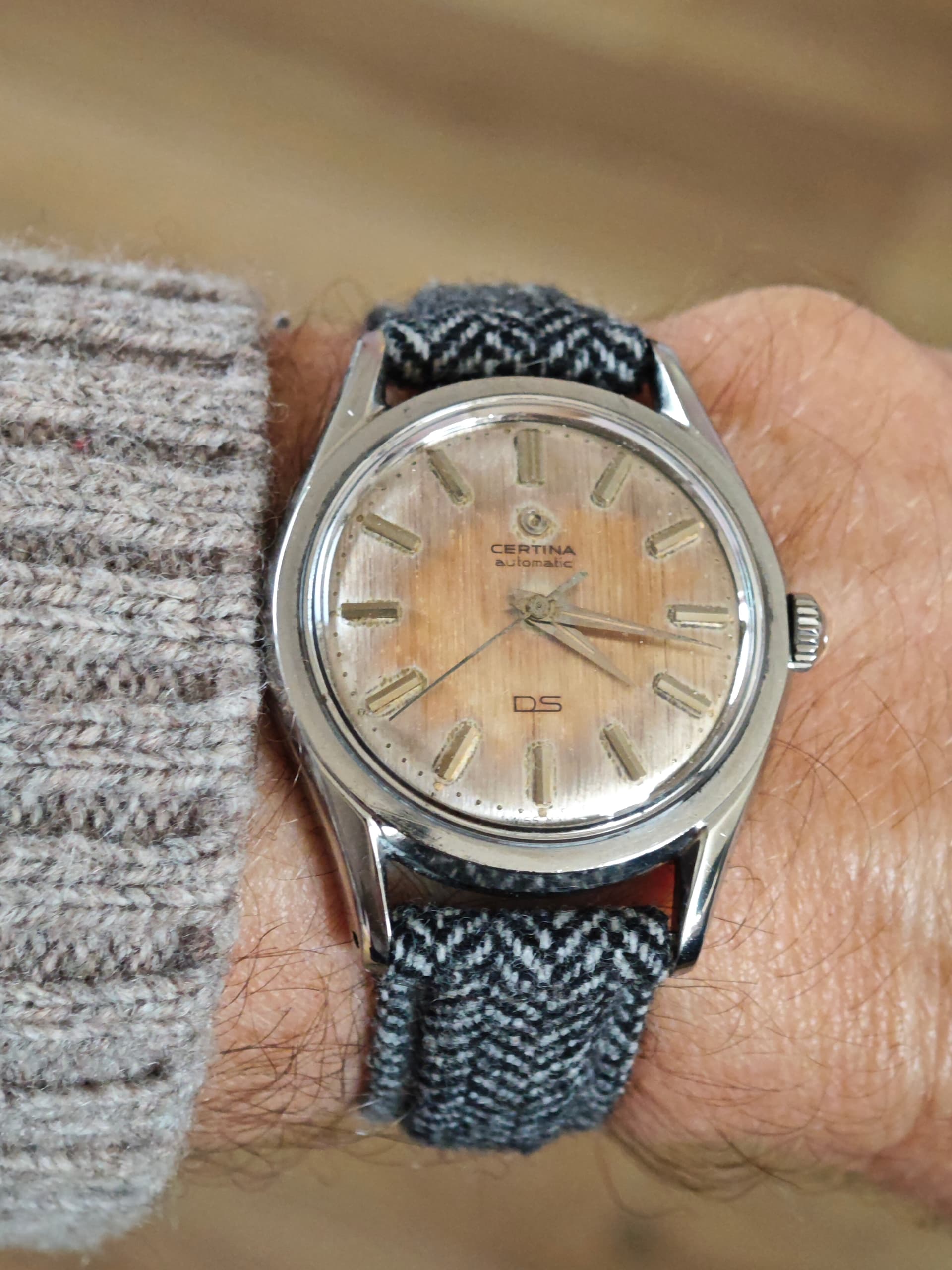 “Ruig” horloge mag wel een stevige band aan. Geen bling bling of franjes. Past hier niet bij. Perfect zo.