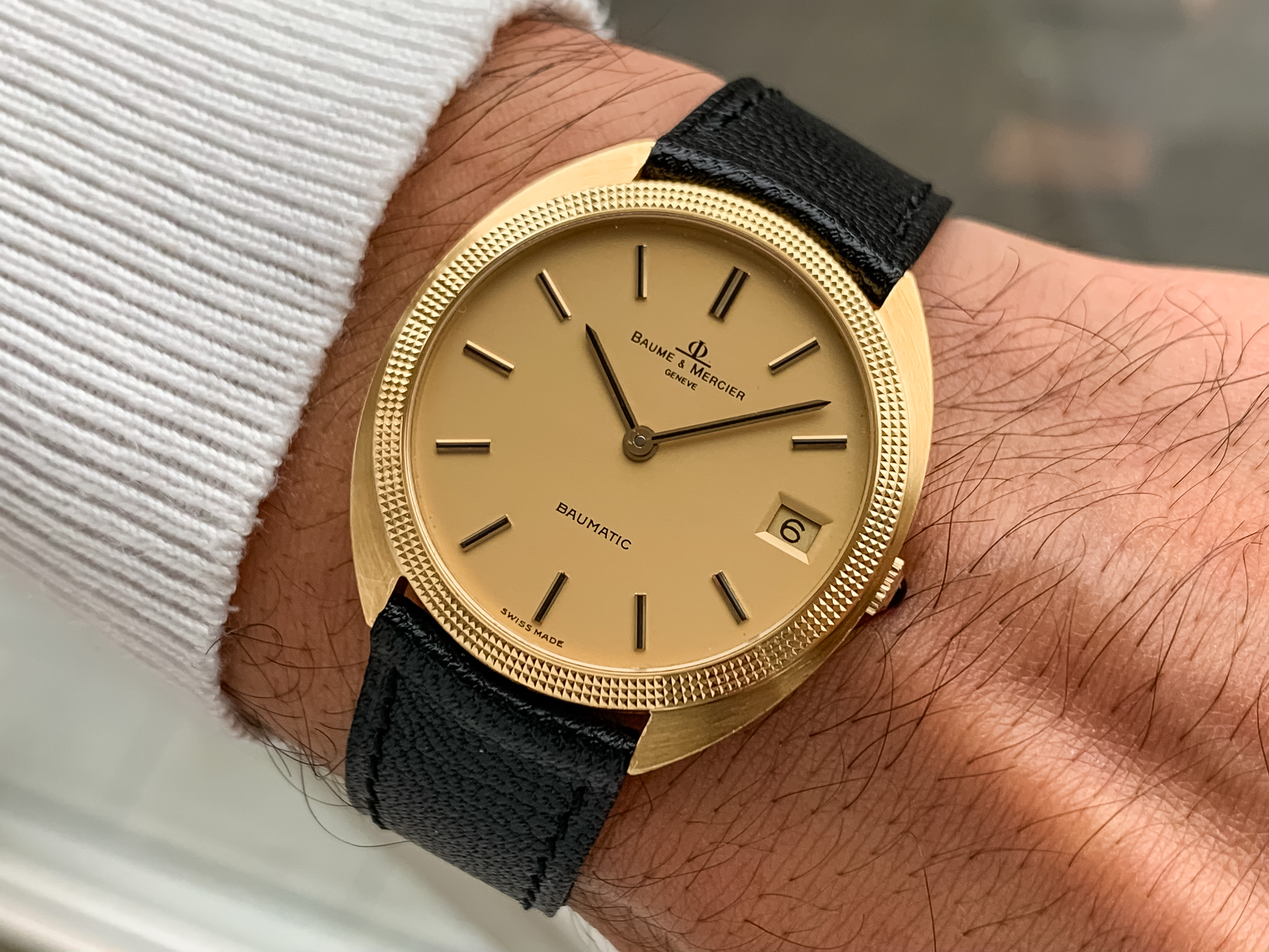 Mooie Baume & Mercier Automatic “Clous De Paris” in 18k gouden kast uit jaren 1980.