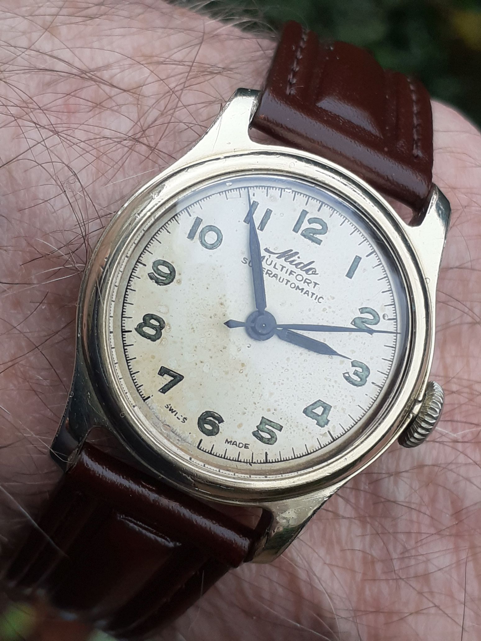 Vandaag draag ik deze charmante Mido Multifort Superautomatic uit de jaren ’40.