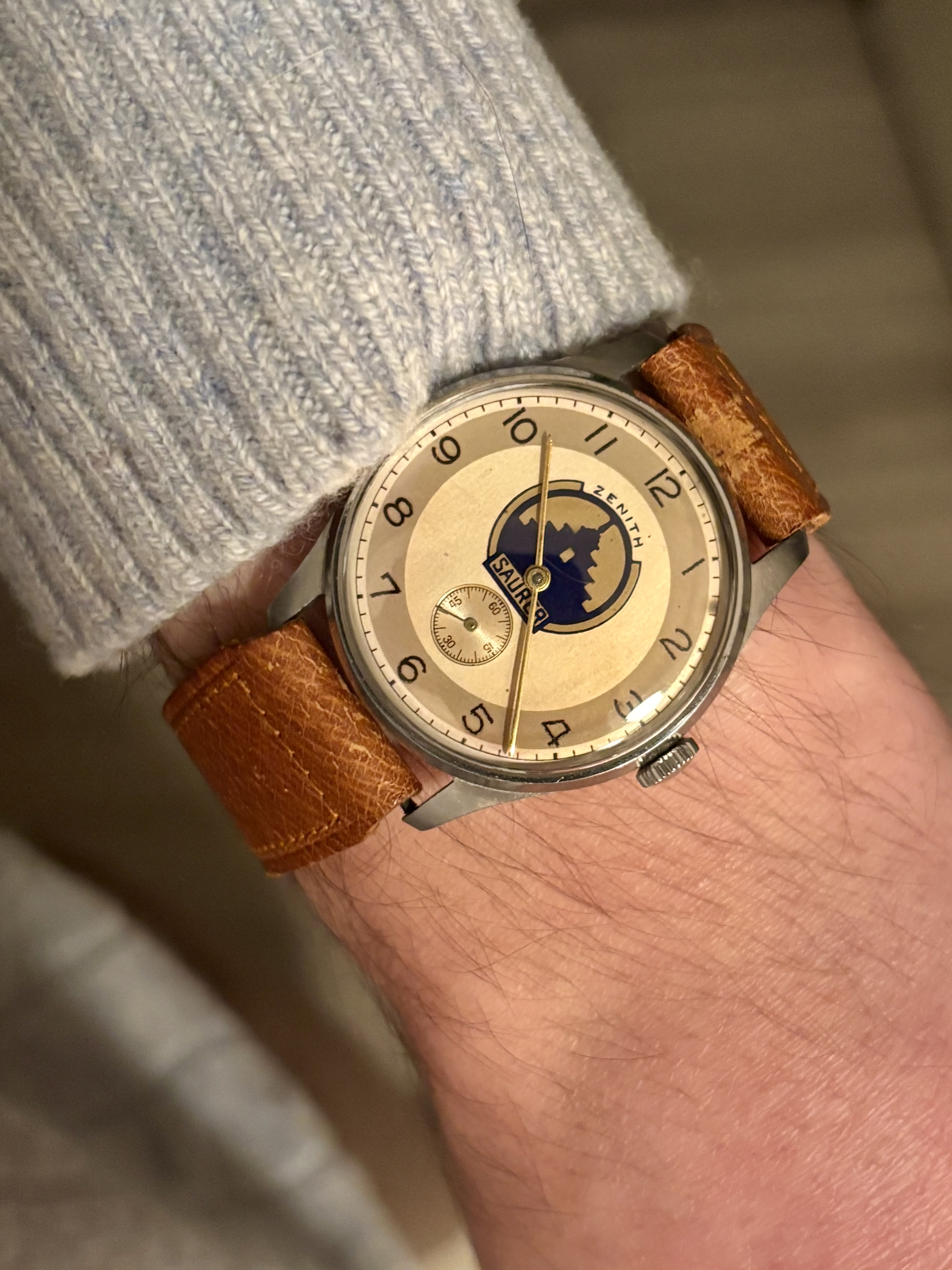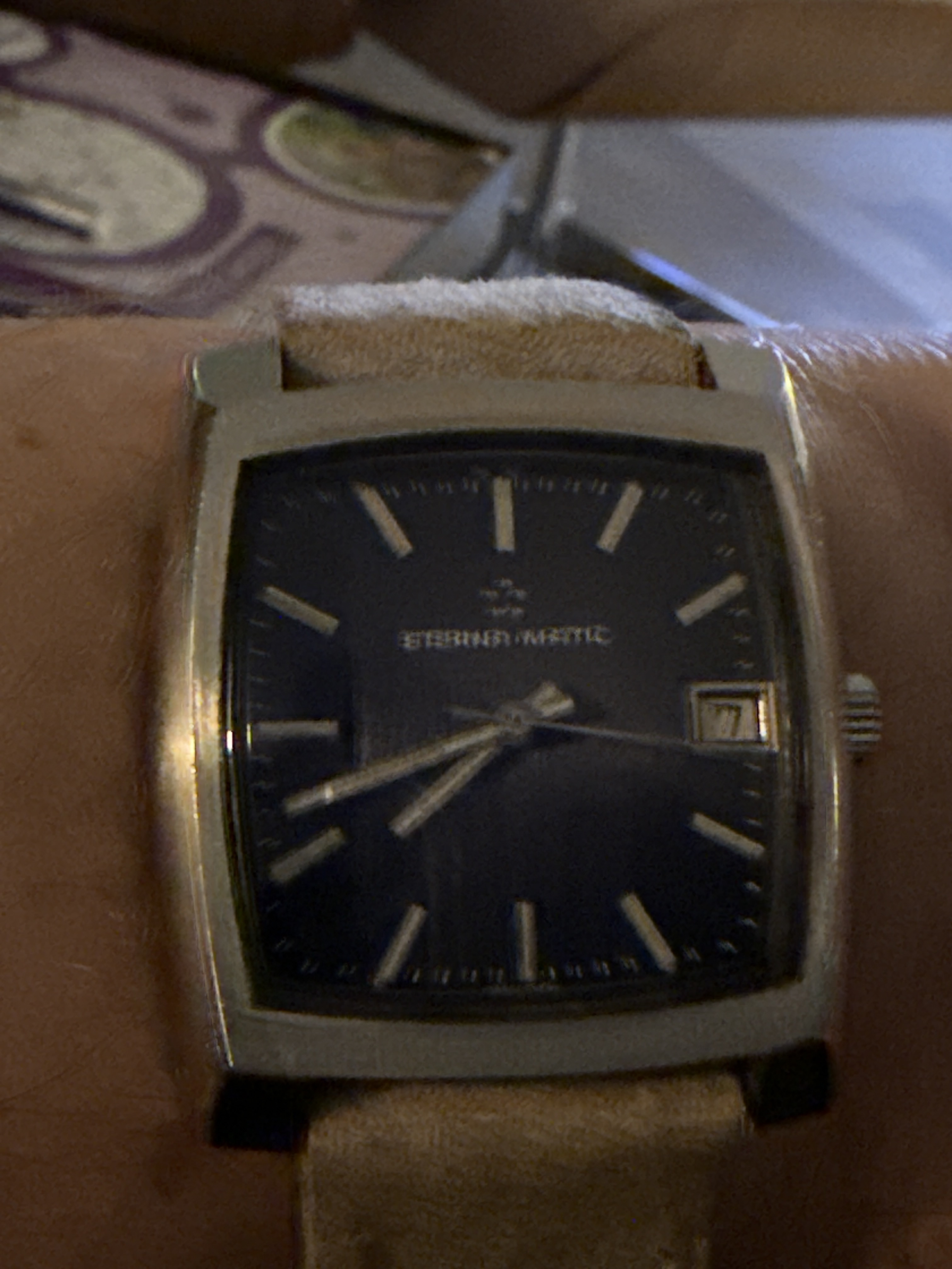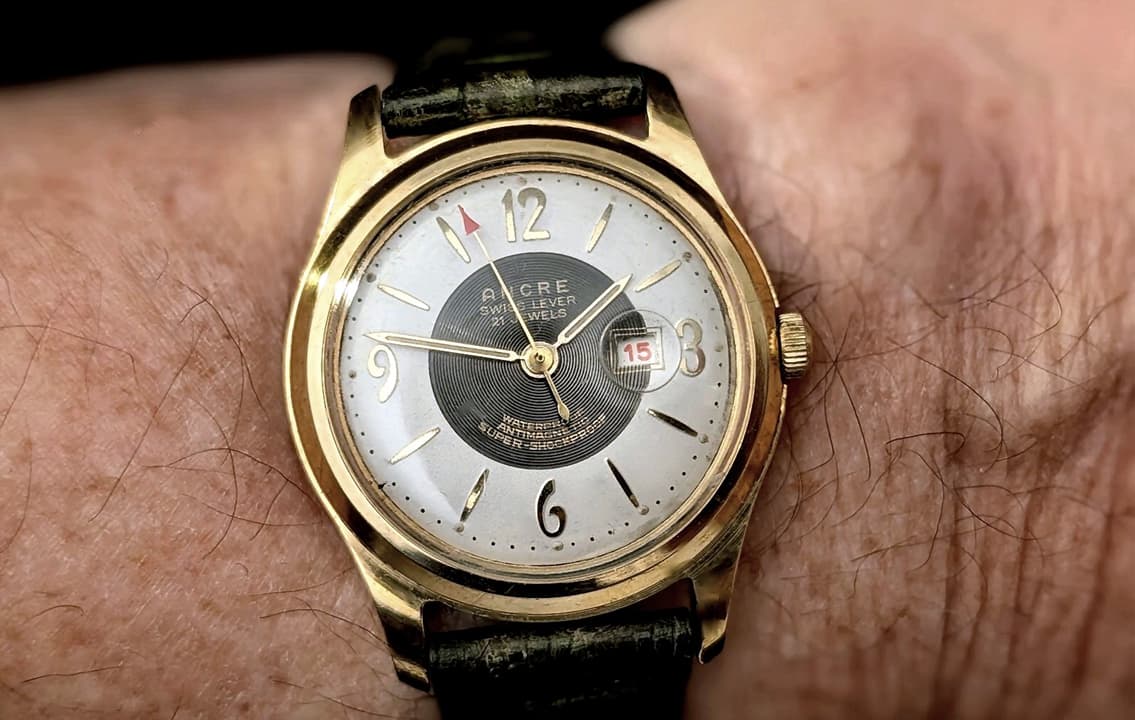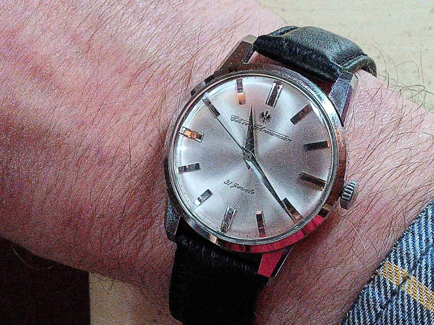 Wel een leuk jaren '50 ding. Datum staat verkeerd, want geen snelverzet en 23 dagen doordraaien ga ik niet doen bij zo’n oud uurwerkje.