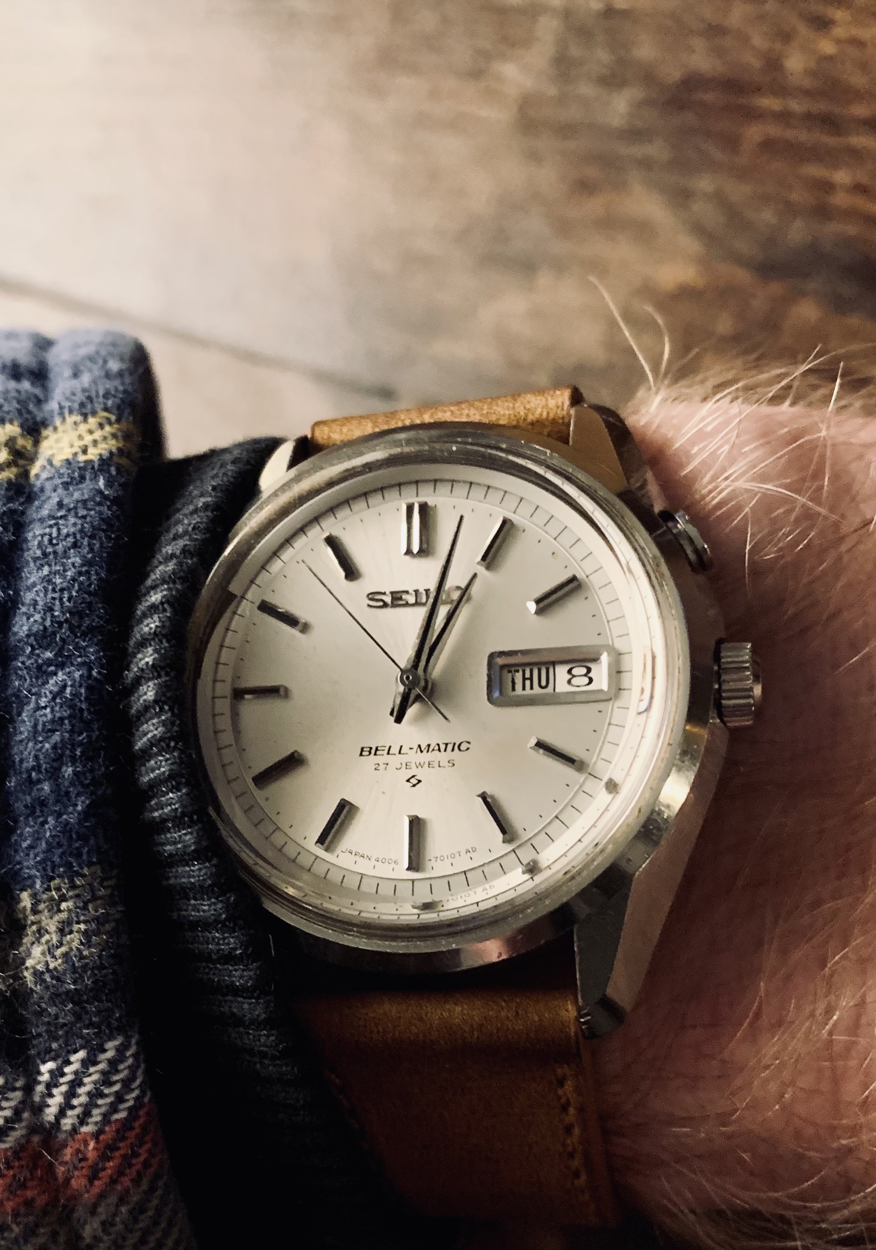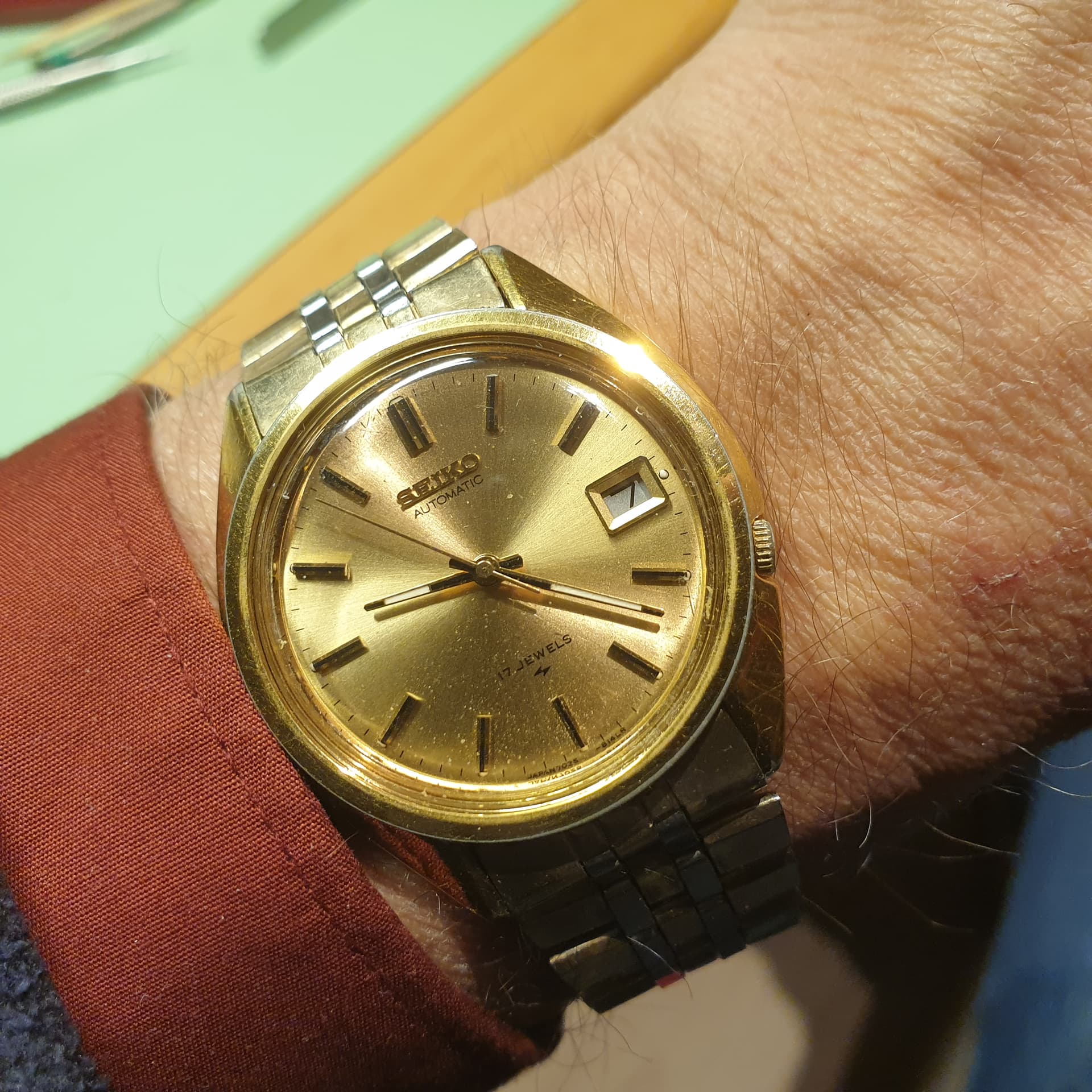 Gewisseld naar deze Seiko 7025, zonet helemaal opgeknapt. Nieuw glas, het oude was gebarsten en de wijzerplaat zat vol stof, bijna helemaal schoon kunnen krijgen. Mooi vintage geworden💛
