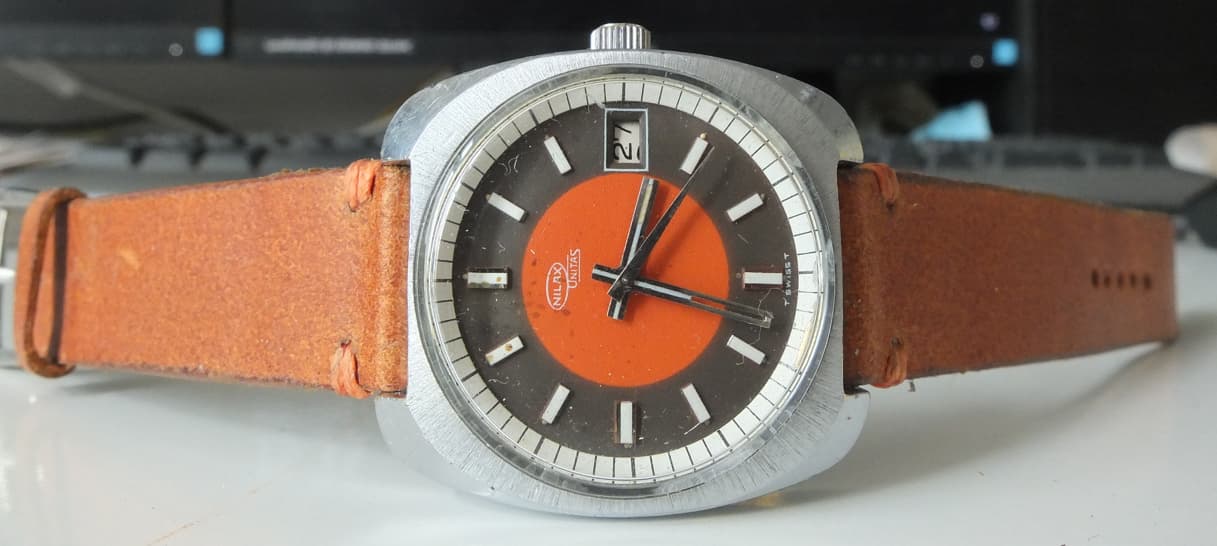 Nilax maakte trouwens wel vaker leuke horloges in combinatie met mooie Zwitserse uurwerken. Zoals deze van mij, qua design denk ik uit ongeveer dezelfde periode: