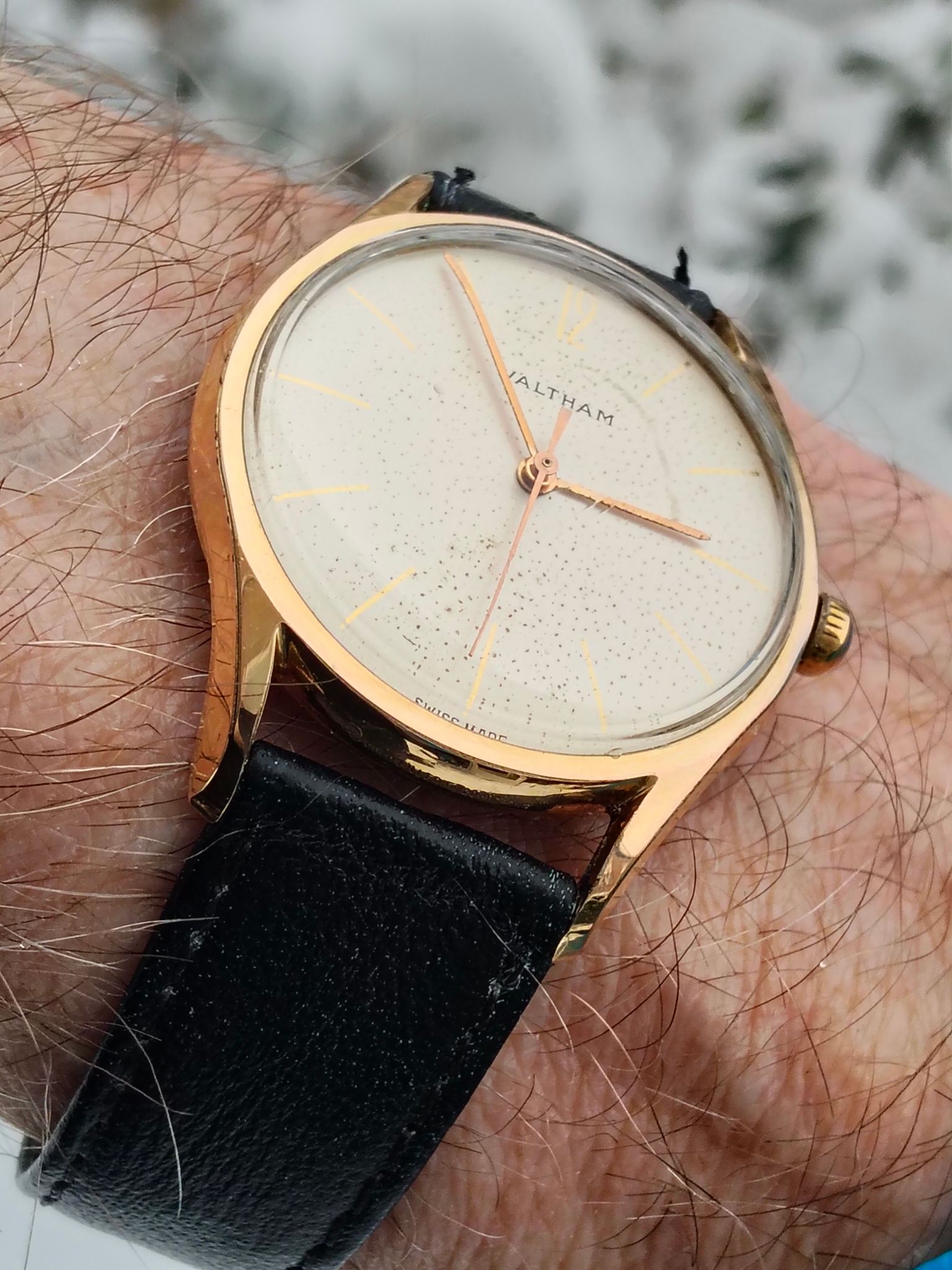 Het bandje is afgedragen, maar een schoonmaak deed al wonderen, evenals nieuwe bandpennen. Bruin leer is waarschijnlijk wel mooier.