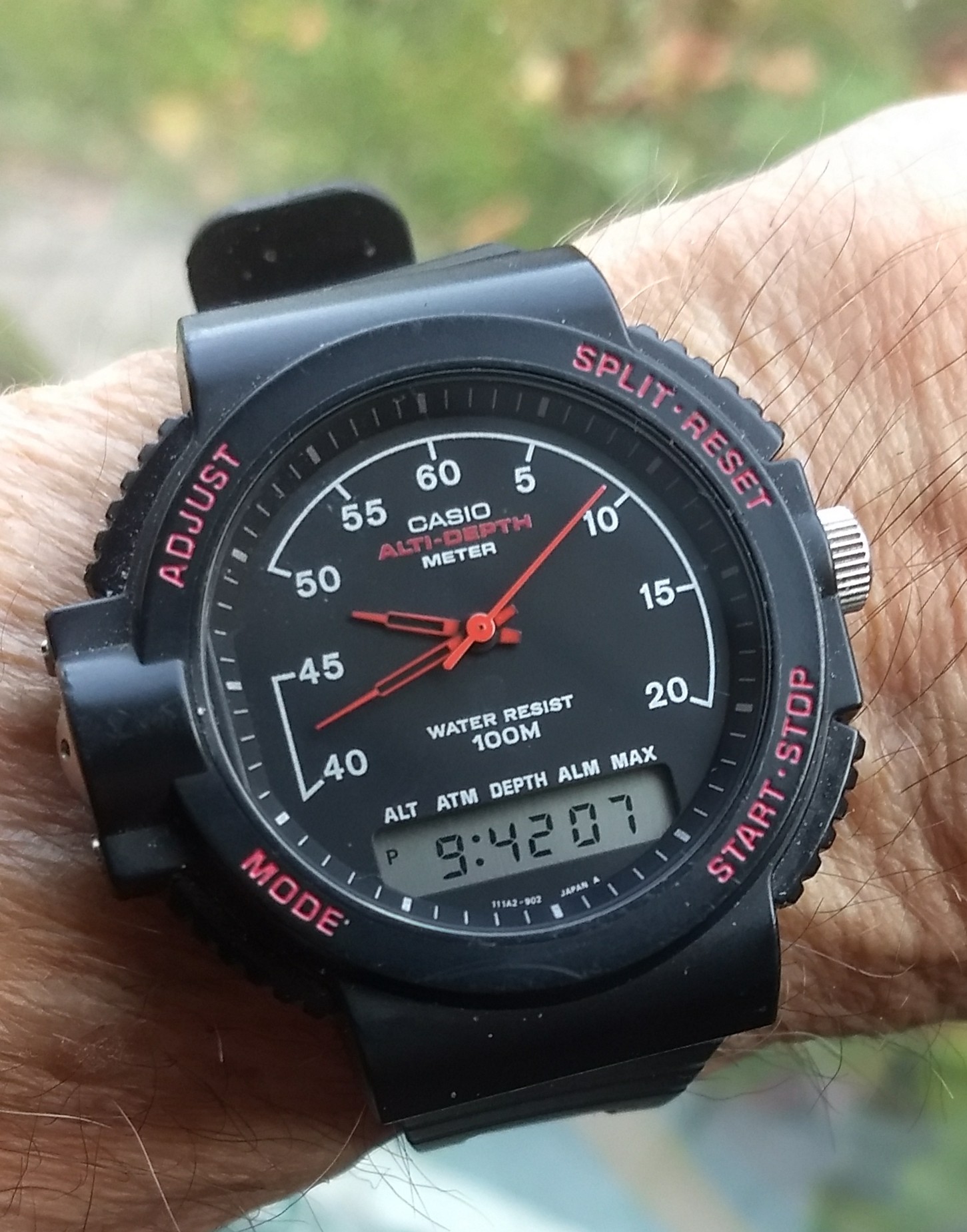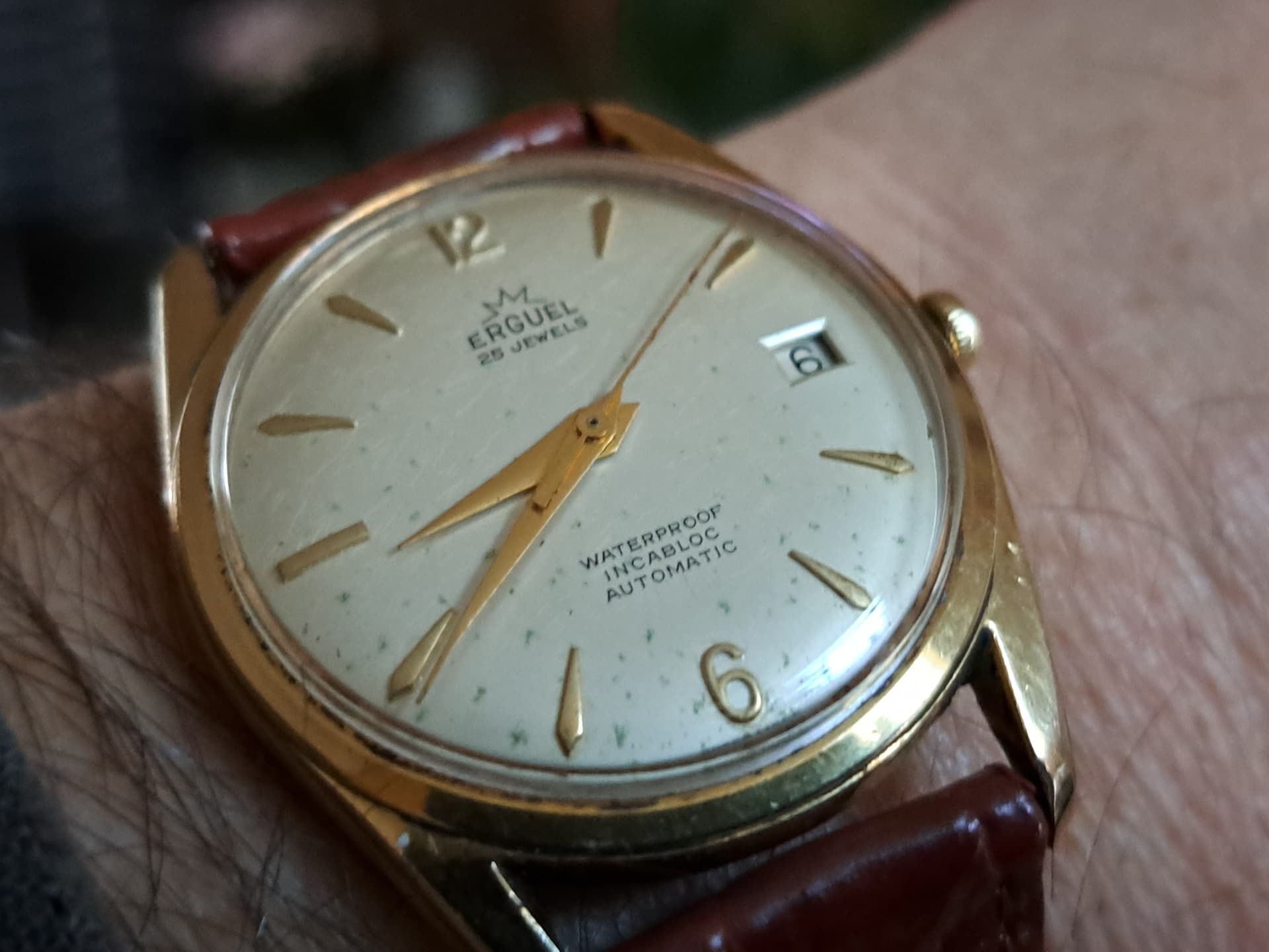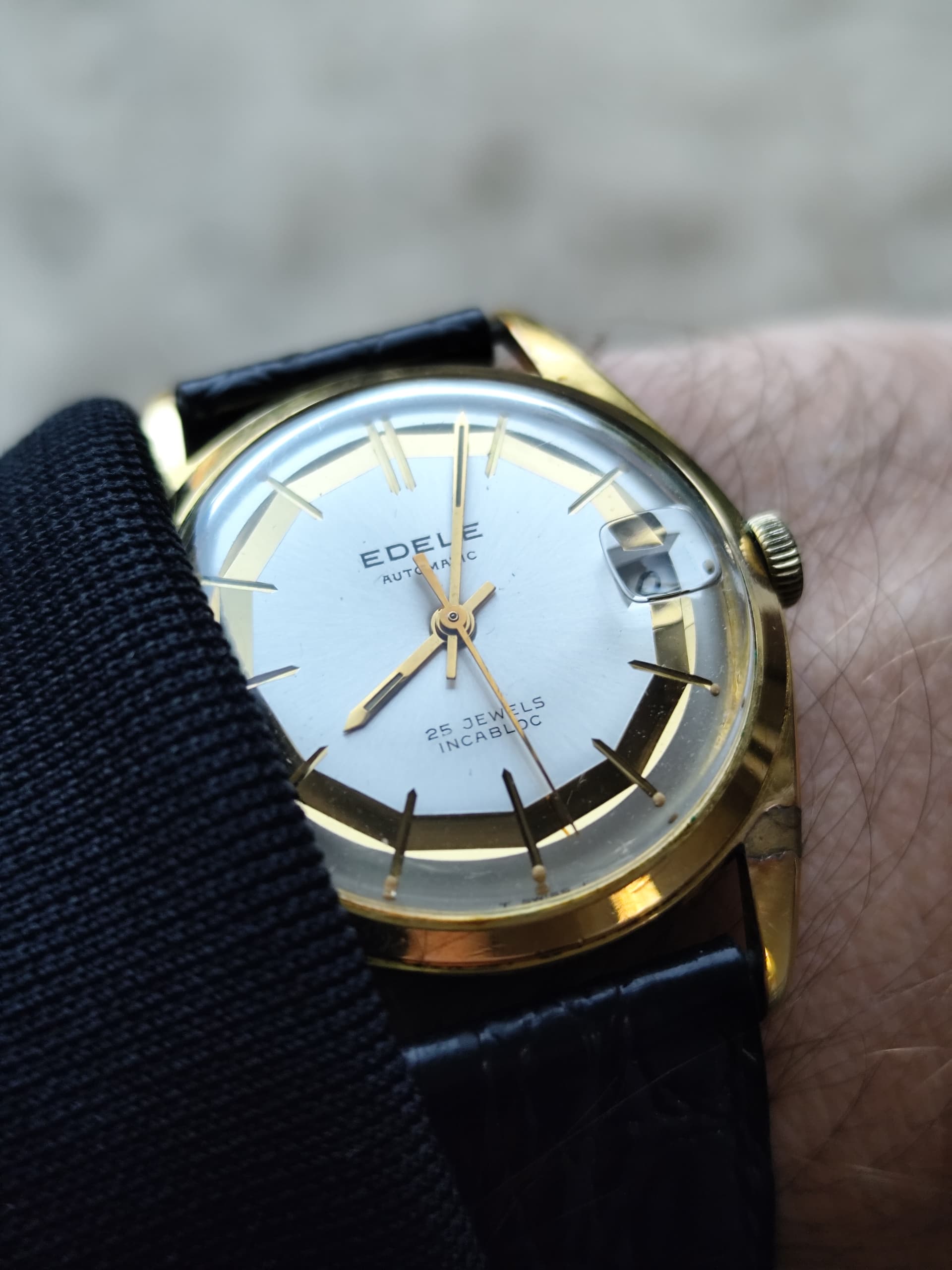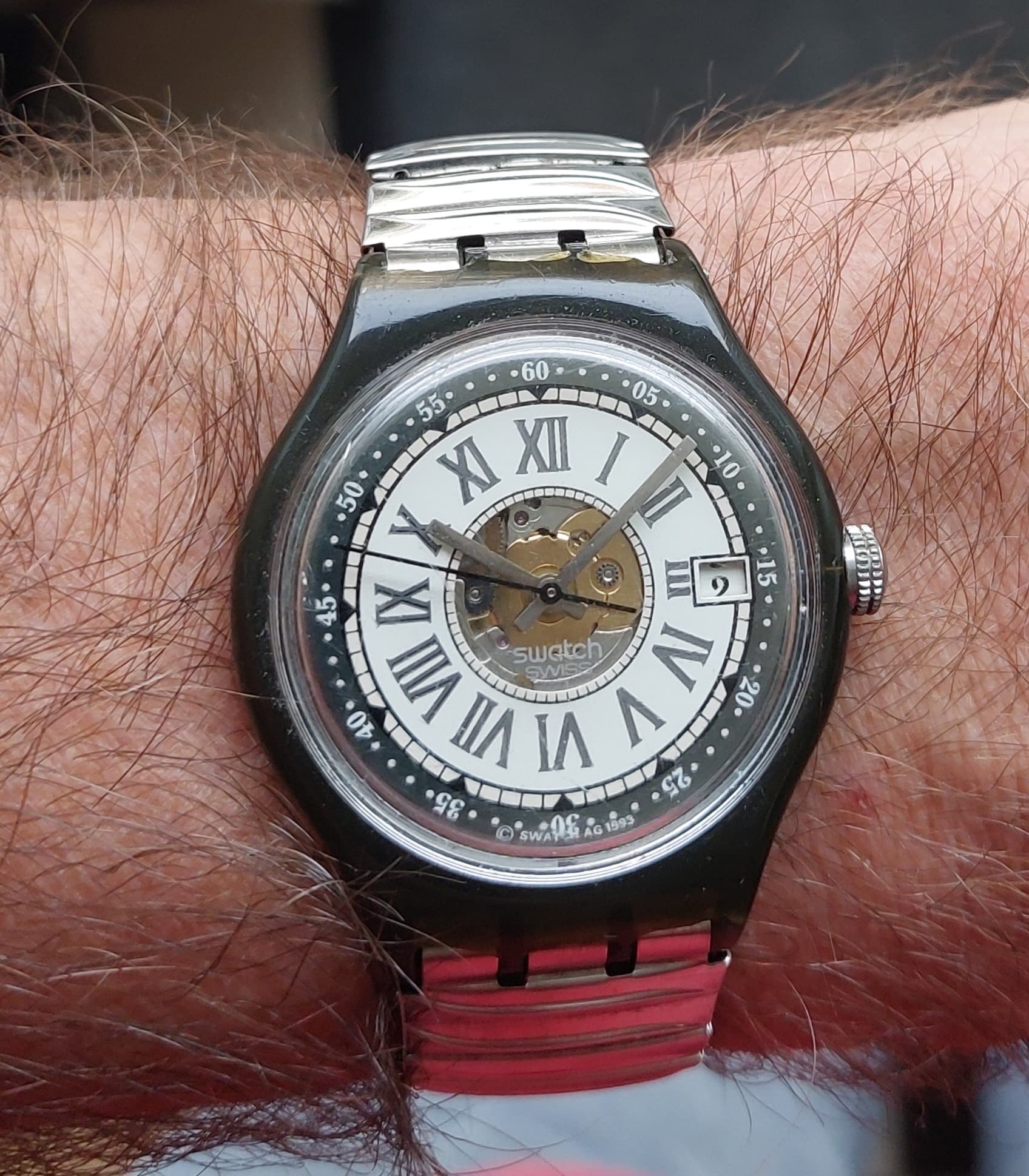 Ik vind het storend dat de ring met Romeinse cjjfers niet netjes uitgelijnd is met de ring daarbuiten. De 2 staat bv niet precies tegenover het zwarte driehoekje van de 10 minuten en de 3 staat iets te hoog t.o.v. het datumvenster. En ik houd niet zo van Romeinse cijfers. Duidelijk niet mijn lievelingshorloge… ![]()