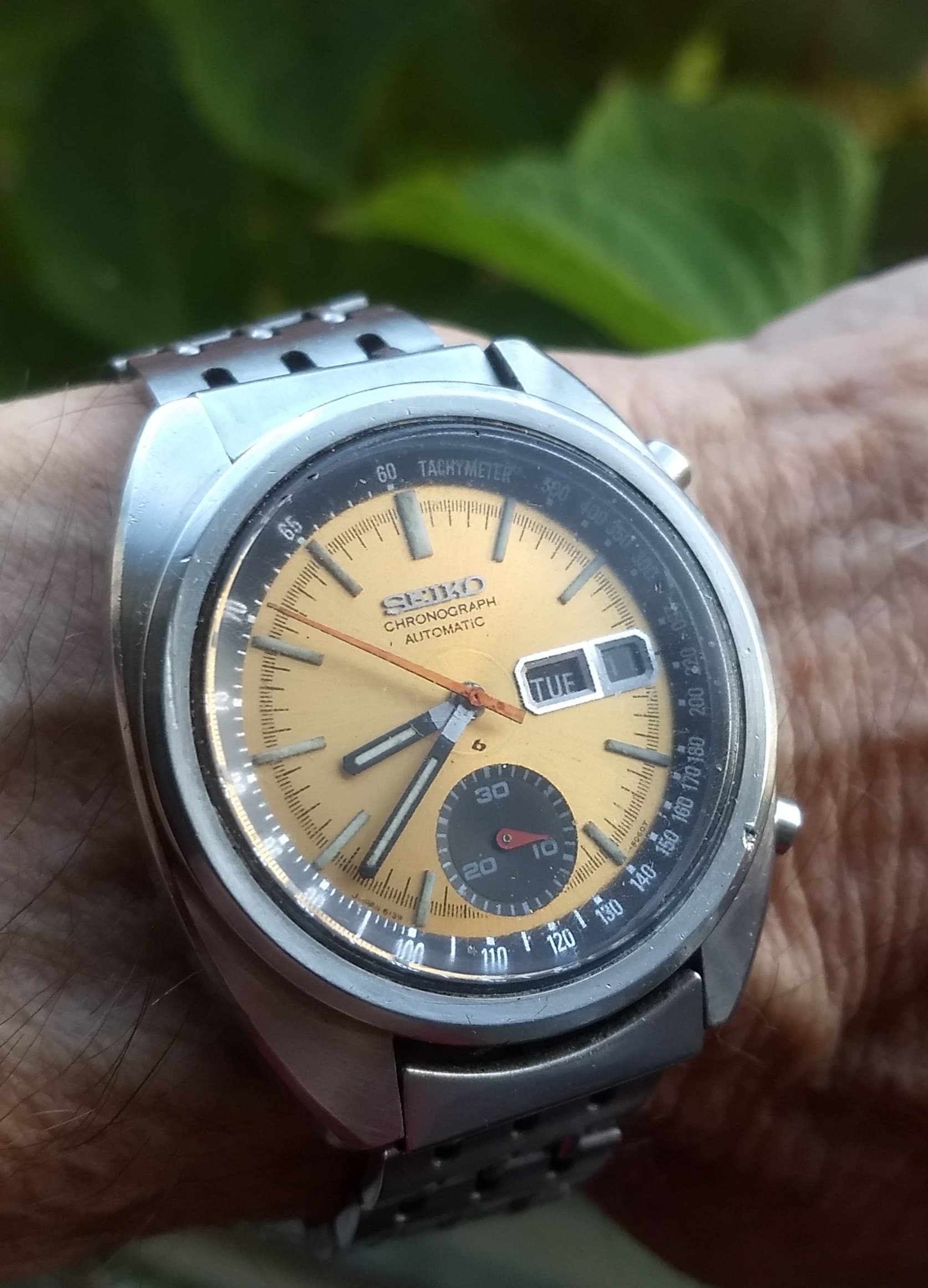 Deze aparte Commander zie je niet veel. Hele aparte honingraad wijzerplaat, al naar gelang de lichtval. De cointbezel lijkt sleets maar is 100%. Zit een vroege ETA binnenin.