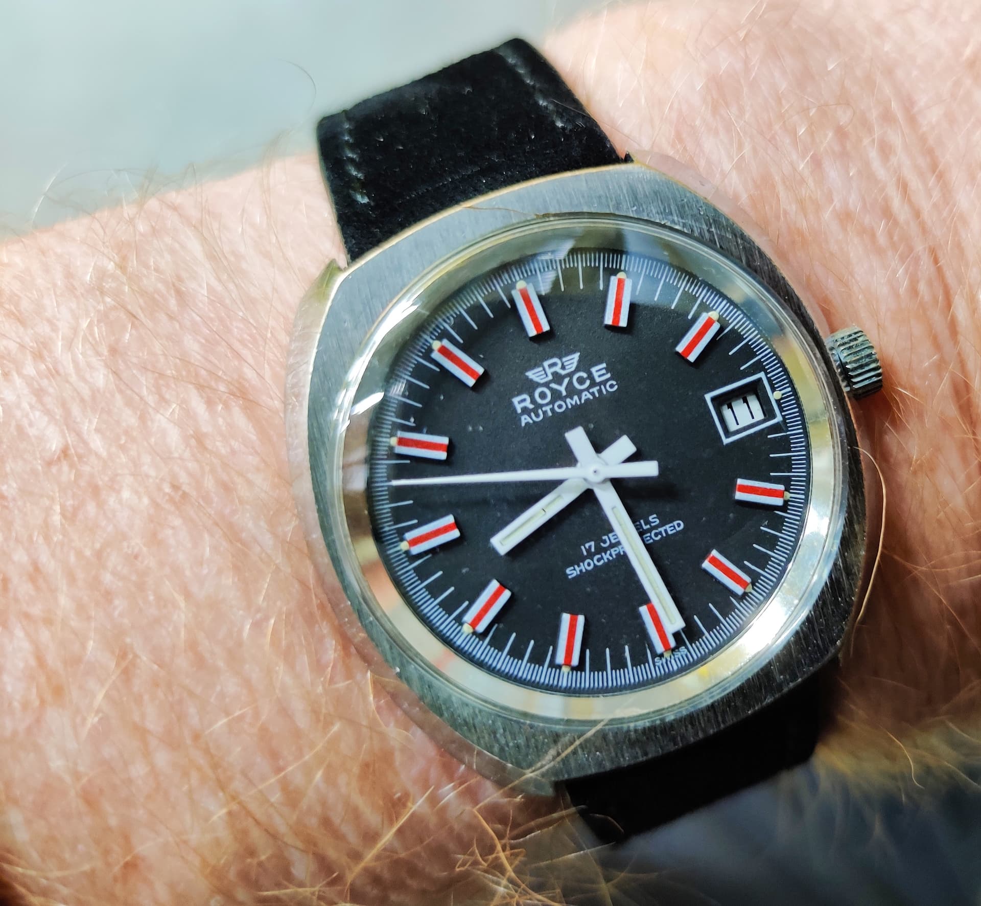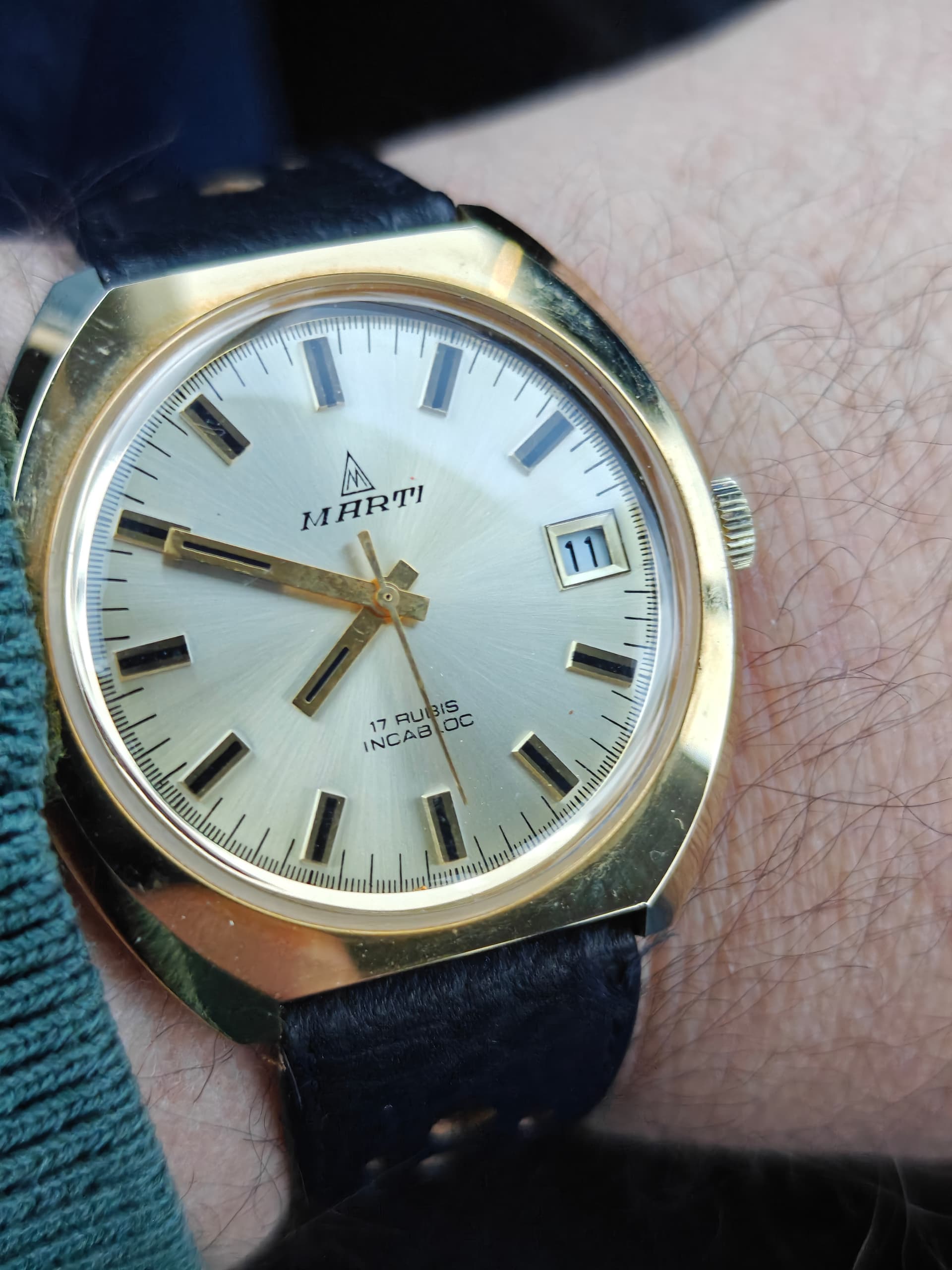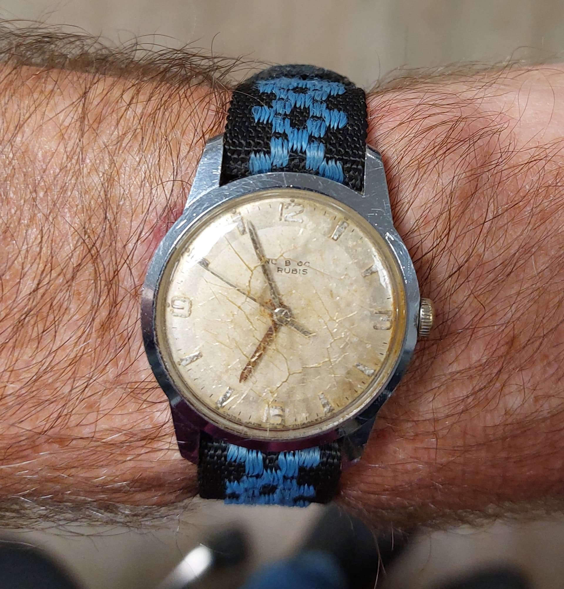 Het geborduurde bandje is een stukje Oosteuropese huisvlijt en zat ooit bij een Wostok die via Etsy in Polen had gekocht. Ik vond het zonde om het weg te gooien en vond het wel goed tot zijn recht komen bij dit horloge .