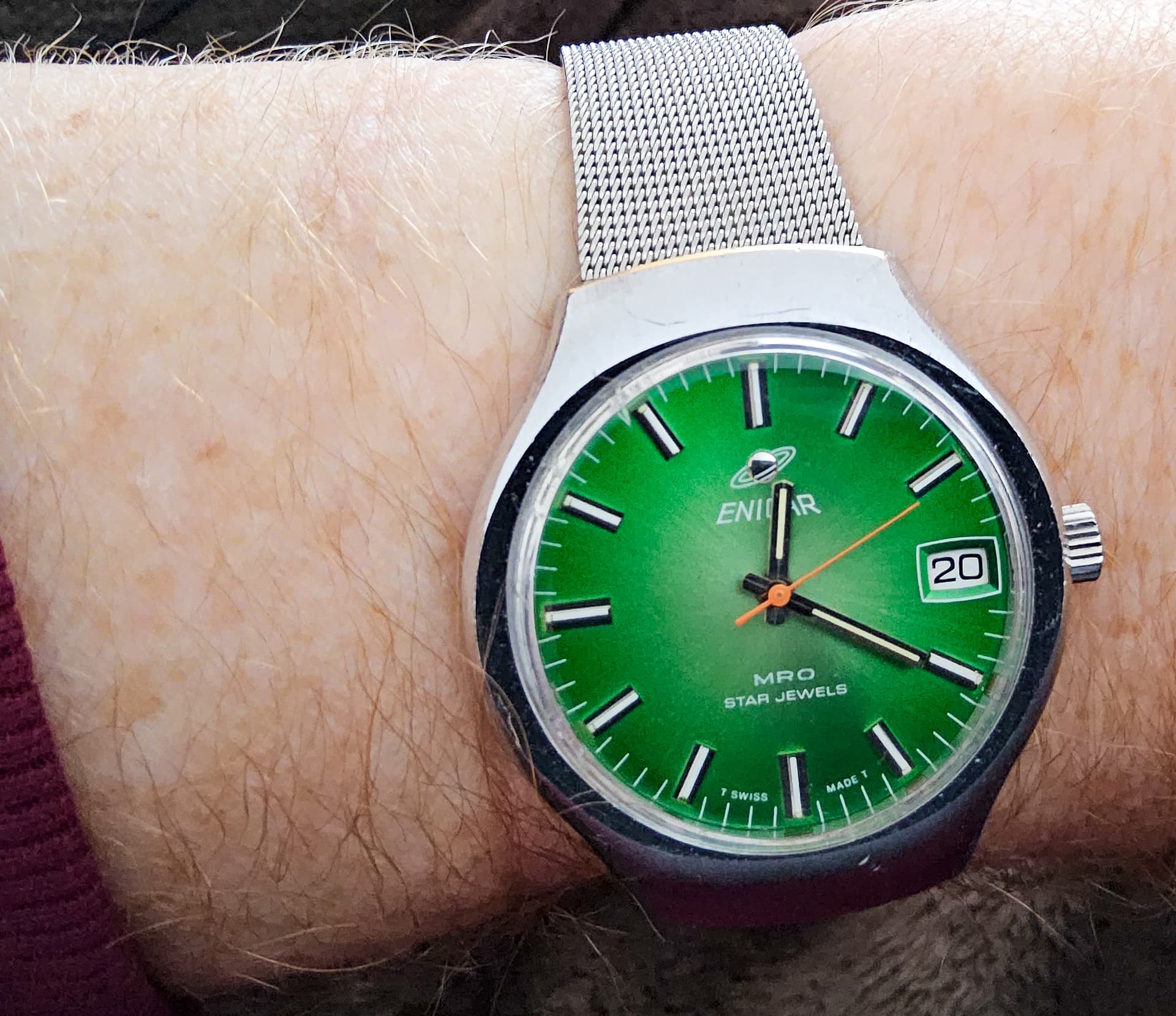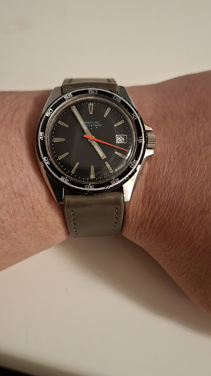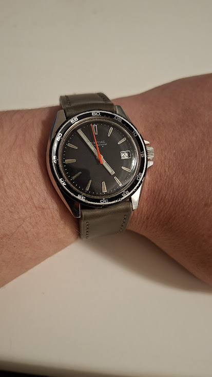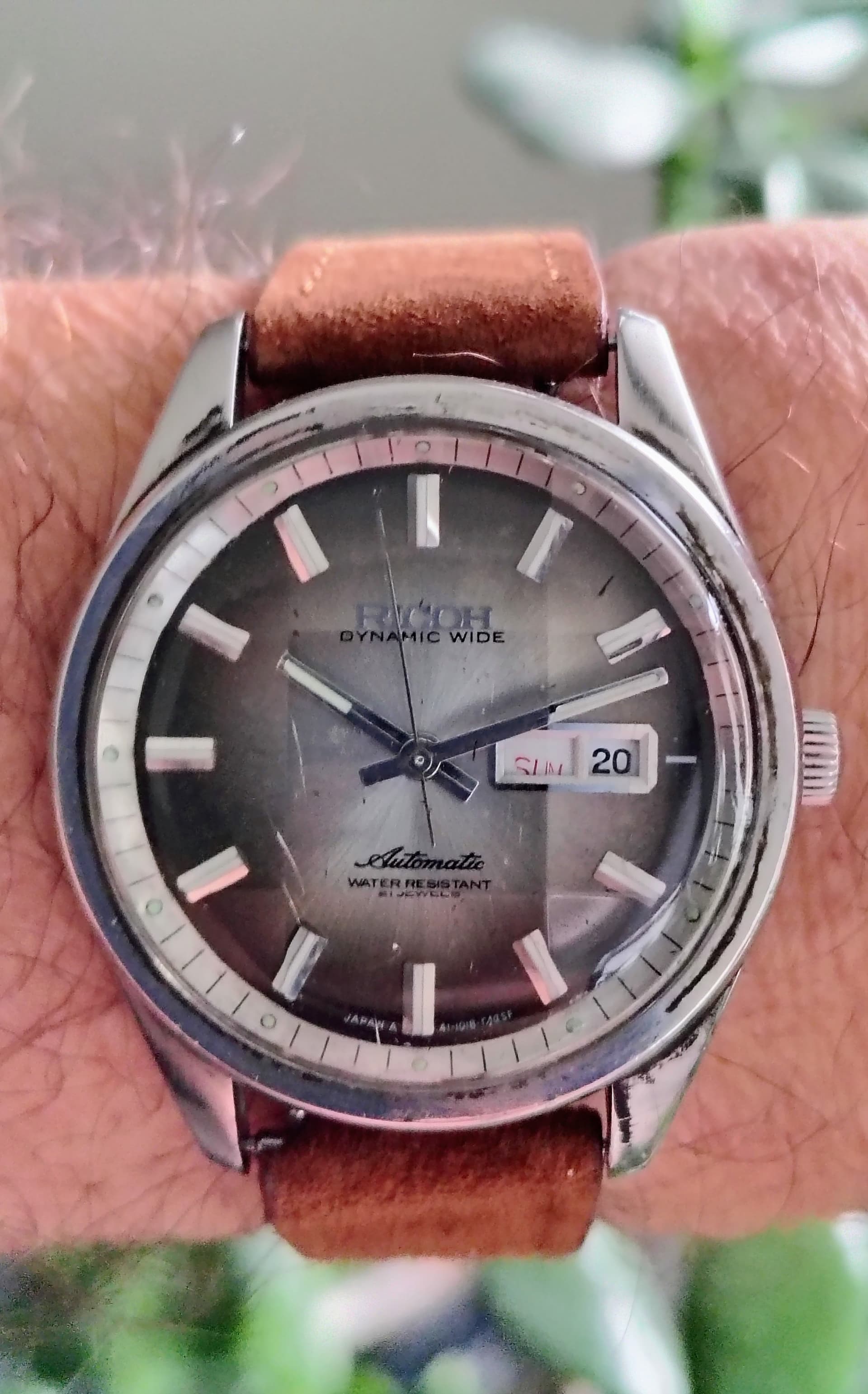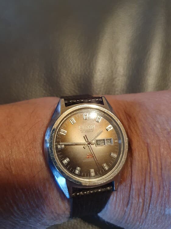 Belofte maakt schuld, dus vandaag mijn Ricoh automatic uit 1970 om de pols. Zou genezend werken zei @Dutchspur (Petro). Was wel lastig om op te winden met mijn worstenvingers, maar is gelukt ![]()