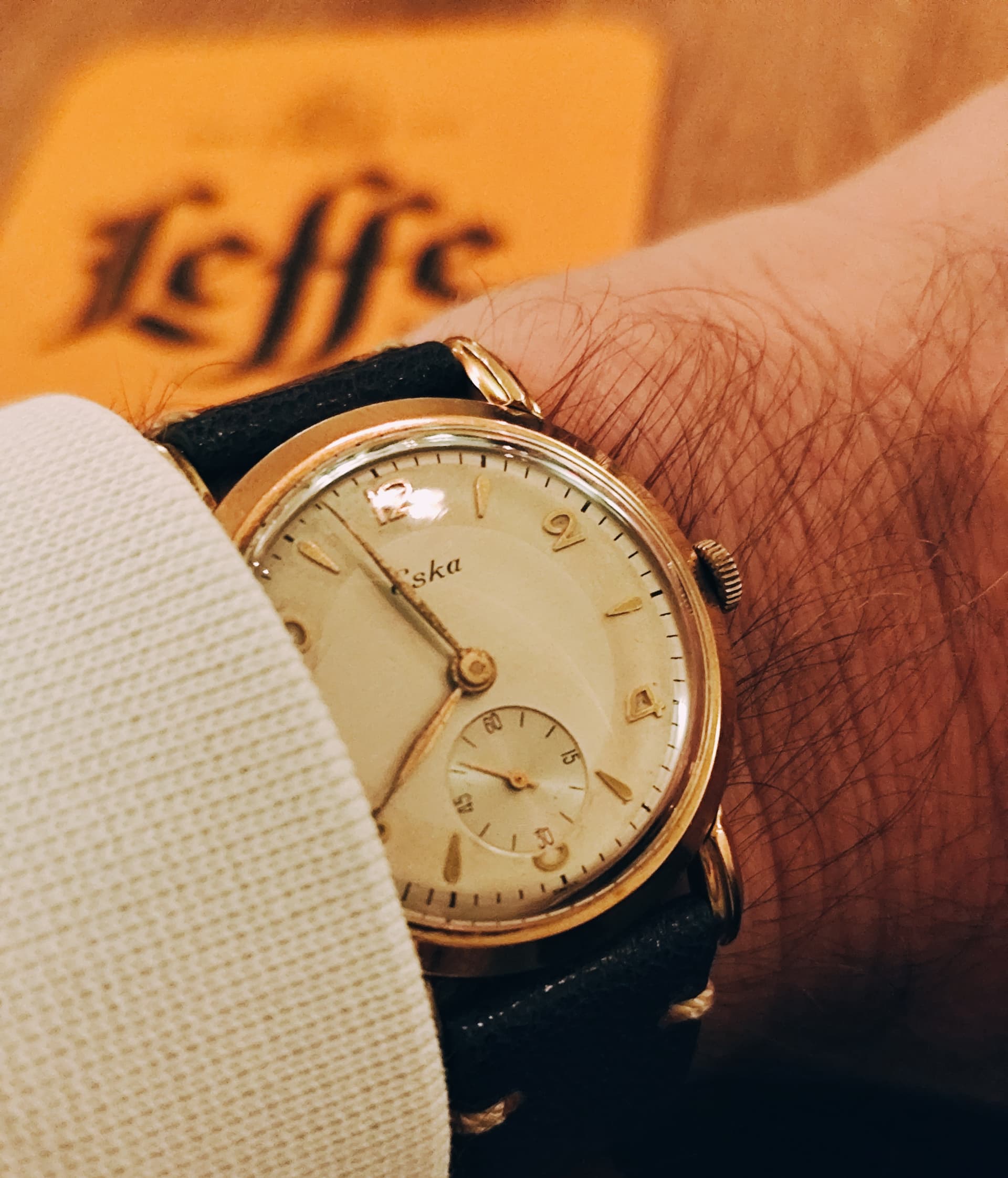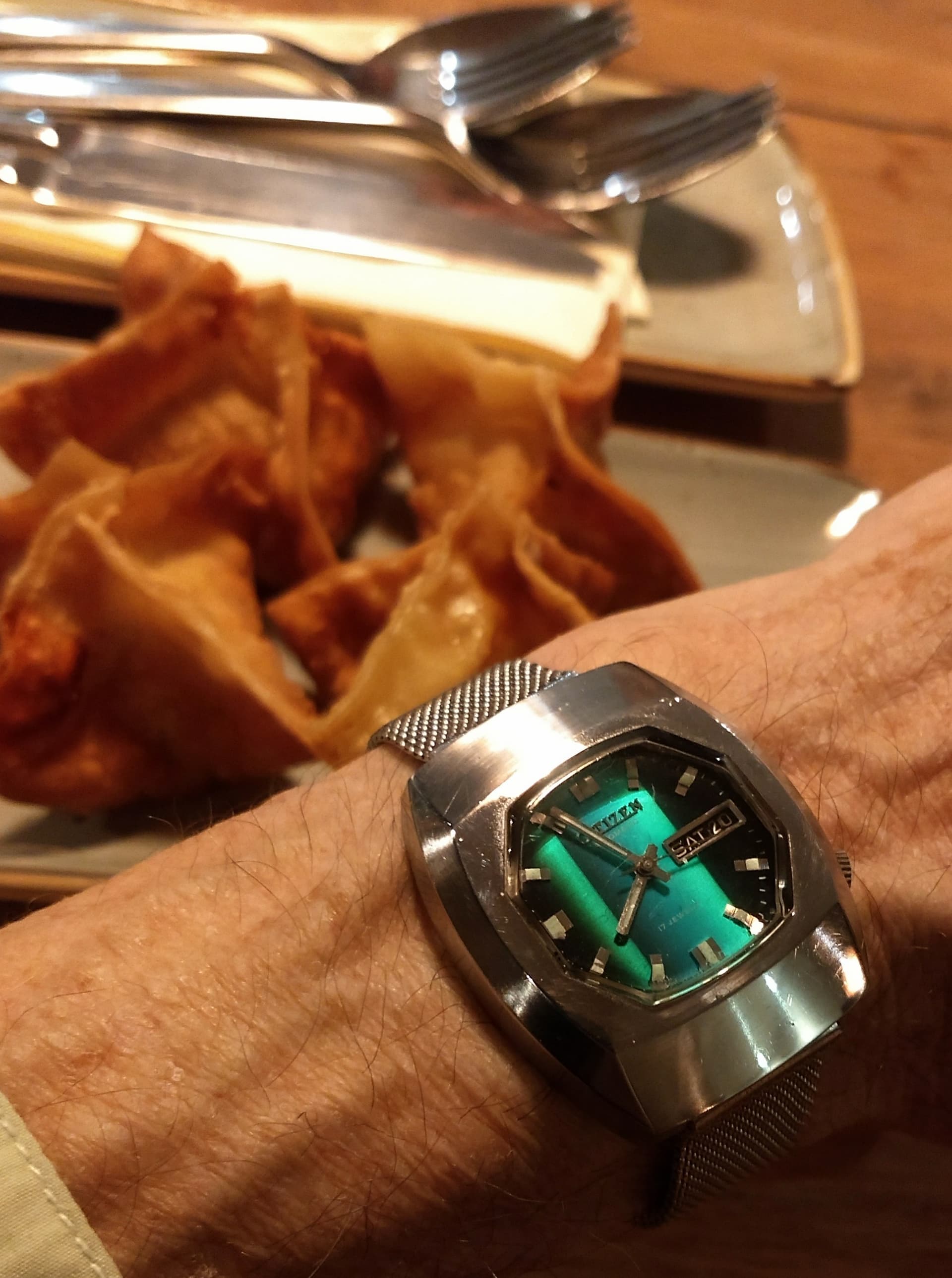 Datum snel verzet, en normaal staat het uurwerk ook stil na een (2e klik) handopwinden en tijd instellen werkt.