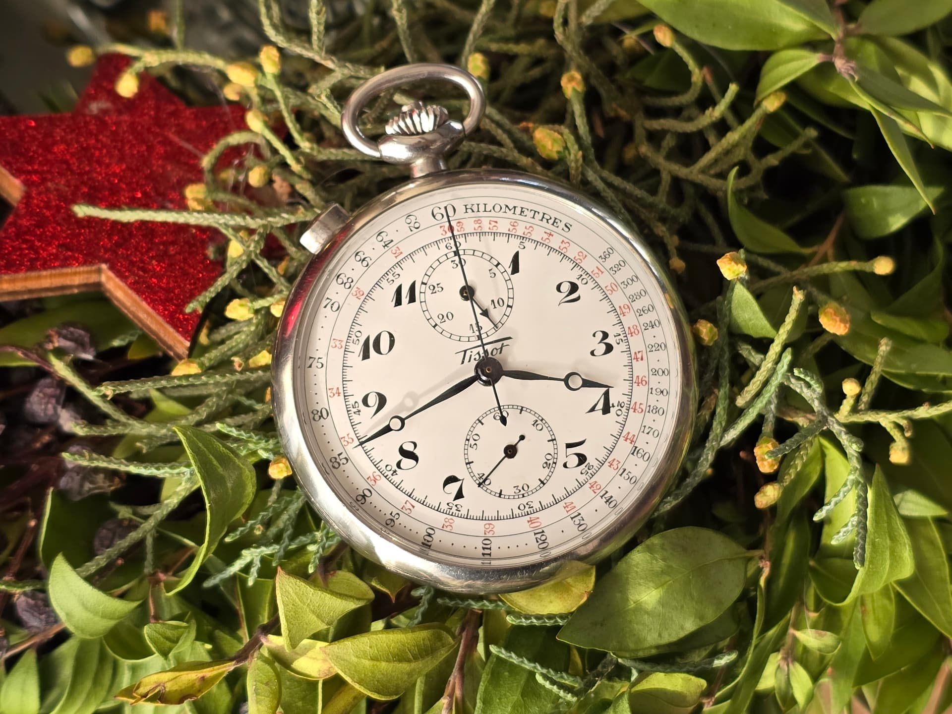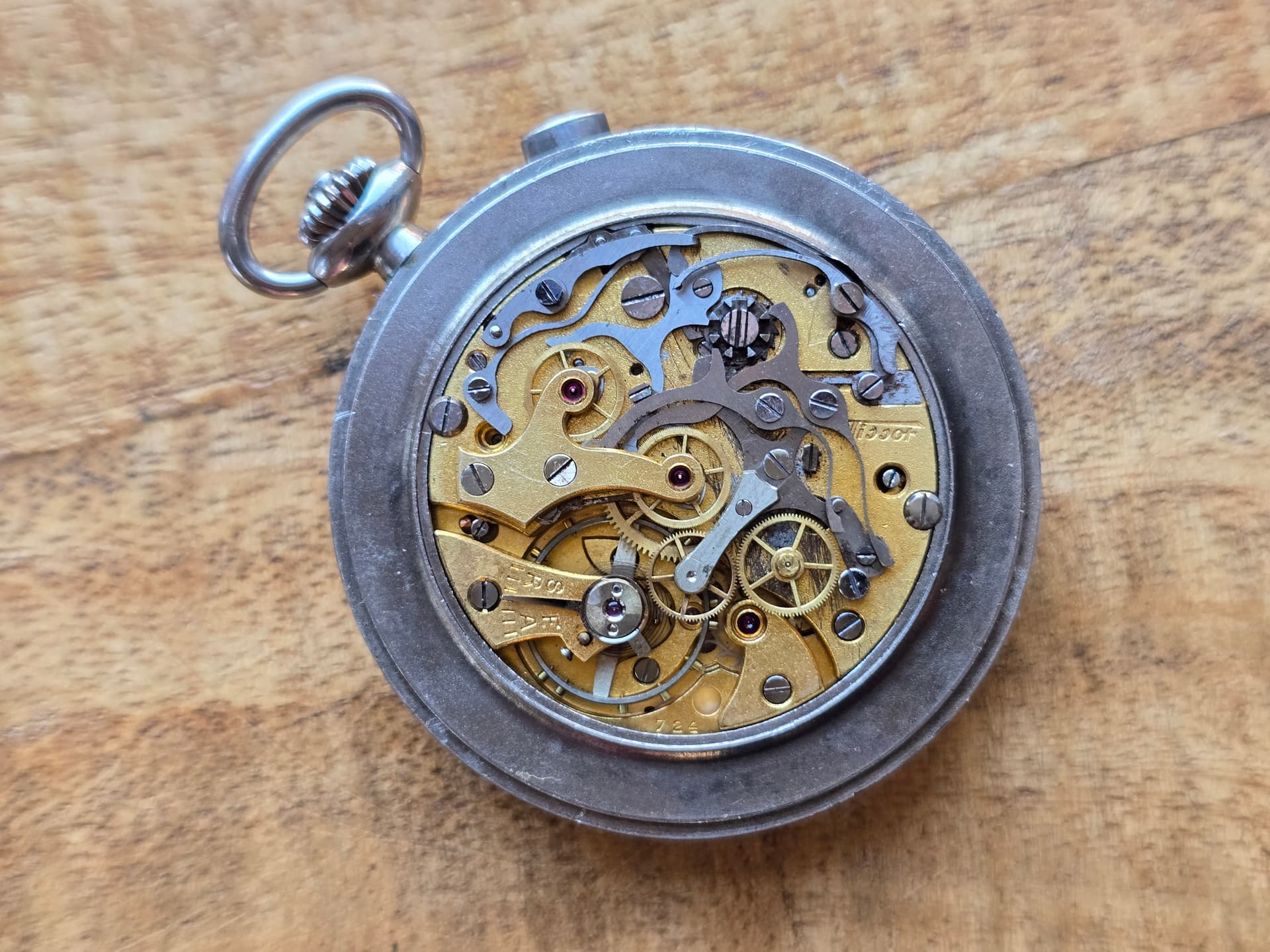 Nieuwe aanwinst. Lot zakhorloges gekocht omdat ik daarin dit pareltje had gezien, een Tissot zakchronograaf met Staybrite kast en een Lemania 15CHT / Tissot 33.3 kaliber aan boord.