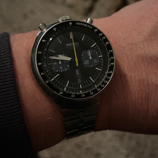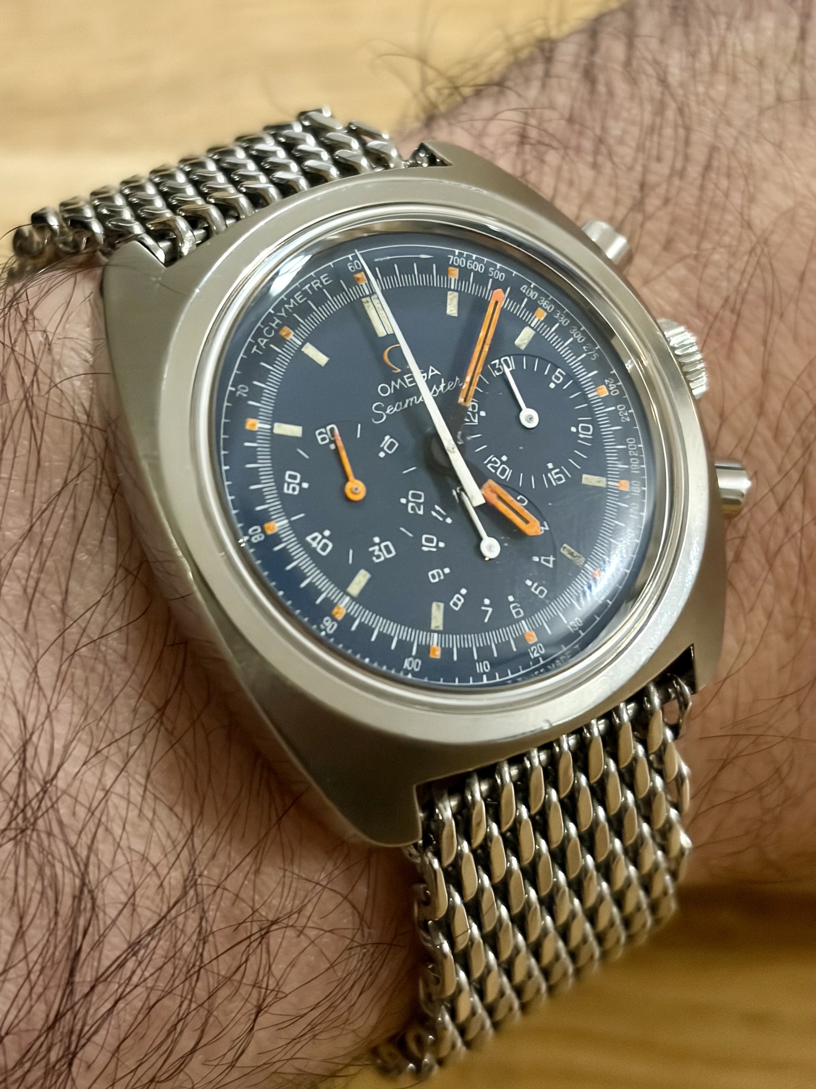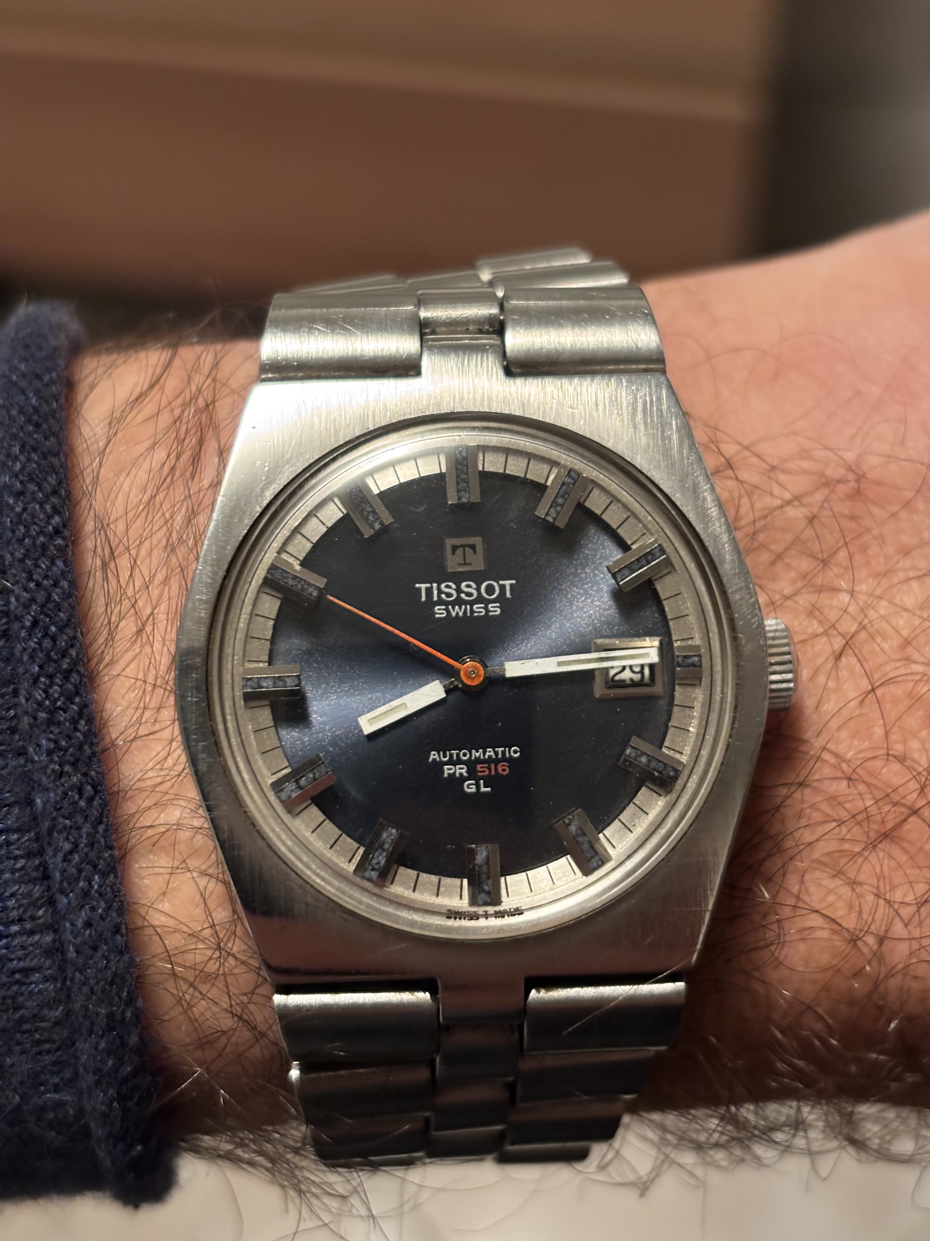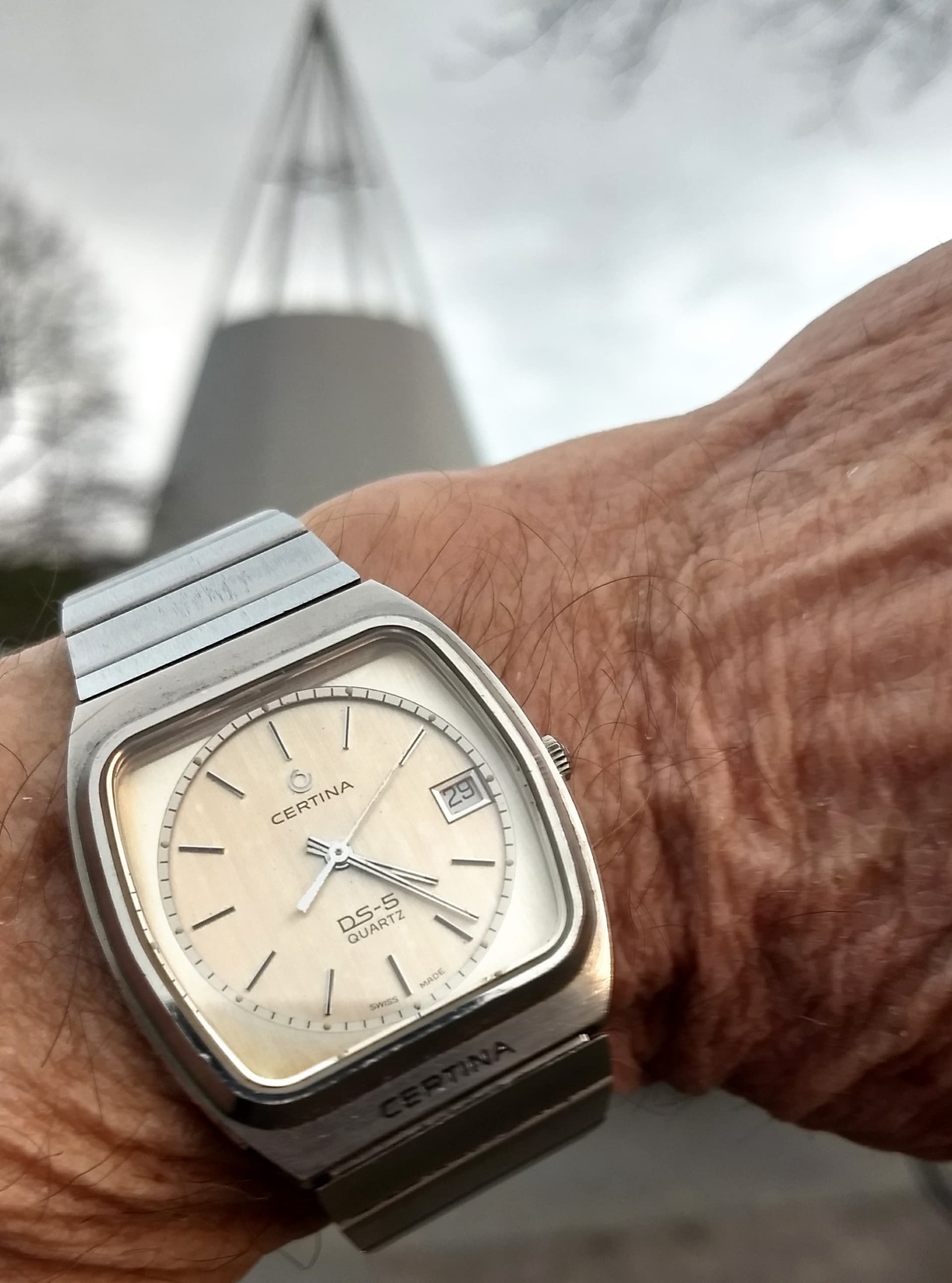 Het lijkt net de TV-kast van mijn grootouders, maar met meer kleur op de dial, dan zij ooit op hun TV-scherm konden zien. Hij kwam op 18mm, maar 20 past makkelijk. De Timegrapher is overtuigend, het uurwerk is prima. Glaasje polijsten ga ik nog doen.