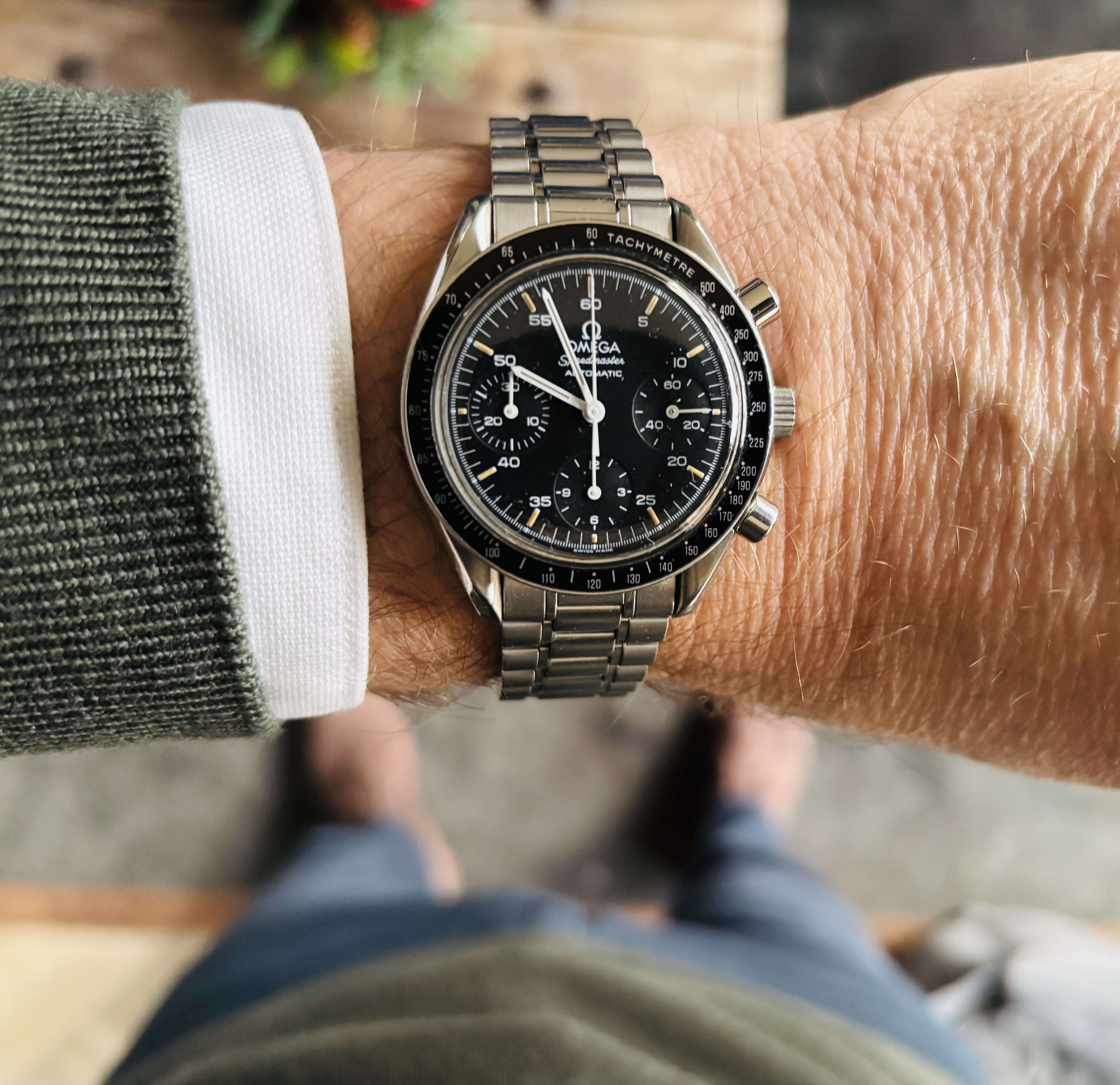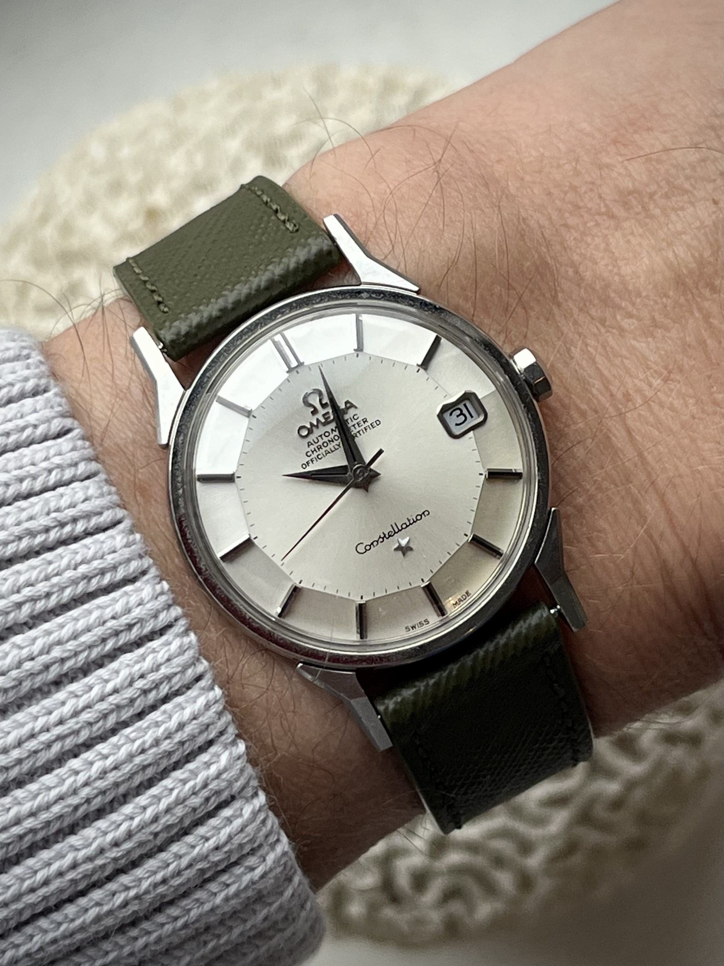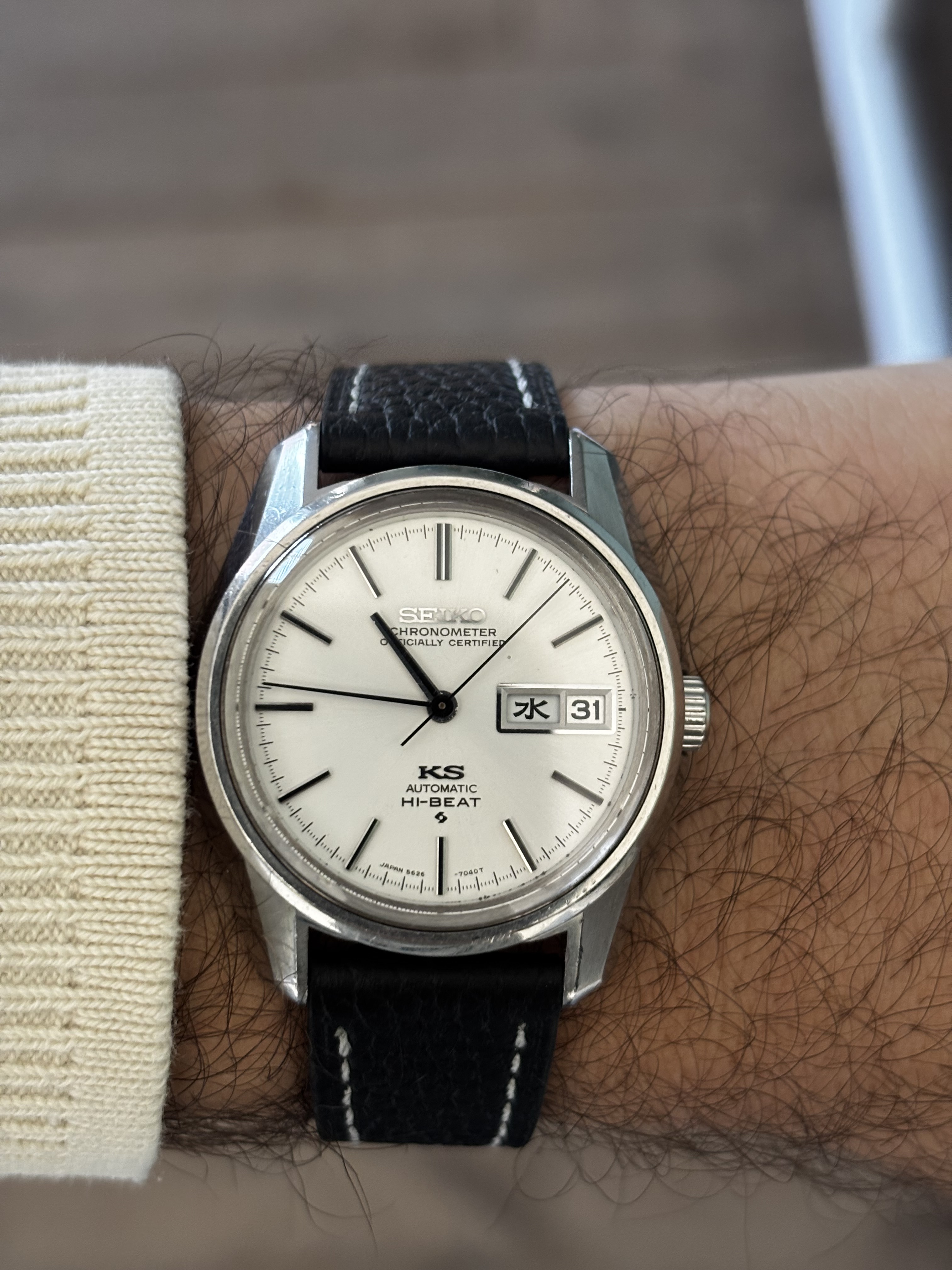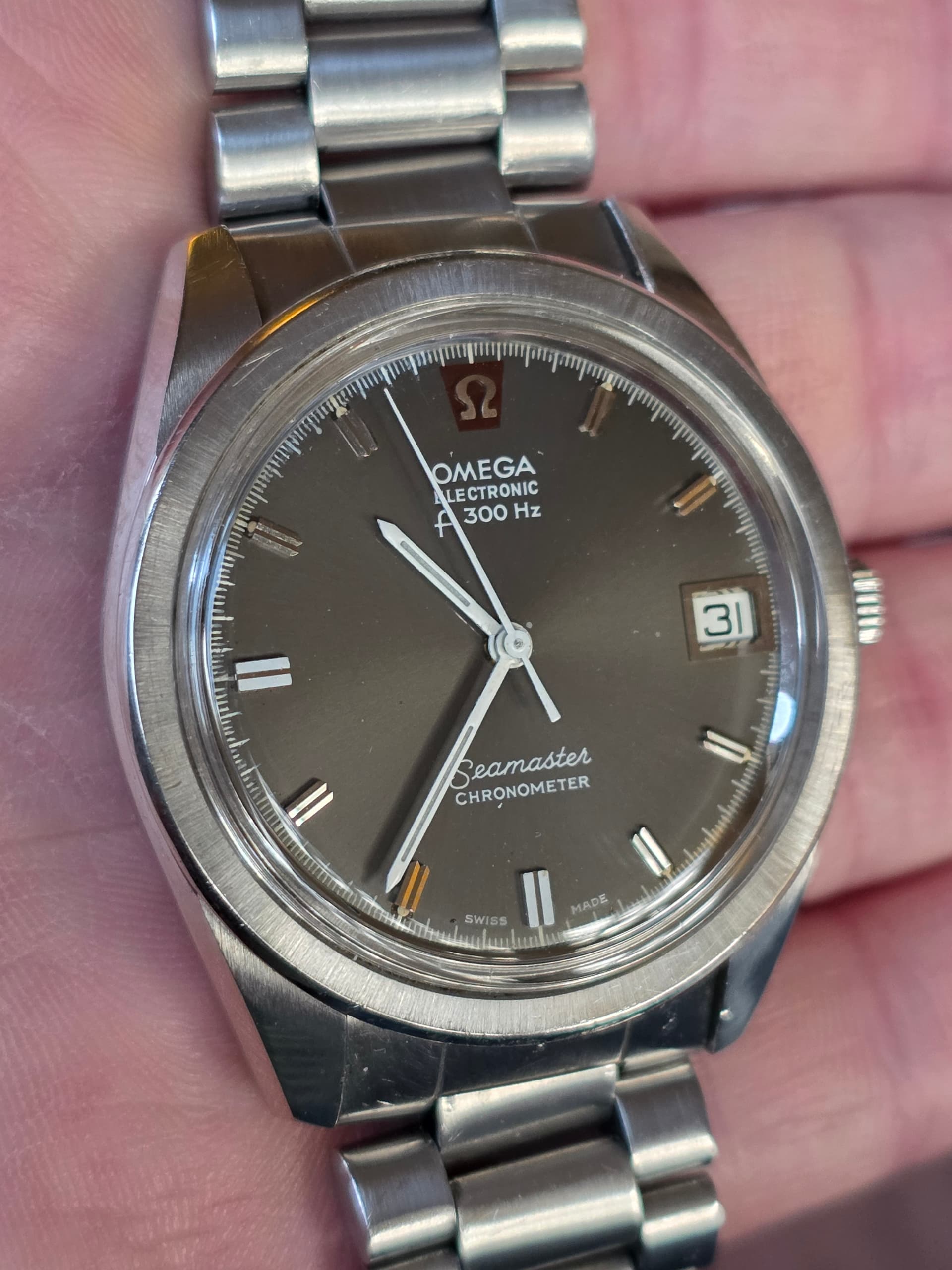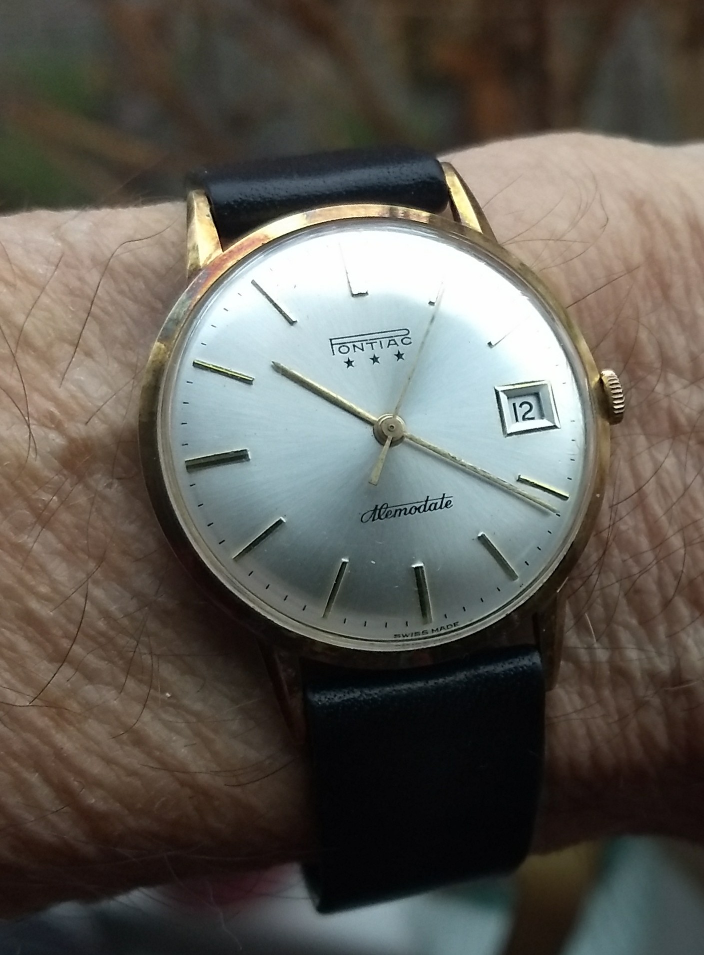 Hij wilde dit horloge eigenlijk niet omdat het geen quartz was. Hij heeft het dan ook nog geen 10 keer gedragen. Het bandje was helemaal uit elkaar gevallen en ik heb er vlug deze aan gezet, maar er moet nog een ander aan komen zonder metseltouwtjes ![]()