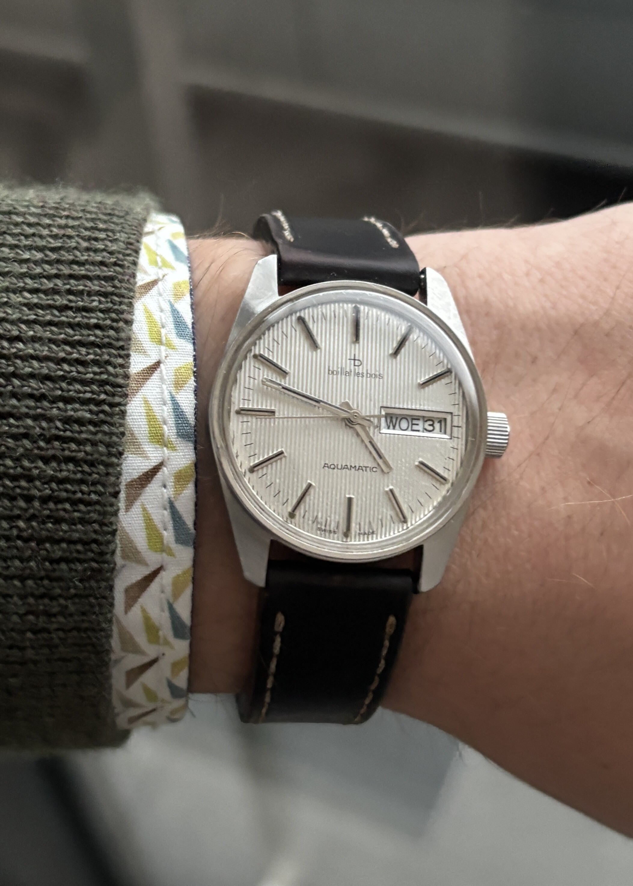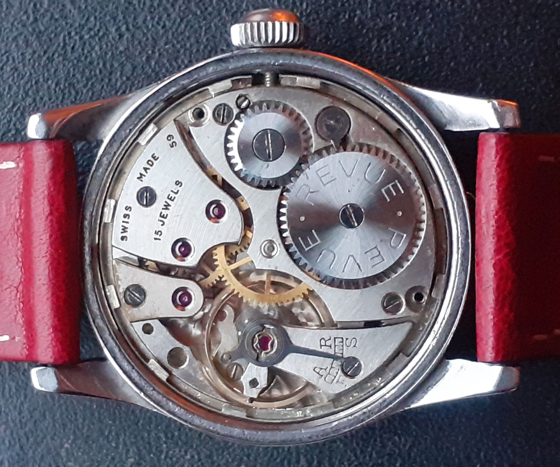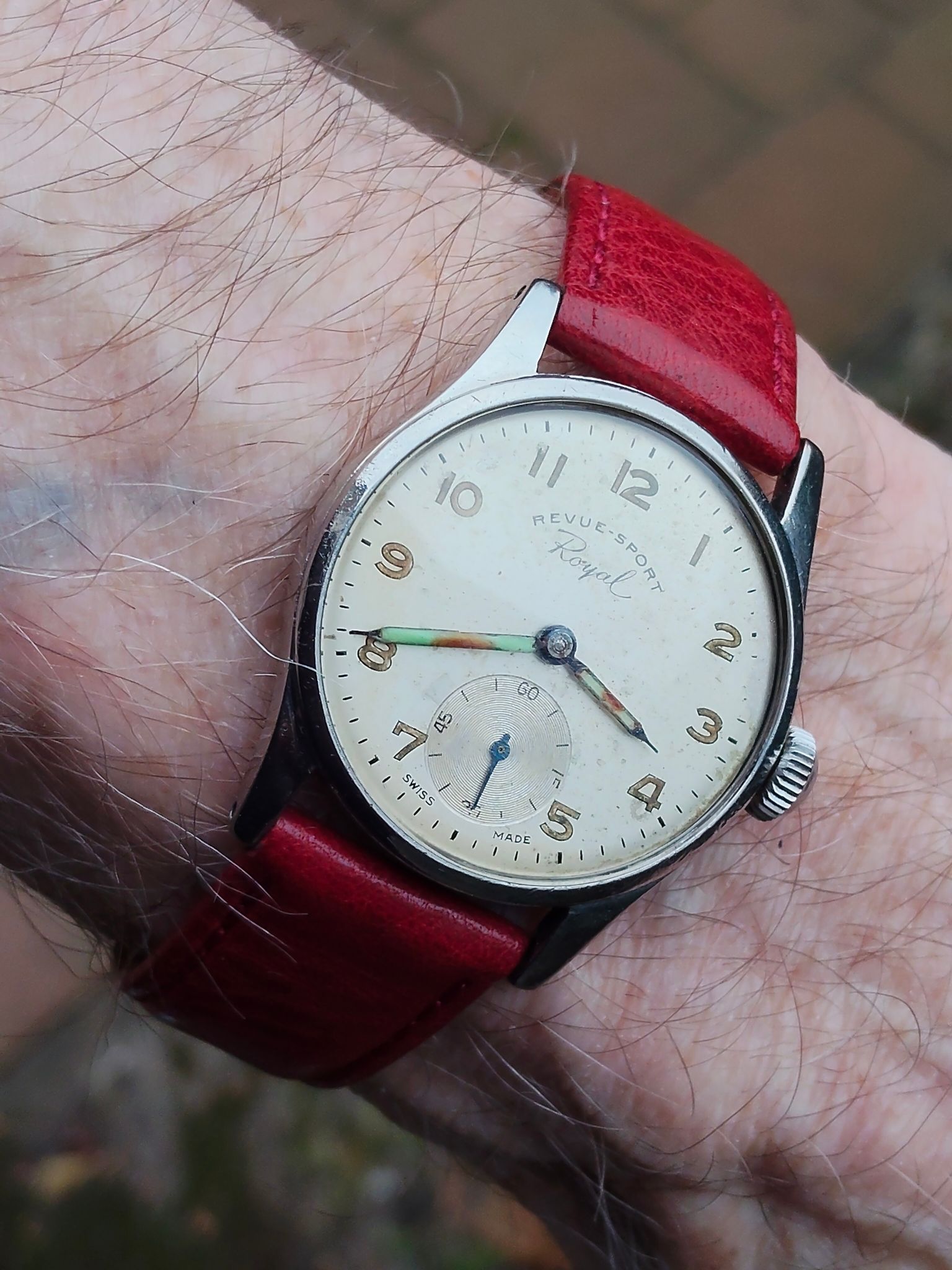 Vandaag draag ik een Revue Sport, waarschijnlijk uit de jaren ’50. Een mooi ingetogen horloge met een rustige wijzerplaat, opgelegde cijfers en een fraaie kleine seconde.