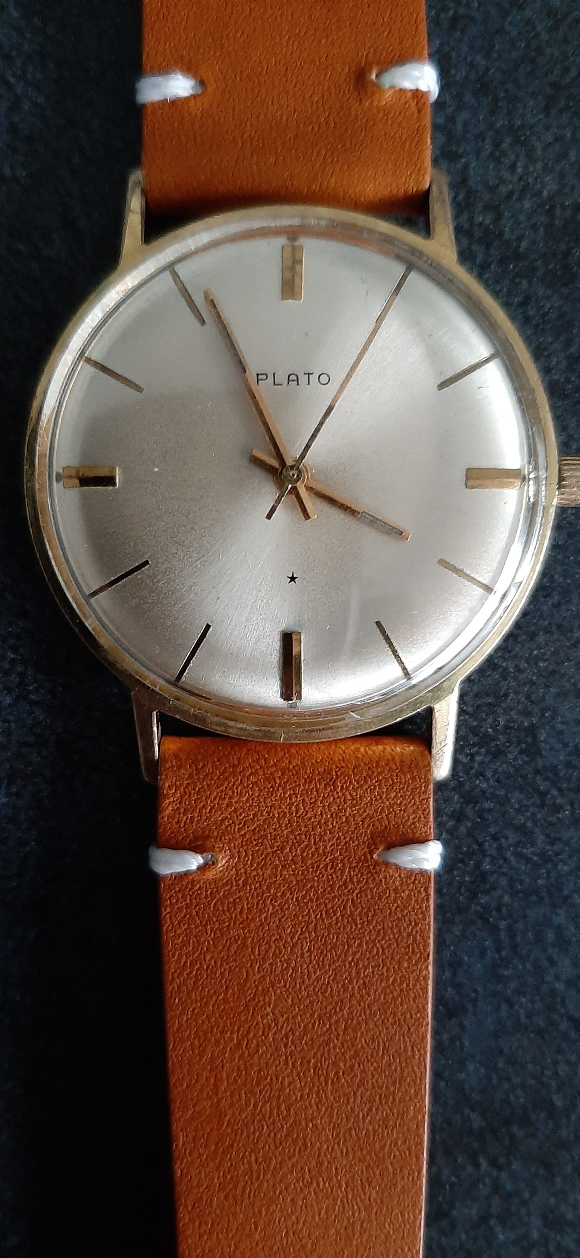 Het bandje is afgedragen, maar een schoonmaak deed al wonderen, evenals nieuwe bandpennen. Bruin leer is waarschijnlijk wel mooier.