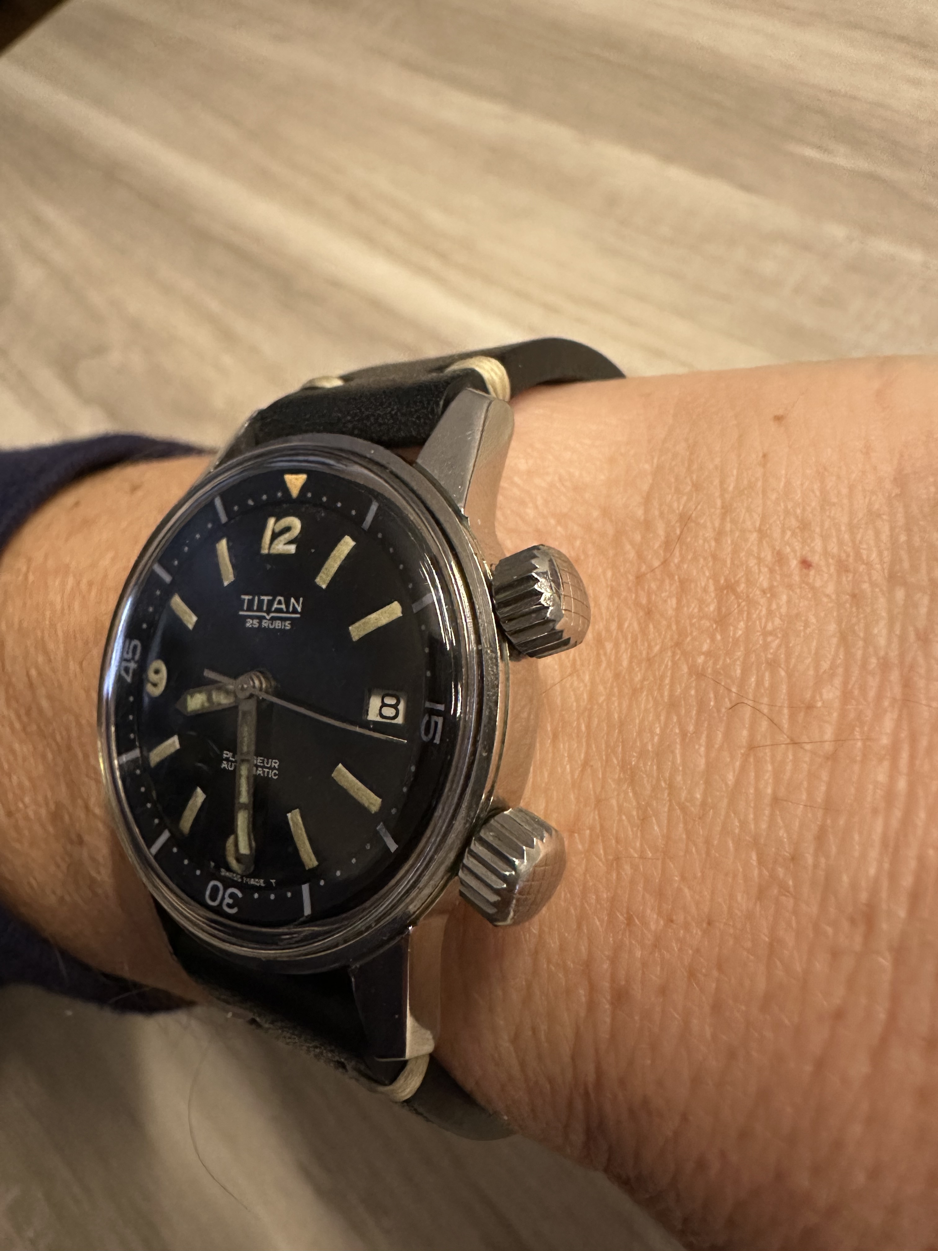 Gewisseld naar deze Seiko 7025, zonet helemaal opgeknapt. Nieuw glas, het oude was gebarsten en de wijzerplaat zat vol stof, bijna helemaal schoon kunnen krijgen. Mooi vintage geworden💛