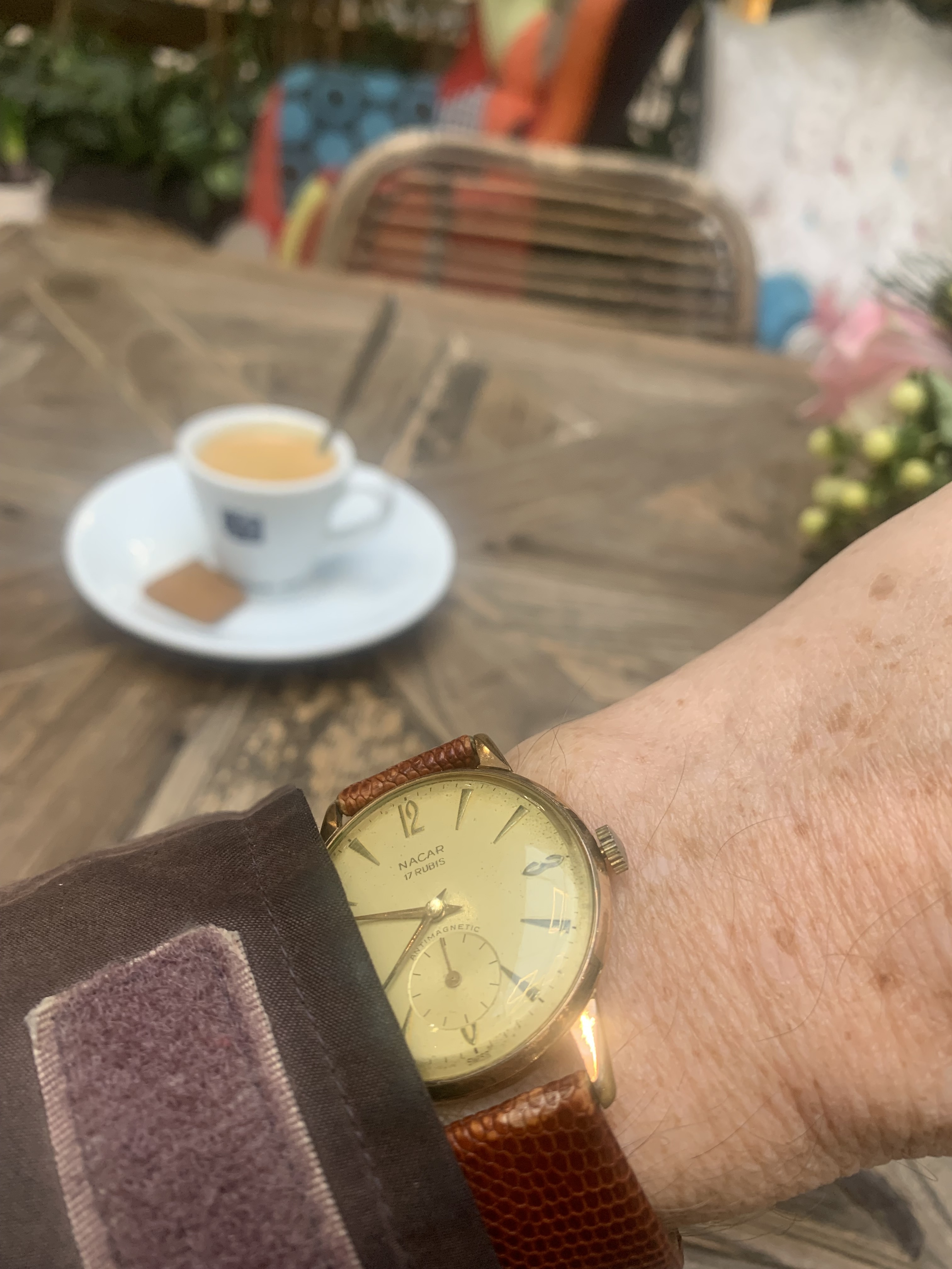Wel een leuk jaren '50 ding. Datum staat verkeerd, want geen snelverzet en 23 dagen doordraaien ga ik niet doen bij zo’n oud uurwerkje.
