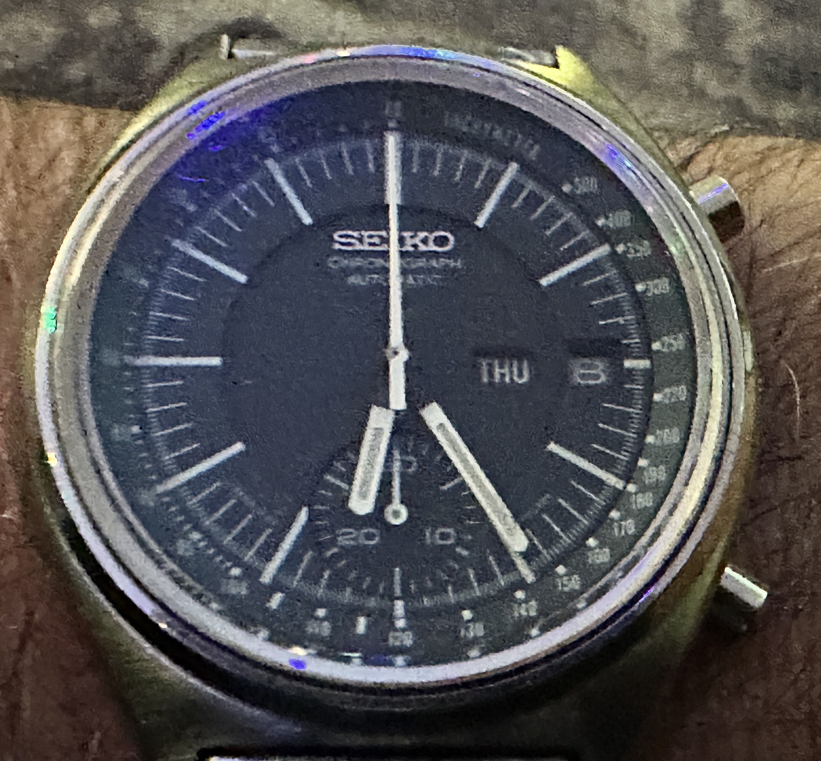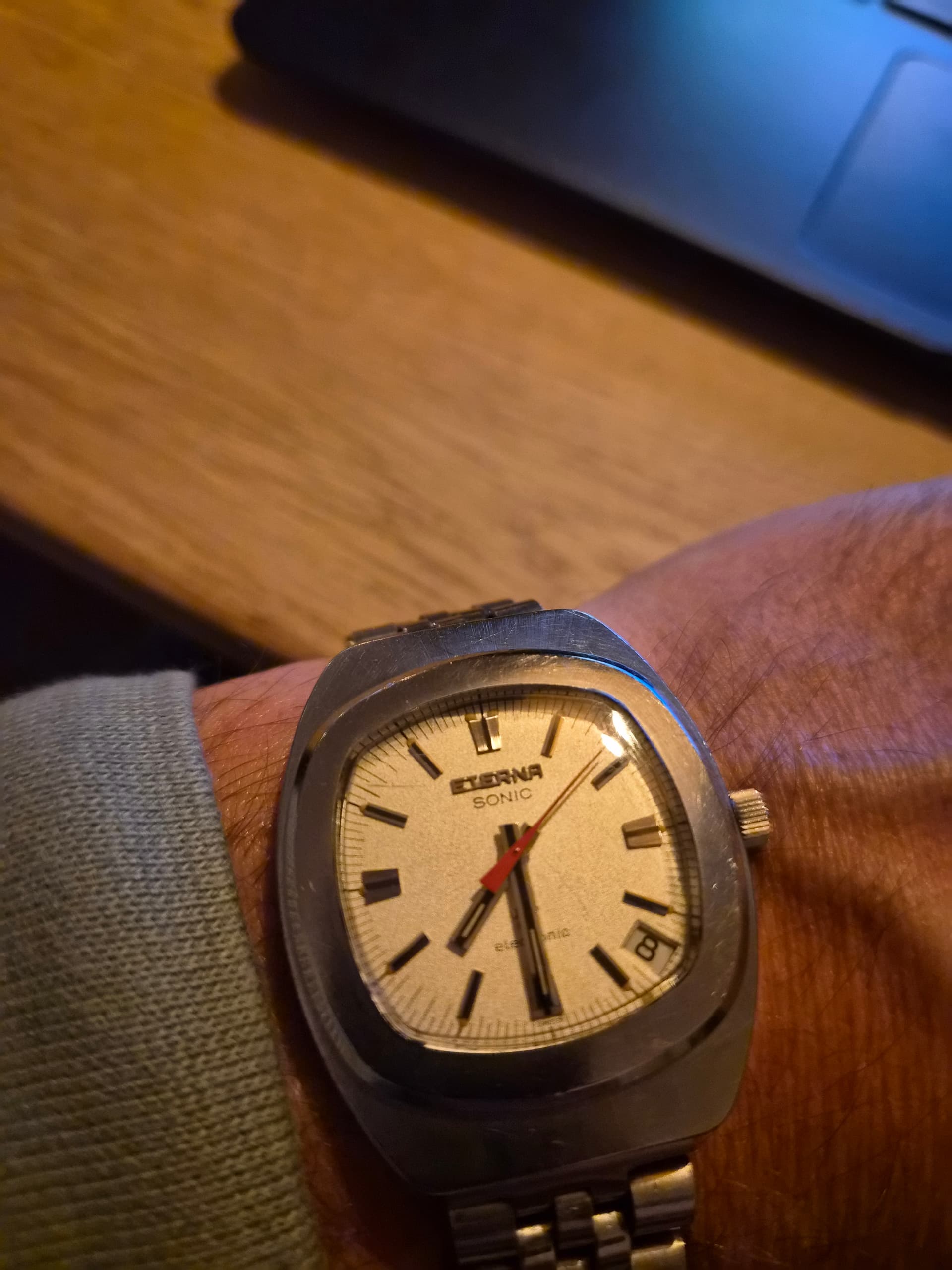 Mijn goedkoopste horloge. Ooit gekocht op Marktplaats, voor nog geen 2 tientjes. Word elke keer wel blij van de wijzerplaat.