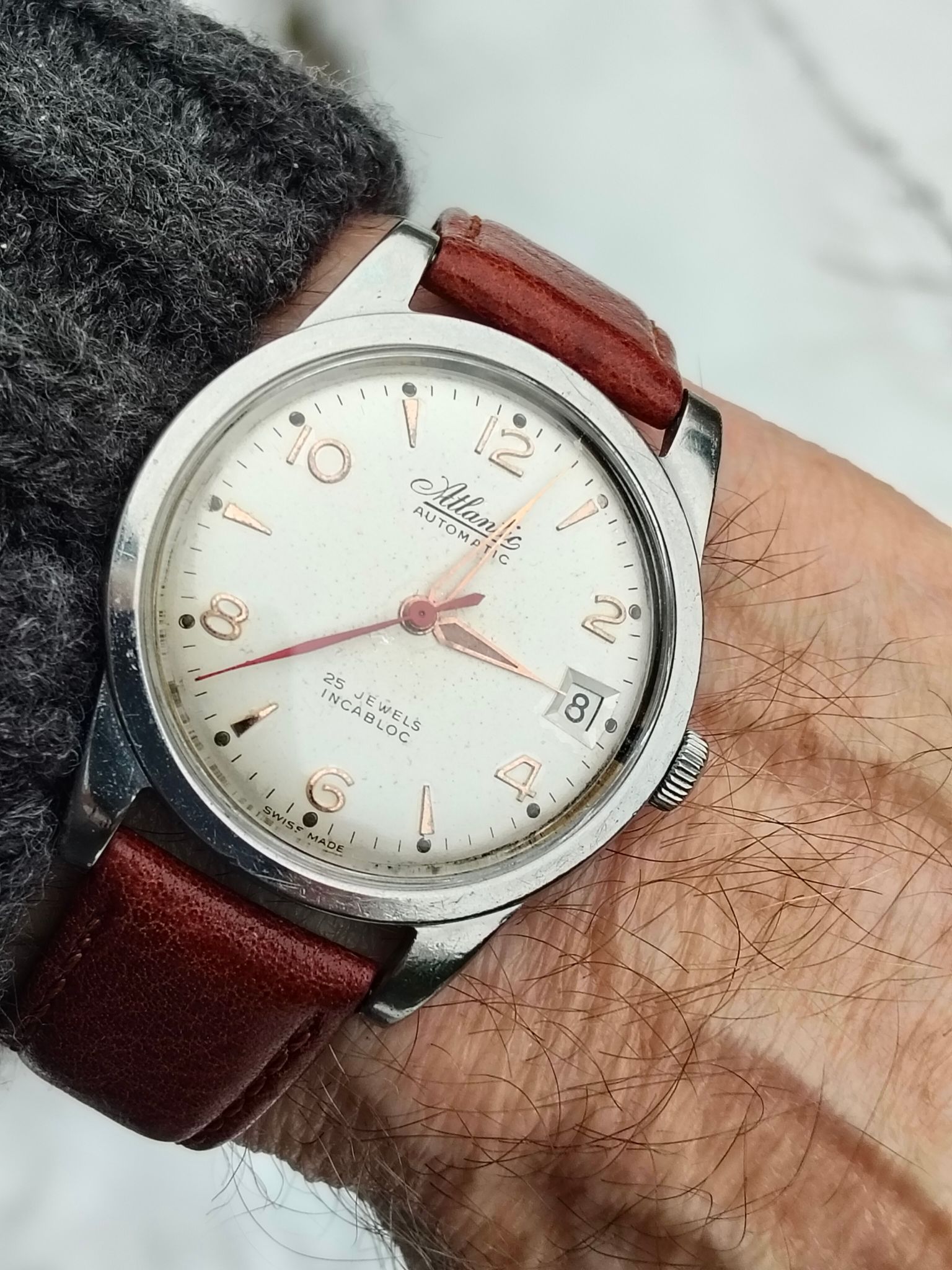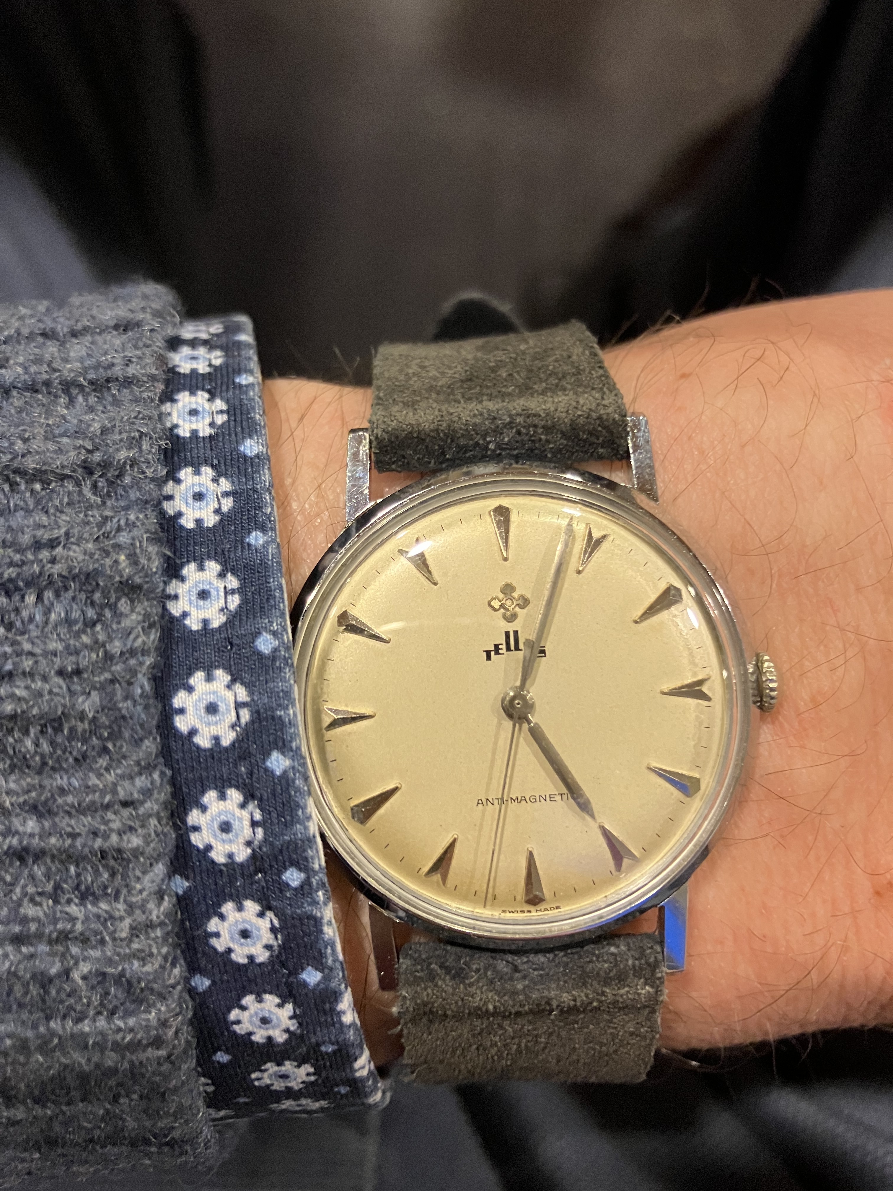 Deze leuke Tellus vandaag binnen gekregen. Sommige horloges die je voor een fooi kunt kopen zijn best interessant. Allereerst vind ik het klassieke uiterlijk en de mooie markers aansprekend, maar iets viel me op aan dit horloge dat me over de streep haalde. Wie weet wat ik bedoel? (antwoord onder de foto).