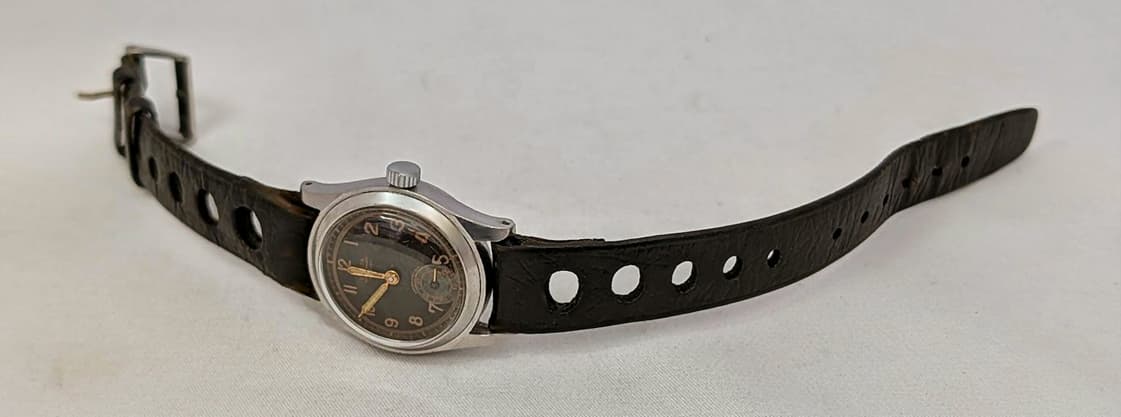 Vandaag nog maar weer een klein soldaatje. Een Beleta. Gefabriceerd door Max Brailowski @ Beleco Watch in La Chaux-de -Fonds. Het merk is geregistreerd in 1942, dus ouder zal ie niet zijn, maar gezien het uurwerkje dat er in zit ook niet veel jonger.