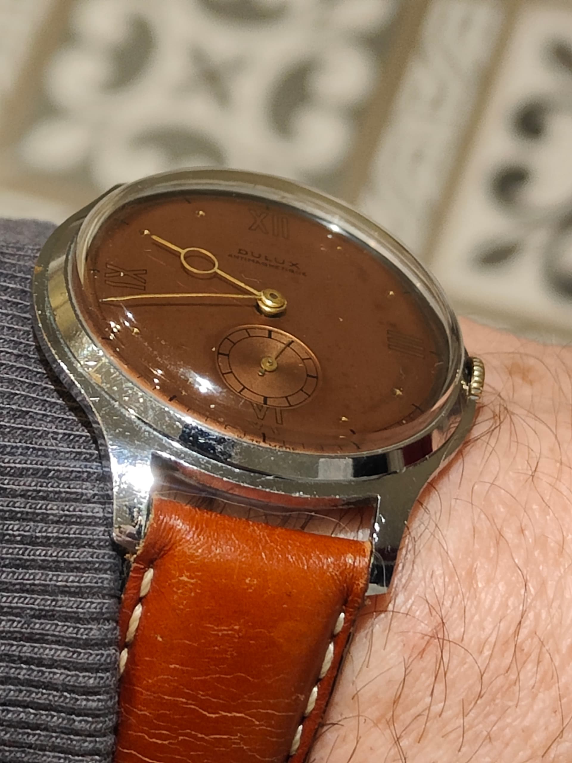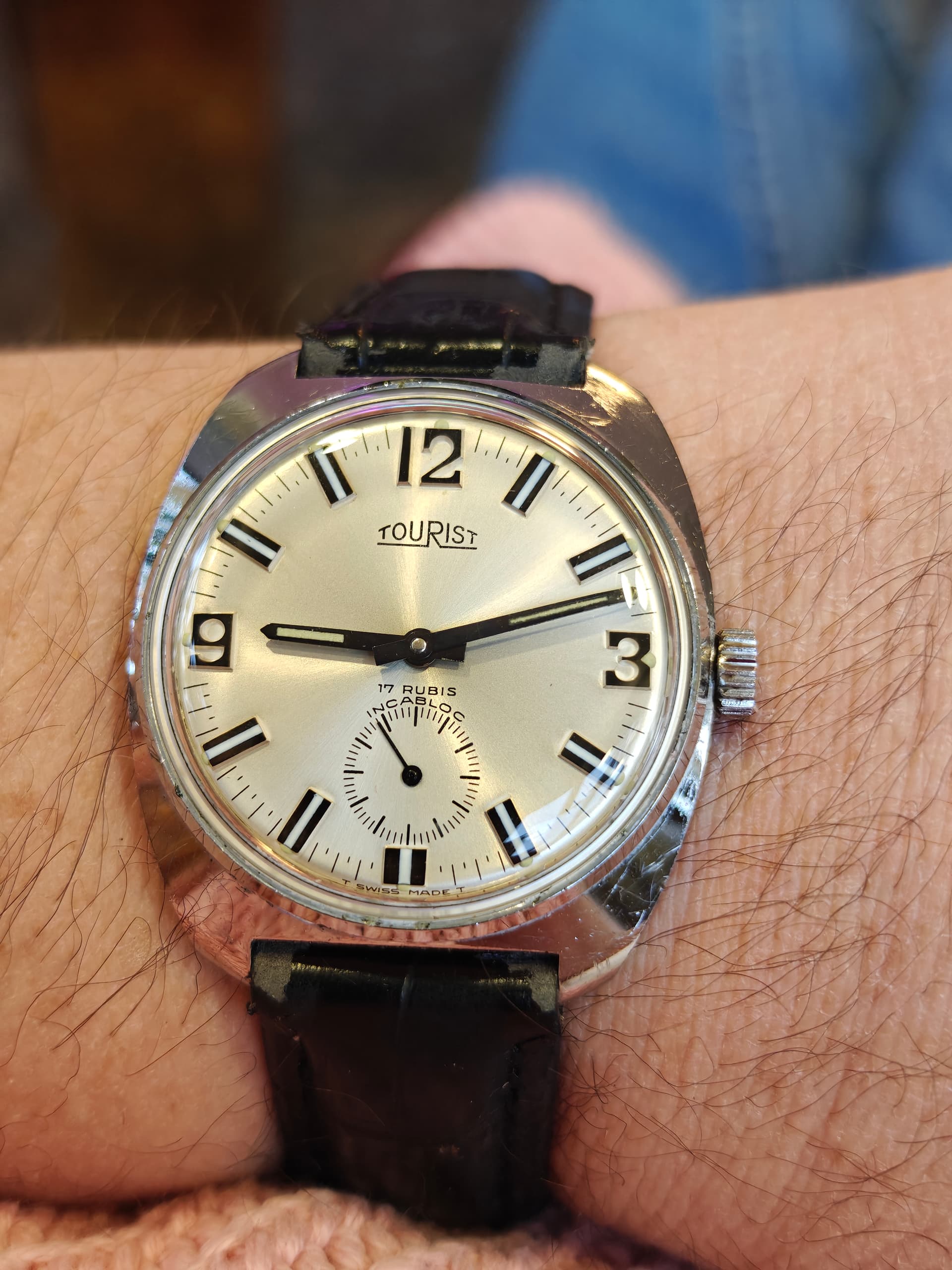 Superleuk ding. Heb dezelfde en de vorm en wijzerplaat zijn gewoon leuk. Heb het bandje er zelf afgehaald en er een lederen bandje op gezet.