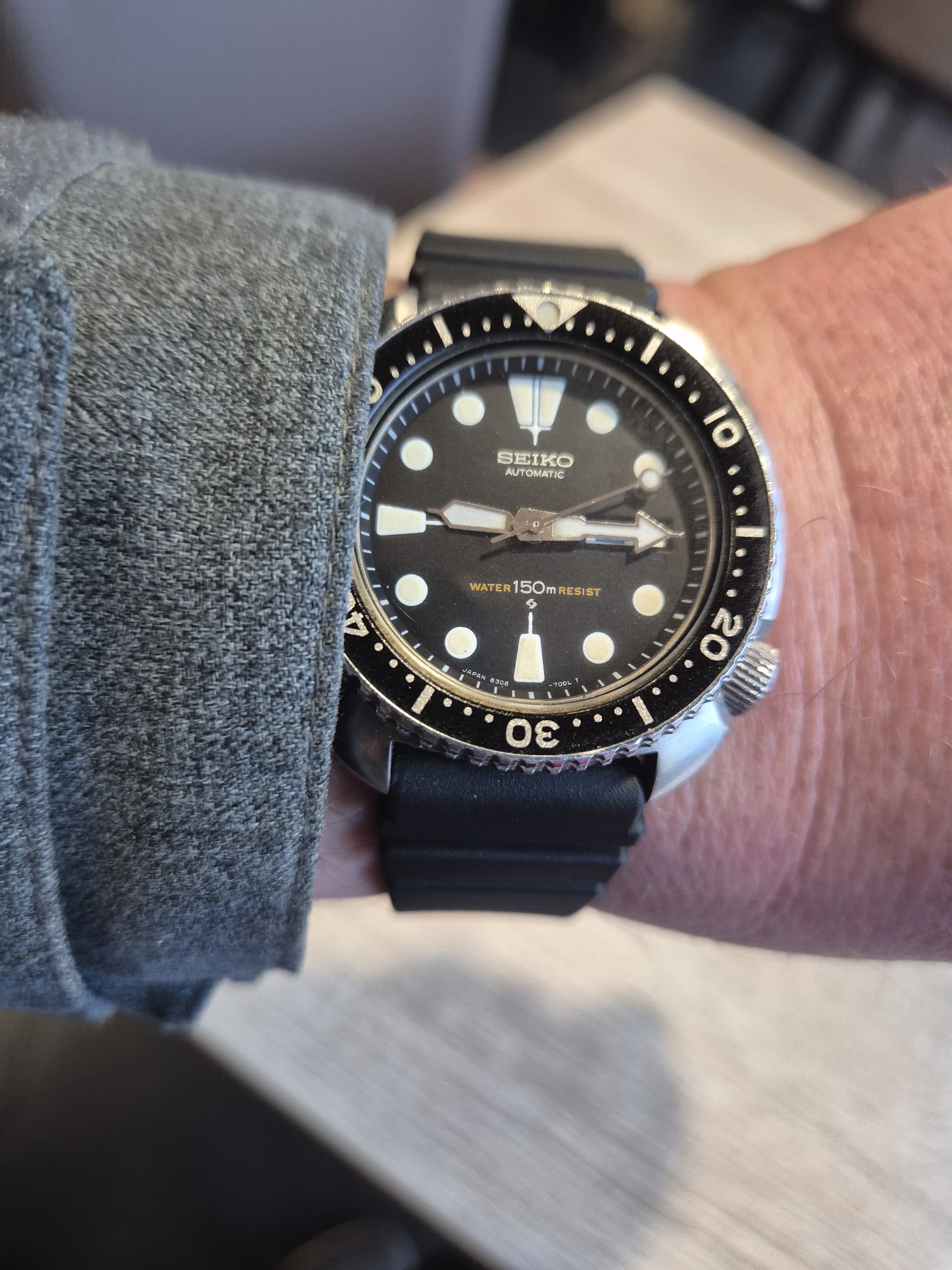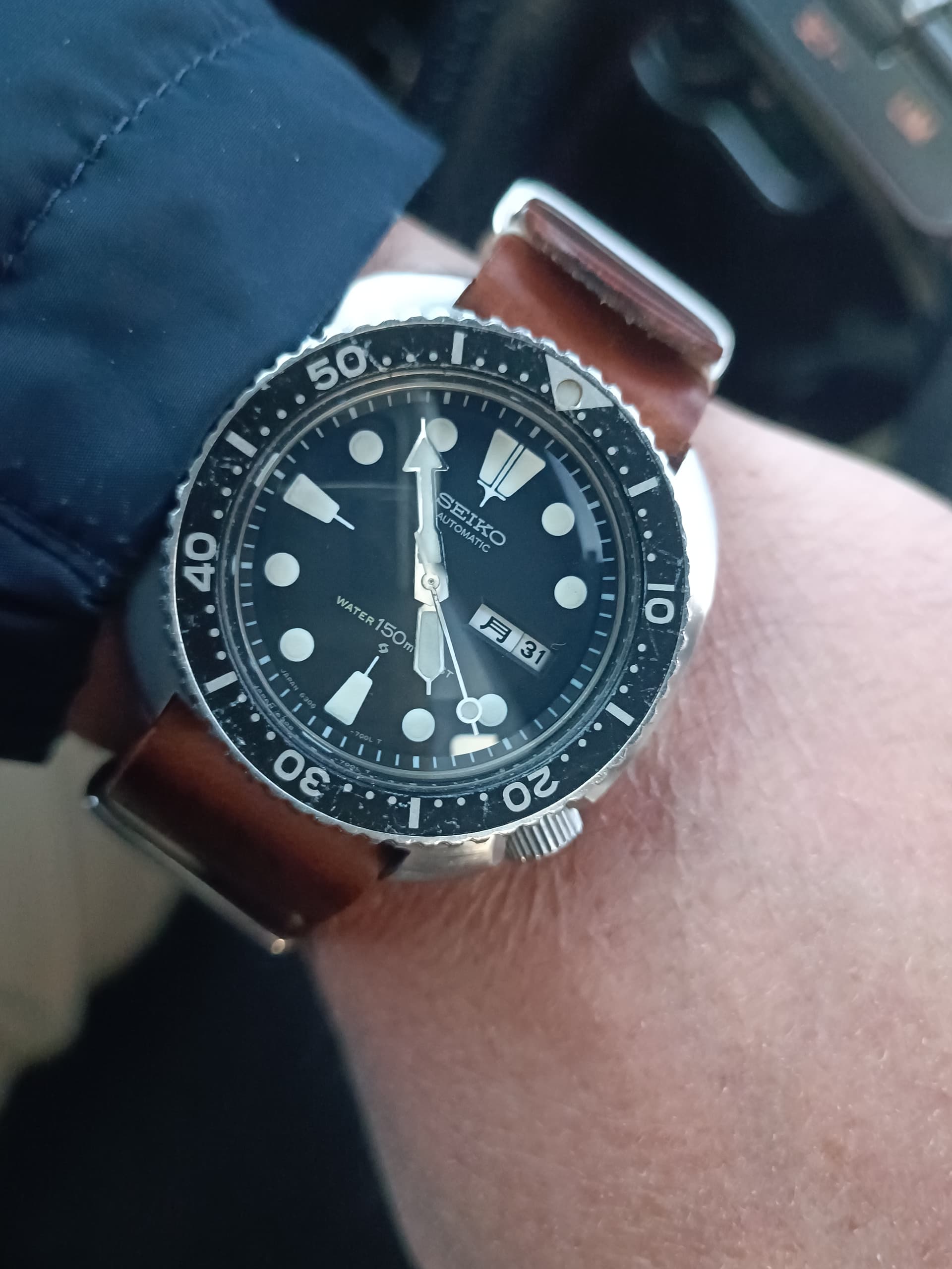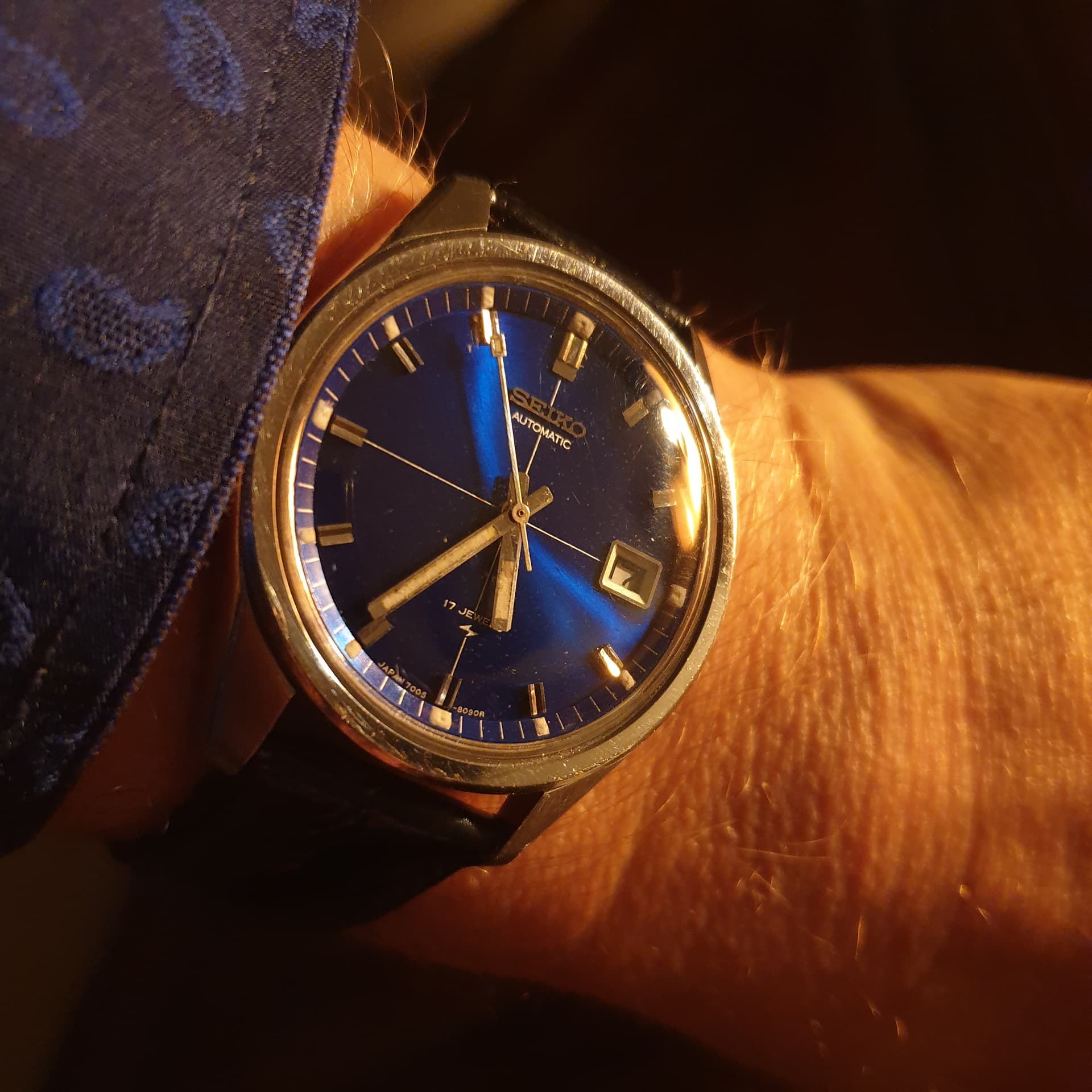 Dat blauw hadden ze bij Seiko destijds goed voor elkaar. Mijn vader heeft een blauwe uit 1970, zo donker dat ie bijna zwart lijkt, tot er meer licht op valt.