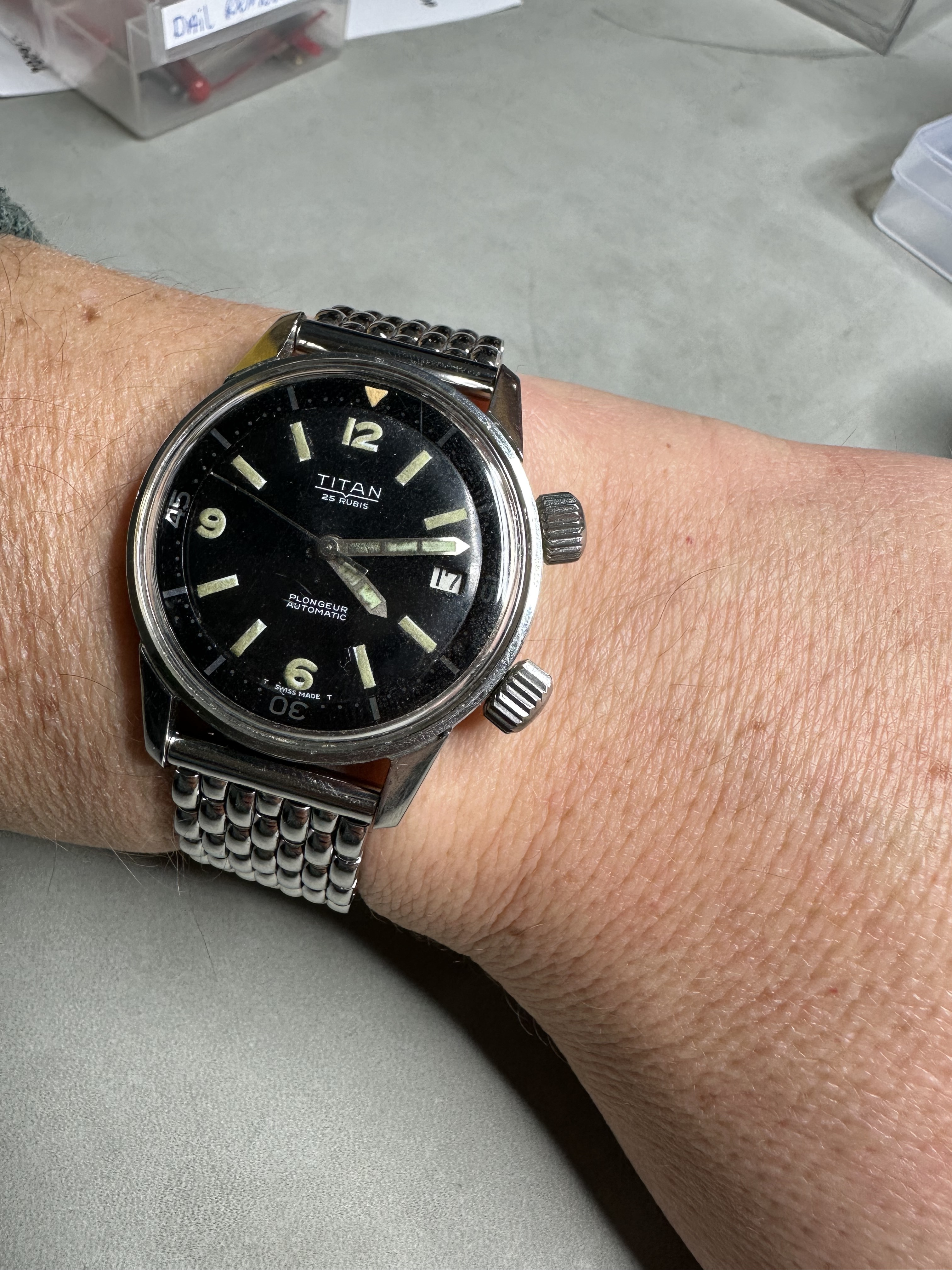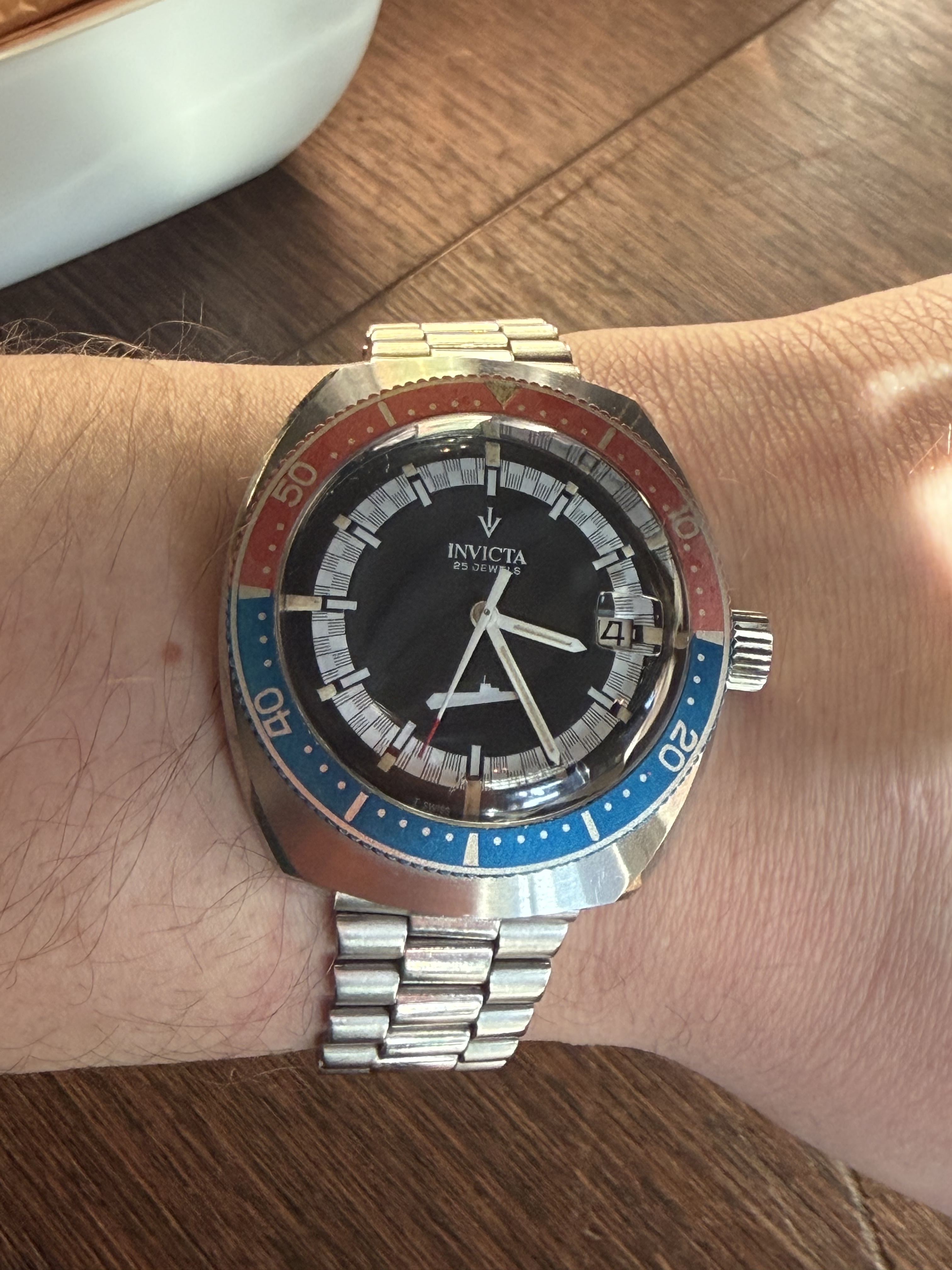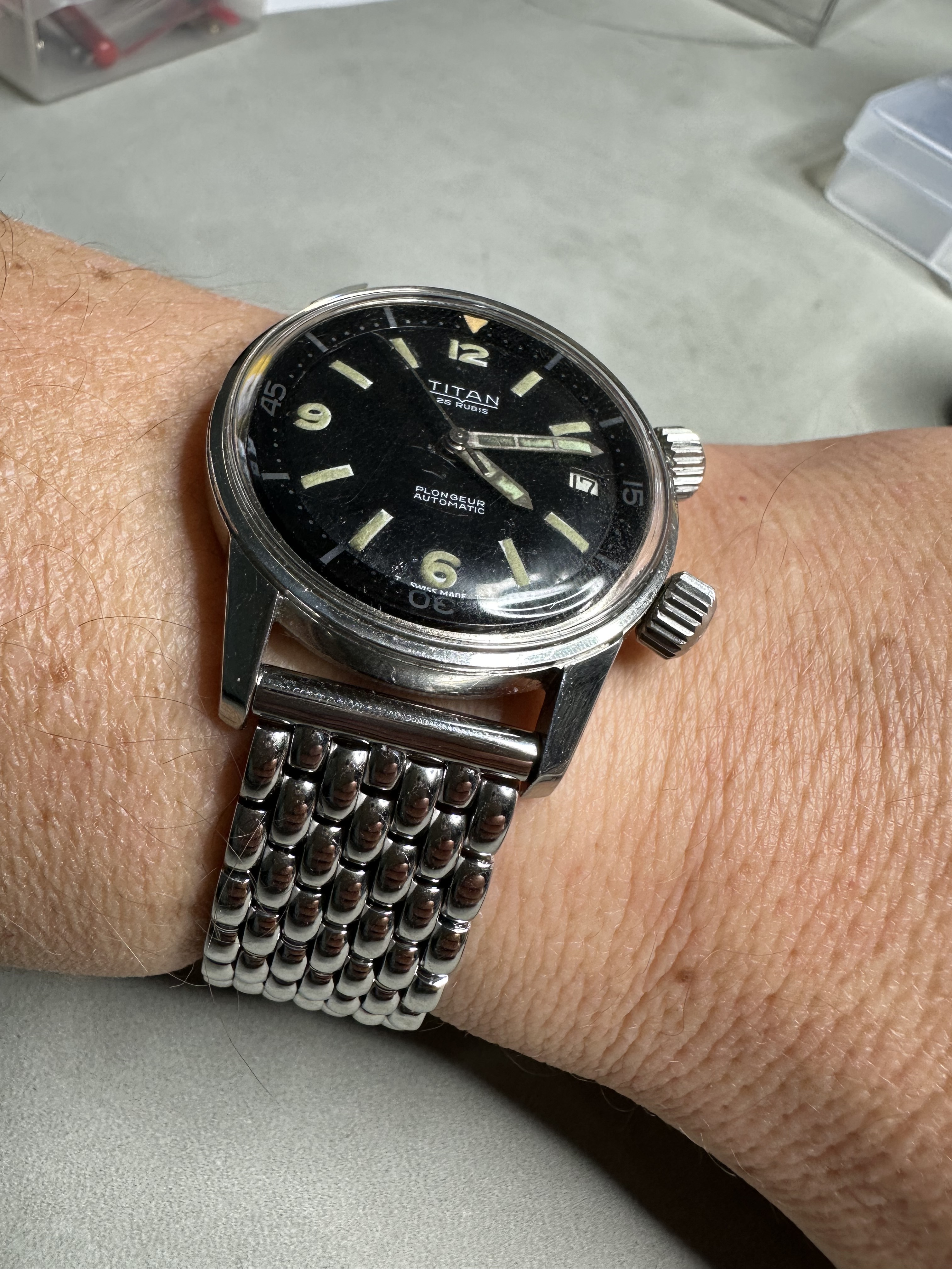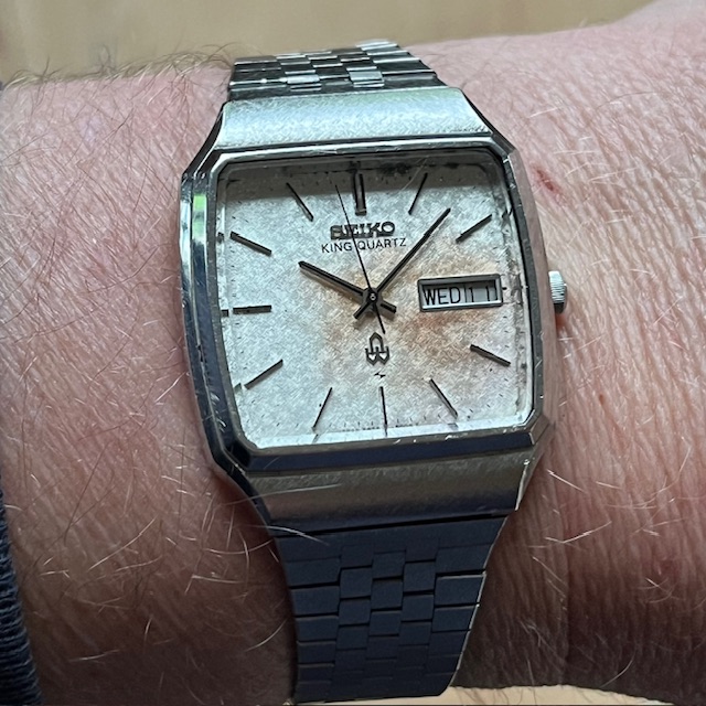 Dat blauw hadden ze bij Seiko destijds goed voor elkaar. Mijn vader heeft een blauwe uit 1970, zo donker dat ie bijna zwart lijkt, tot er meer licht op valt.