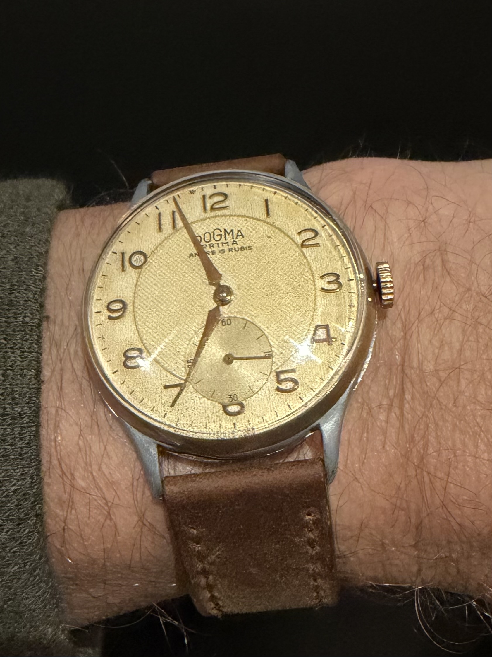 gefeliciteerd met wederom een Gruen, leer bandje mooier dan rvs vind ik. Lekker aan de slag of anders aan Lexaf vragen of hij een passend bandje voor je wilt maken. Wens je natuurlijk veel draagplezier